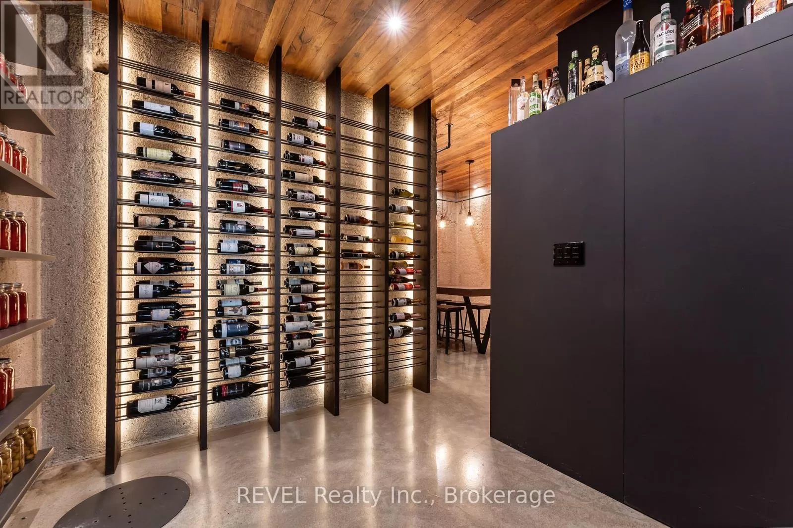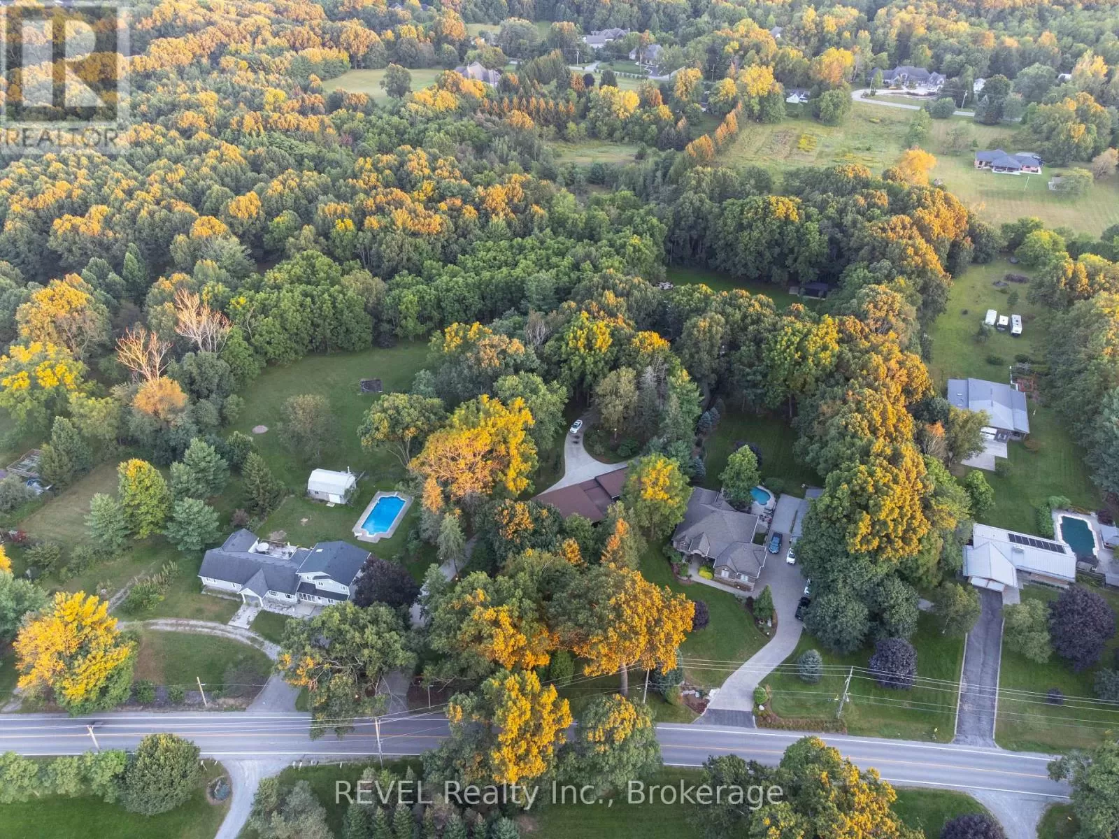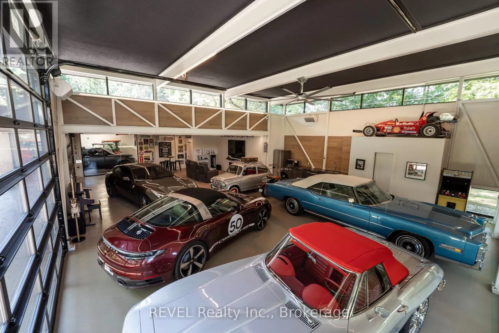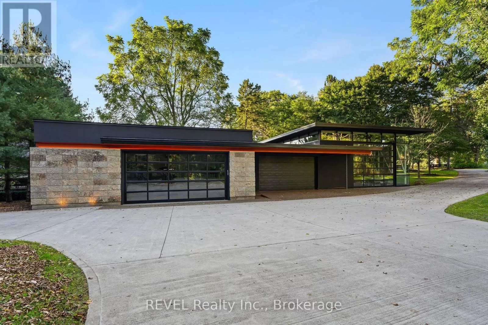 Cross Streets: Haist, Effingham. ** Directions: HWY20, to Haist, to Canboro. Architectural majesty and artistic risk define luxury for this modern bungalow estate in the charming township of Fonthill. Emerging from a 2.9 acre property populated by picturesque, Carolinian trees, this modernly unique one story creation with full walkout and floor to ceiling curtain wall windows, fuses a designer eye with an environmentalist's appreciation for natural integration. Structured with steel frame construction, and offering in floor heating via boiler and concrete floors on both main and lower levels, this mansions elite finishes, set against the views of forested privacy, present pleasurable pastoral perspectives and authentic tranquility, inside and out. Features include 16' ceilings in main living area; specialty imported glass porcelain tiles; engineered hardwood; fully automated light and sound systems by Crestron Products; surround sound theater area with power drop down screen; wine and artisanal meat cellar; enormous upper and lower designer kitchens with quartz stone countertops; three plus one spacious bedrooms; main floor glass walled office; master ensuite with oversized shower; and customized built ins throughout for exceptional storage capacity. The sauntering transition to resort worthy outdoor amenities is just as dazzling, with walkouts that seamlessly flow into a heated saltwater pool area with feature stone wall, outdoor gas fireplace, cedar clad washroom and change rooms. For the luxury car enthusiast, and with 400 amp electrical service available, enjoy the recently built 2600sq.ft showcase accessory garage(detached) that complements an oversized four car garage attached to the home. With approximately 5400 sq. ft of fully finished and fully serviced living space conceptualized to exploit every possible vantage point of this incredible landscape, this estate sets a new standard as the epitome of luxury listings. (id:27476)