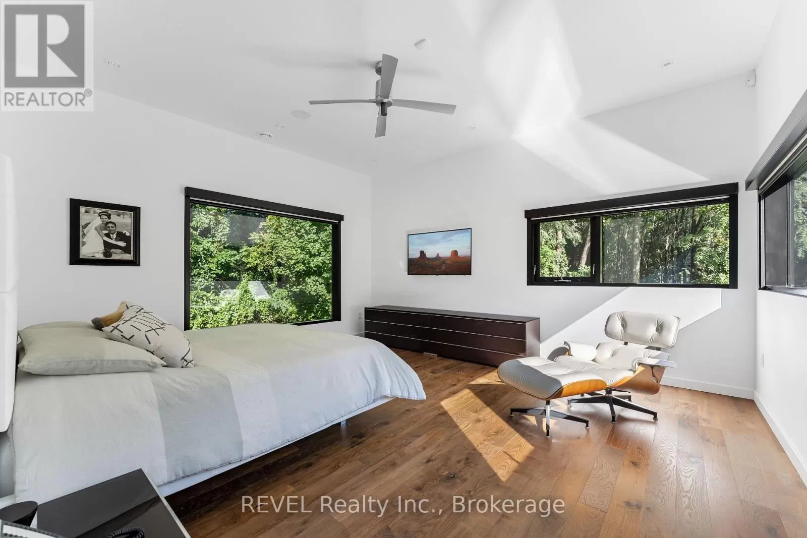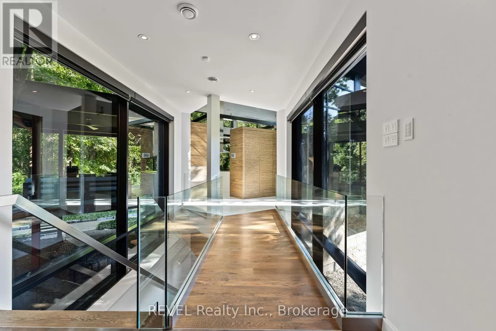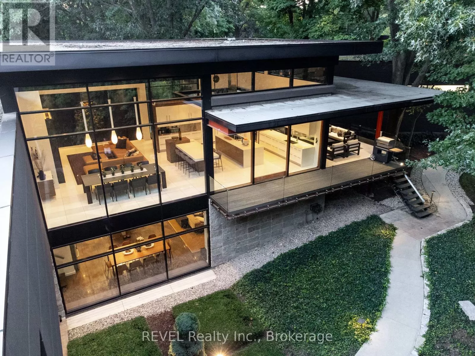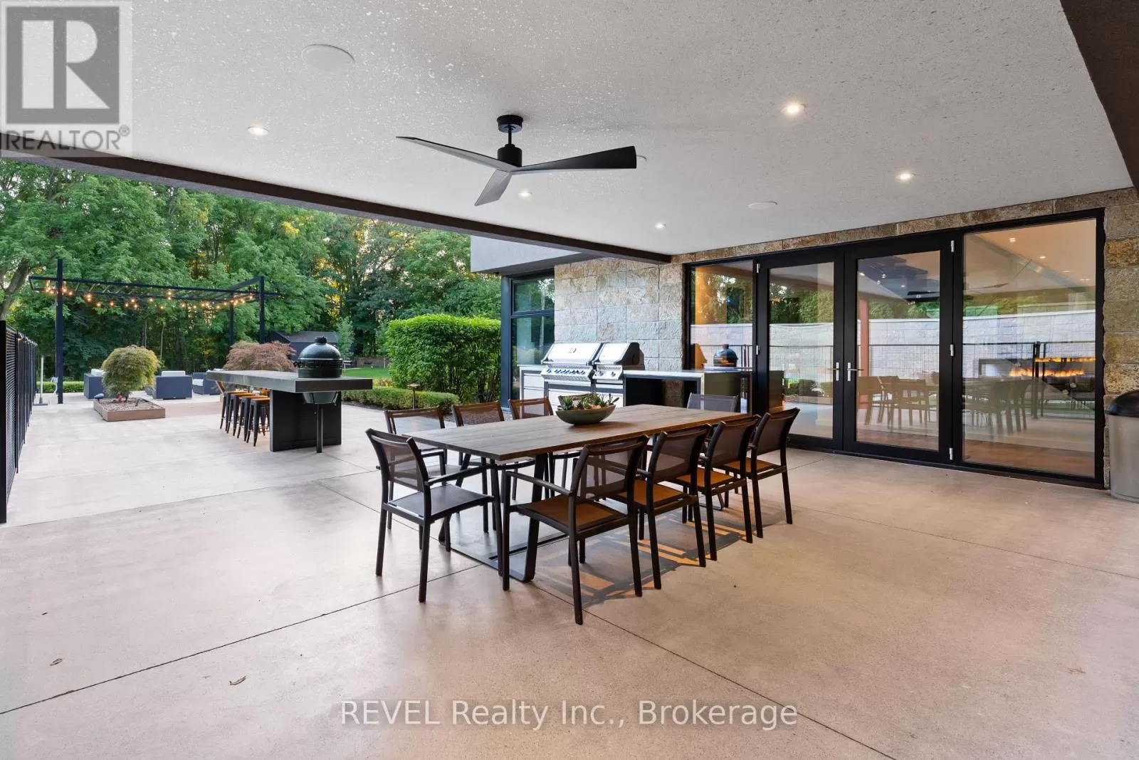 Cross Streets: Haist, Effingham. ** Directions: HWY20, to Haist, to Canboro. Architectural majesty and artistic risk define luxury for this modern bungalow estate in the charming township of Fonthill. Emerging from a 2.9 acre property populated by picturesque, Carolinian trees, this modernly unique one story creation with full walkout and floor to ceiling curtain wall windows, fuses a designer eye with an environmentalist's appreciation for natural integration. Structured with steel frame construction, and offering in floor heating via boiler and concrete floors on both main and lower levels, this mansions elite finishes, set against the views of forested privacy, present pleasurable pastoral perspectives and authentic tranquility, inside and out. Features include 16' ceilings in main living area; specialty imported glass porcelain tiles; engineered hardwood; fully automated light and sound systems by Crestron Products; surround sound theater area with power drop down screen; wine and artisanal meat cellar; enormous upper and lower designer kitchens with quartz stone countertops; three plus one spacious bedrooms; main floor glass walled office; master ensuite with oversized shower; and customized built ins throughout for exceptional storage capacity. The sauntering transition to resort worthy outdoor amenities is just as dazzling, with walkouts that seamlessly flow into a heated saltwater pool area with feature stone wall, outdoor gas fireplace, cedar clad washroom and change rooms. For the luxury car enthusiast, and with 400 amp electrical service available, enjoy the recently built 2600sq.ft showcase accessory garage(detached) that complements an oversized four car garage attached to the home. With approximately 5400 sq. ft of fully finished and fully serviced living space conceptualized to exploit every possible vantage point of this incredible landscape, this estate sets a new standard as the epitome of luxury listings. (id:27476)