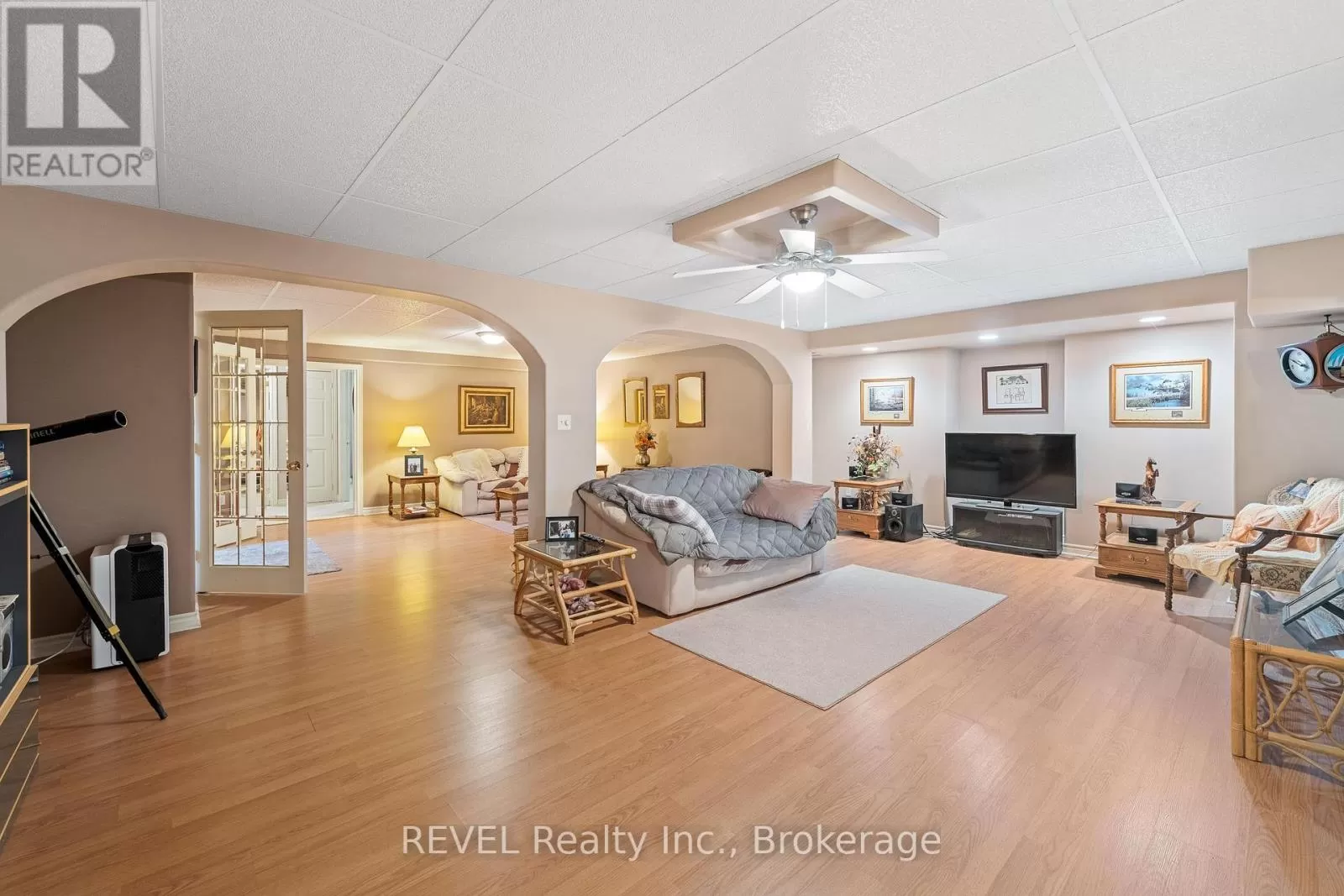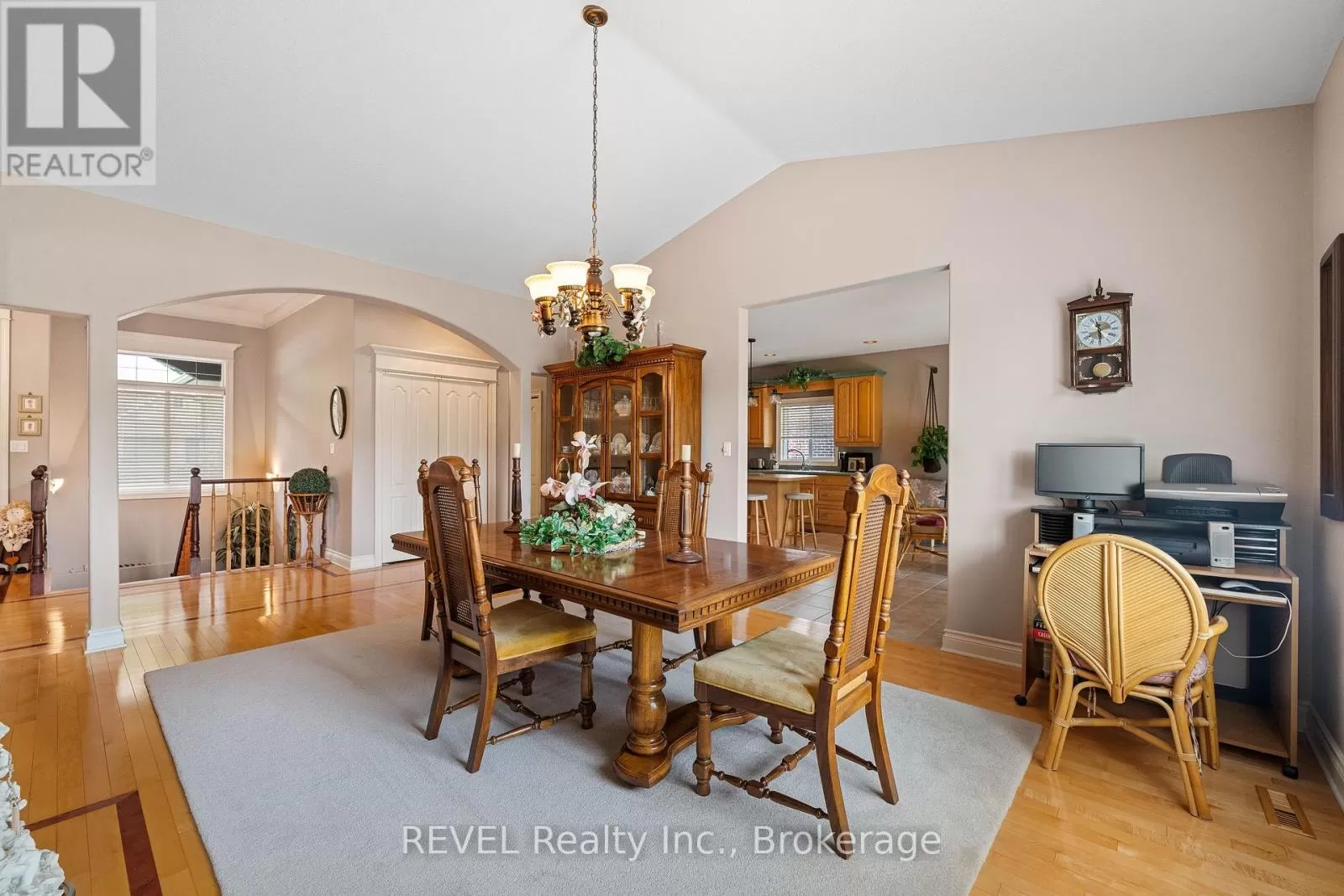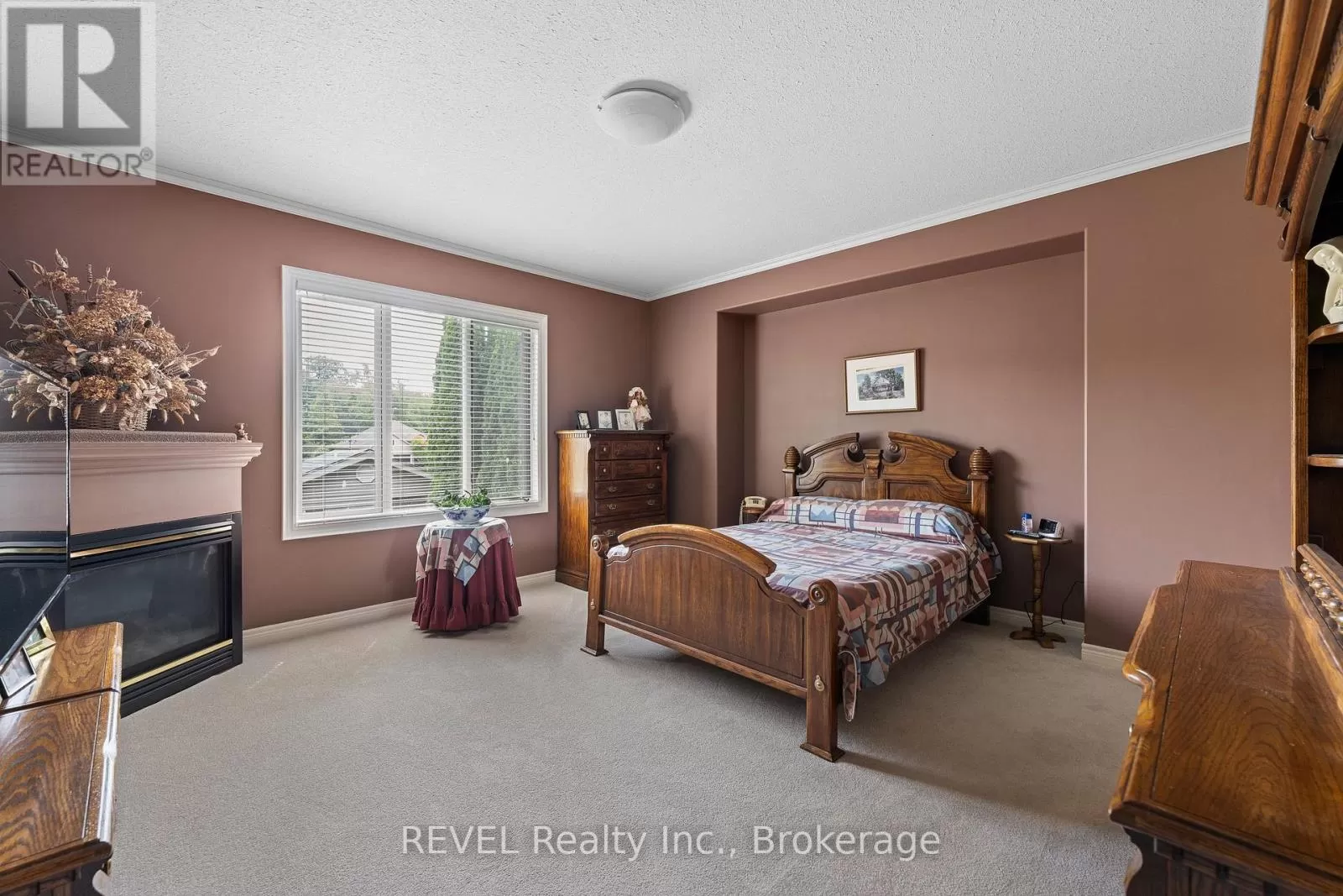 Cross Streets: John St./Pancake Lane & Pelham St. ** Directions: Pelham St. to John St. Welcome to this beautifully maintained, 2352 sqft one-owner brick bungalow in desirable Fonthill neighbourhood, built by Serafino Homes in 1998. Offering timeless curb appeal and thoughtful design, this home features 9-ft ceilings with cathedral ceilings in the main living and dining areas, creating a bright and airy feel. The living room and formal dining room share a cozy two-way gas fireplace, while the open-concept kitchen and dinette lead to a rear wood deck perfect for entertaining. The main floor boasts a spacious primary bedroom with walk-in closet, 4-pc ensuite, and its own gas fireplace. Two additional bedrooms, a 4-pc main bath, powder room, and main-floor laundry add convenience, while hardwood flooring flows throughout the level. The fully finished basement extends the living space with a spacious rec room, cozy family room, kitchenette, additional bedroom, office, 3-pc bath, and utility room. Practical updates include a roof (2015), furnace and A/C (2021), and a rental water heater (2018). Additional features include central vacuum, concrete driveway, and a 2-car garage. Set in a quiet neighbourhood close to all amenities, this home blends comfort, functionality, and location ready for its next chapter. (id:27476)