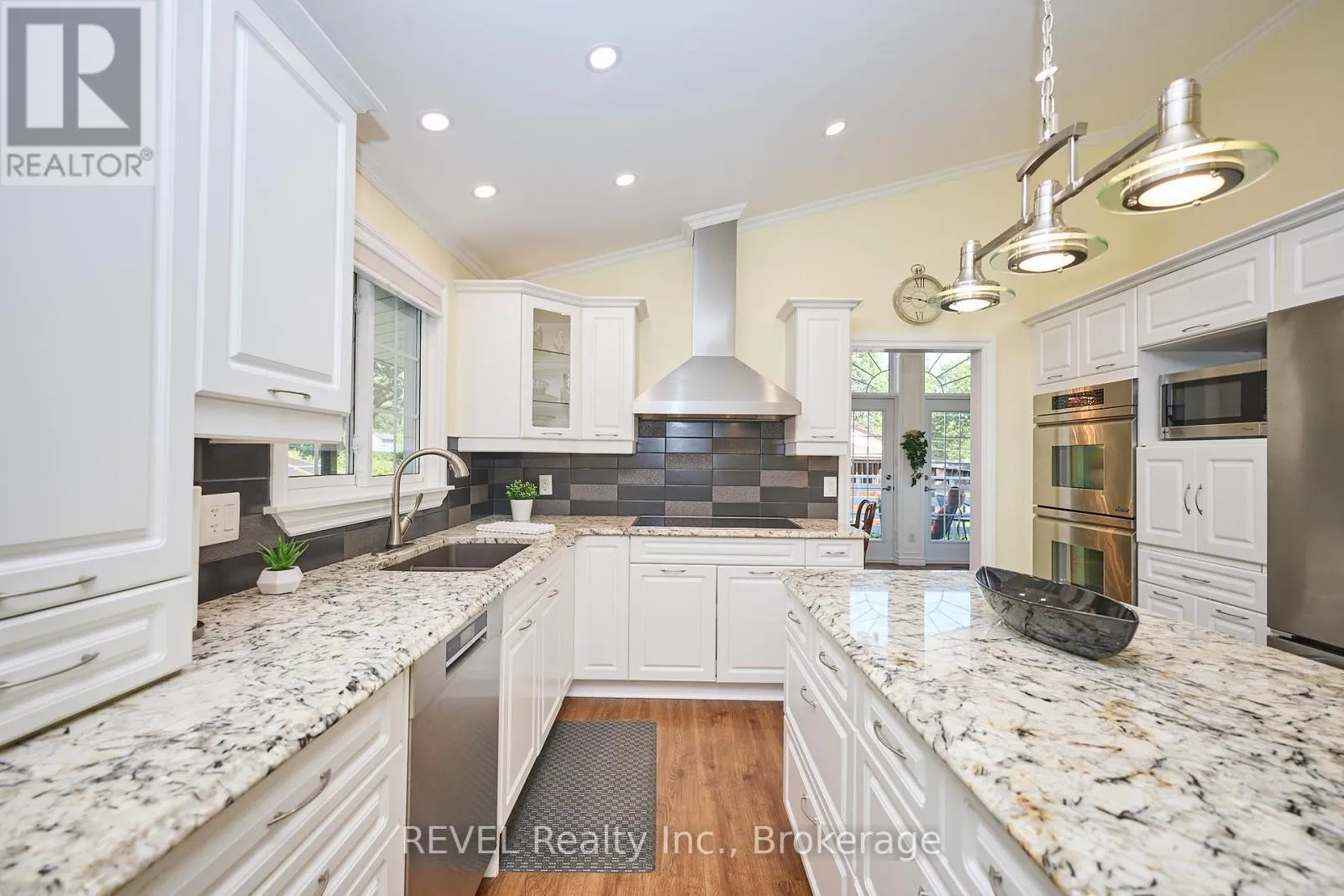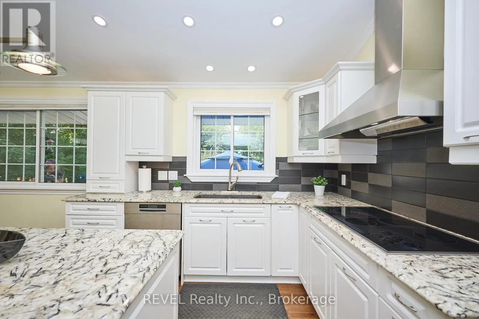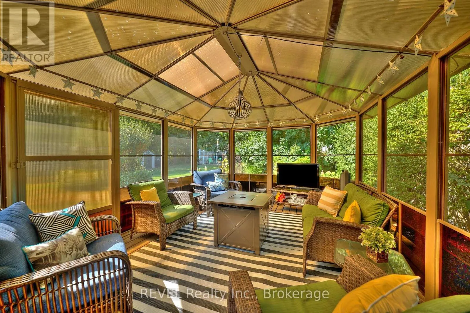 Cross Streets: Pancake Lane and Haist Street. ** Directions: QEW Niagara to Victoria Avenue to Highway 20 to Haist Street to Pancake Lane. Simply breathtaking! Situated on an incredible 75 by 200-foot lot, 51 Pancake Lane offers comfort, style and space in equal measure! From the moment you arrive, the curb appeal is undeniable. A long driveway leads to a double-car garage, while stone steps framed by lush landscaping guide you to the front entrance. A charming wrap-around balcony spans the front and side of the home, creating an ideal spot to enjoy your morning coffee or unwind in the evening, surrounded by the beauty of picturesque Fonthill. The main floor is as inviting as it is functional. The bright living room features soaring ceilings, expansive windows that fill the space with natural light and a stunning gas fireplace. Opening to the dining room, with direct access to the balcony for a seamless indoor-outdoor experience, this space is intriguing. With two ovens, granite countertops, abundant cabinetry, an island, along with a lovely dining area, the kitchen is a true highlight of this home. Positioned at the back of the home, the primary suite offers a peaceful retreat with its own ensuite. Concluding the tour of the main floor is a beautifully updated 3-piece bath and two additional bedrooms, each with large closets, ensuring comfort and privacy for the whole family. Featuring a spacious recreation room, fourth bedroom, 4-piece bath and laundry room, all with plenty of storage and direct access to the garage - the lower level of this home is truly the cherry on top! Out back, the fully fenced yard, with a full irrigation system, offers a private oasis that has been beautifully curated. With mature trees, several seating areas and a gorgeous solarium equipped with hydro, this space offers a true extension of the home. Immaculately maintained and extensively updated, this property is perfectly positioned only moments from wonderful schools, shopping and scenic trails - combining everyday convenience with timeless charm. This is where your search ends and your next chapter begins - welcome home! (id:27476)