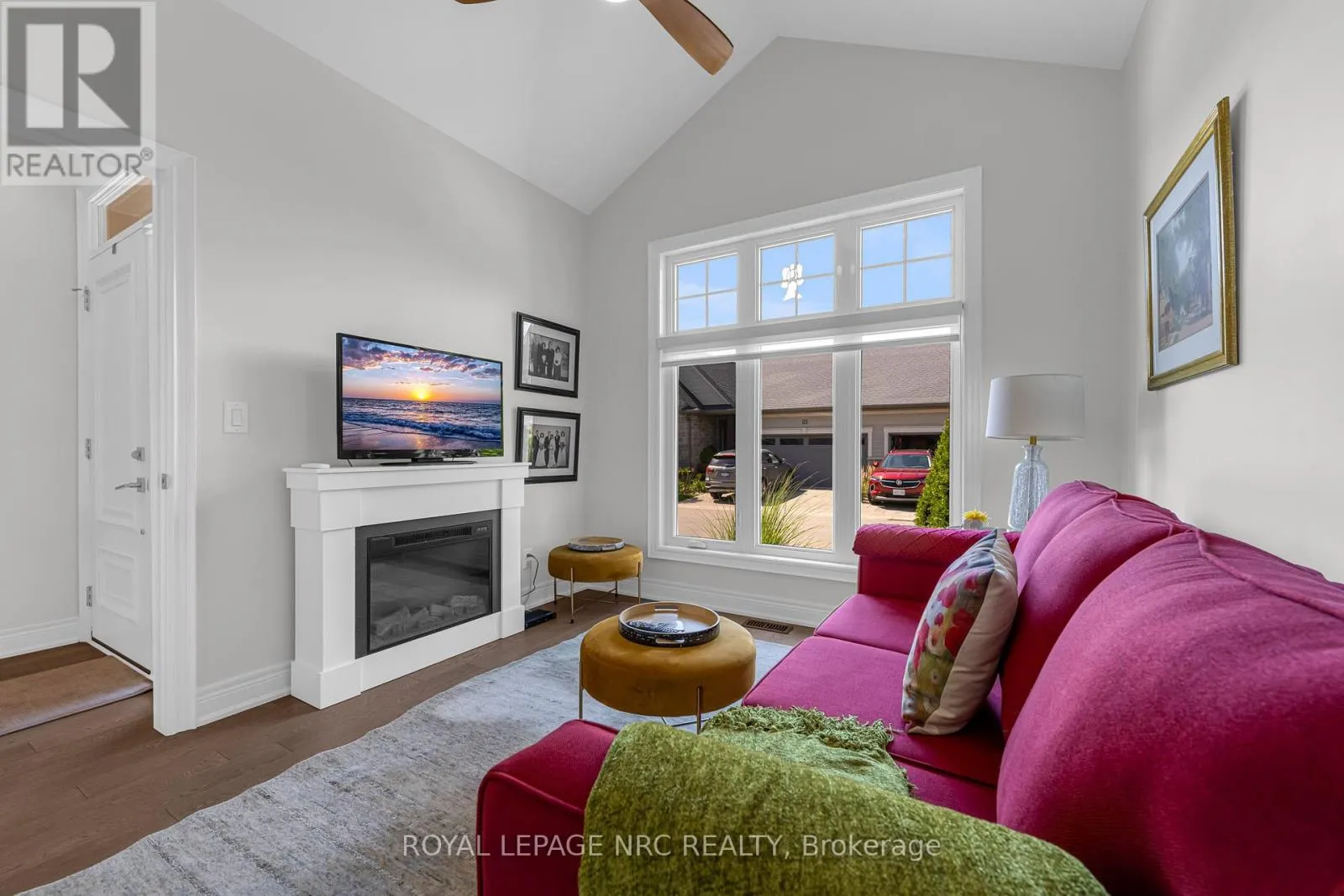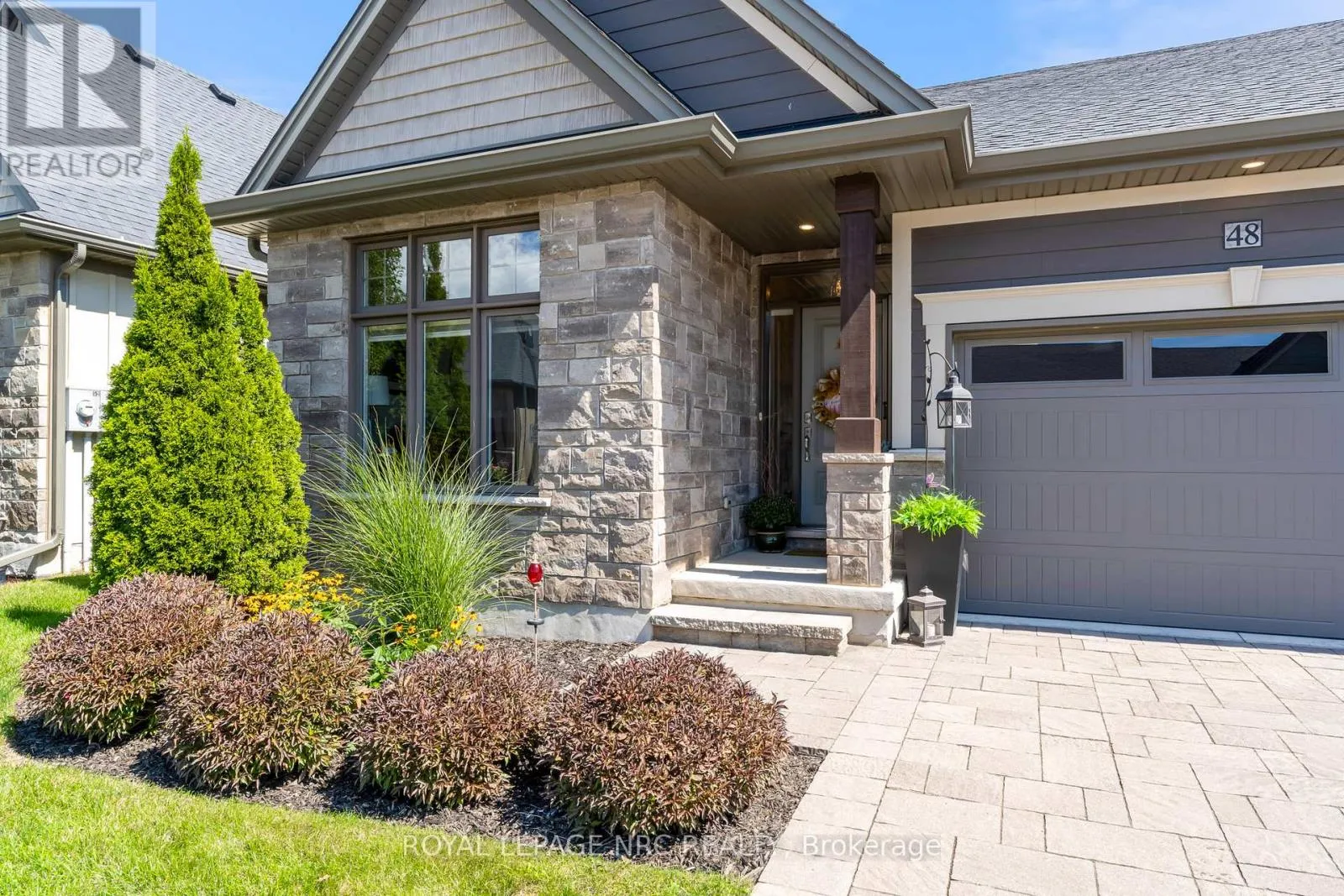 Cross Streets: Rice Road and Port Robinson. ** Directions: Rice Road to Port Robinson. A gorgeous bungalow townhome backing onto a pond awaits you! Welcome to 180 Port Robinson Road, Unit 48! This immaculately maintained 2+1 bedroom, 2 bathroom home offers a fine attention to detail and has all the features discerning buyers are searching for. Step through the front door (which is nicely equipped with a phantom screen) to find a neat and tidy foyer with a coffered ceiling detail, a spacious front bedroom, a full 4 piece bathroom, the stunning kitchen that is outfitted with white cabinets, quartz counters and stainless steel appliances, a soaring vaulted ceiling above the dining area and living room (with gas fireplace) and a large primary bedroom suite complete with walk-in closet and a spa inspired 4 piece ensuite bathroom. The rear yard provides a serene view of the nearby pond and features a lower patio and a large deck with a remote controlled retractable awning to keep you nice and comfortable on a hot day. Travel downstairs to find a large Rec Room, the large third bedroom and 2 large storage rooms (3 piece rough in available). Parking for 2 available on site between the attached 1.5 car garage and private interlocking stone driveway. Visitor parking is available just around the corner. Also, do not forget that there is no grass to cut or snow to shovel, one of the perks of condo living! Only a short walk to downtown Fonthill, shopping, restaurants & the Steve Bauer Trail. Easy access to world class golf, vineyards, the QEW & 406. Saffron Meadows is the quiet and serene community you have been searching for - don't delay! (id:27476)