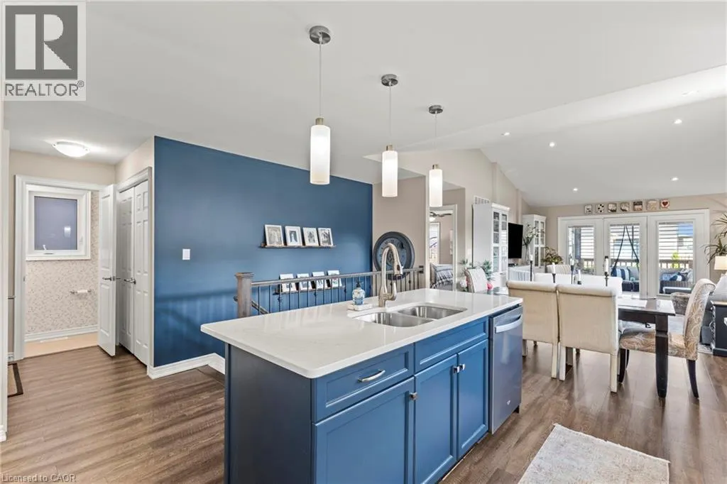 RICE RD- MYRTLE-SWAN-ACACIA In one of Southern Ontarios most desirable locations, this exceptional 4-bedroom, 3-bathroom ranch bungalow combines thoughtful design, premium finishes, and a resort-like private backyard. Masterfully built, this home radiates qualityfrom the Hemlock timber portico and composite Everlast cladding to the decorative stonework, LED soffit lighting, and professionally landscaped grounds.Inside, soaring vaulted ceilings, engineered hardwood floors, and custom Millbrook cabinetry set a tone of timeless elegance. The chefs kitchen features Caesarstone countertops, a centre island with prep sink, and all appliances just 2 years oldincluding a Frigidaire Gallery 4-door fridge, Frigidaire Professional 48 stove, Whirlpool dishwasher and microwave, plus an Electrolux Smart washer and dryer. The great room centres around a floor-to-ceiling tiled gas fireplace, framed by oversized windows that fill the space with natural light.The fully finished basement offers a spacious recreation area, a stunning TV room with a tiled floor-to-ceiling fireplace, guest accommodations, and endless possibilities for entertainment or fitness. The insulated 1.5-car garage provides comfort and extra storage.Mechanical systems include a rented hot water boiler for the hydronic furnace, an owned tankless water heater, and an owned water filtration systemensuring year-round efficiency and comfort.Step outside to your own private resort-style backyard oasis, complete with expansive patios, lush landscaping, and tranquil spaces perfect for summer evenings and weekend entertaining.Every element of this home has been carefully designed to deliver comfort, luxury, and an unmatched lifestyleall in a prestigious community celebrated for its charm, amenities, and proximity to the best of Southern Ontario living. (id:27476)