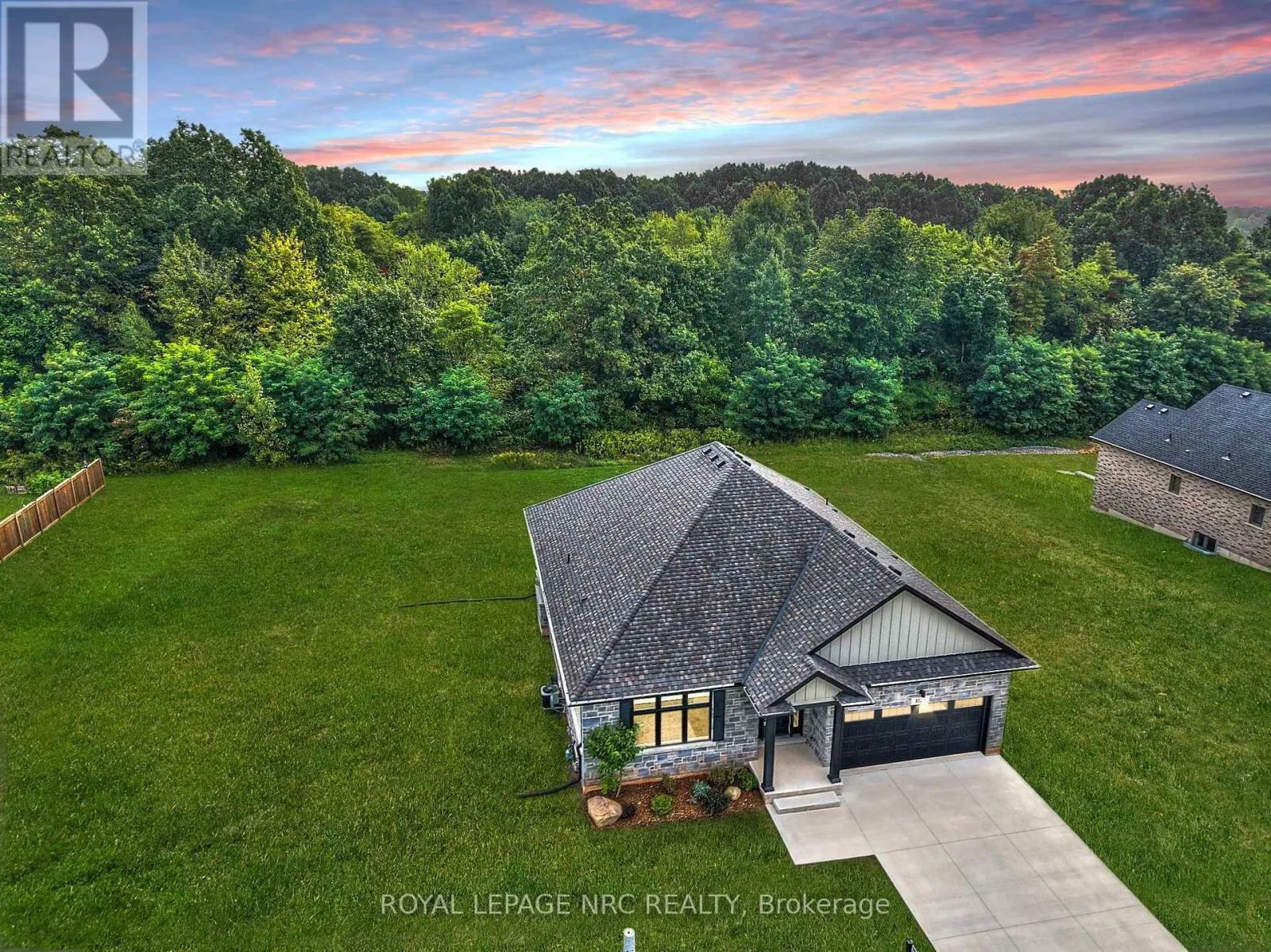 Cross Streets: Canboro and Welland Road. ** Directions: Canboro Road to Balfour Street. Be the first to call this 2022 bungalow - your home! With an attached double garage and a sleek concrete driveway, this residence makes a striking first impression. The stone facade paired with trendy Hardie board siding sets the tone for timeless curb appeal, all tucked into the charming hamlet of Fenwick. Inside, you'll find 1,785 sq. ft. above grade, designed with style and comfort in mind. The home features three generously sized bedrooms, including a luxurious 5-piece ensuite with a freestanding soaker tub, double sinks, and a walk-in tiled glass shower. The open-concept kitchen and great room are ideal for entertaining, with a crisp white kitchen, qranite white flex island seating four, on-trend pendant lighting above, and a soft gray subway tile backsplash. No expense spared with engineered hardwood floors throughout, central vacuum, hot water on demand, HRV and large encased windows with transom above for lots of natural daylight. The great room is anchored by a white gas fireplace, and patio doors lead to a covered outdoor patio overlooking a private, tree-lined backdrop - perfect for relaxation and tranquility. The unfinished basement offers endless potential, with a rough-in for a 3 piece bath and ample room for expansion or storage. who will be the lucky one? This beauty is priced to move - don't miss it! (id:27476)