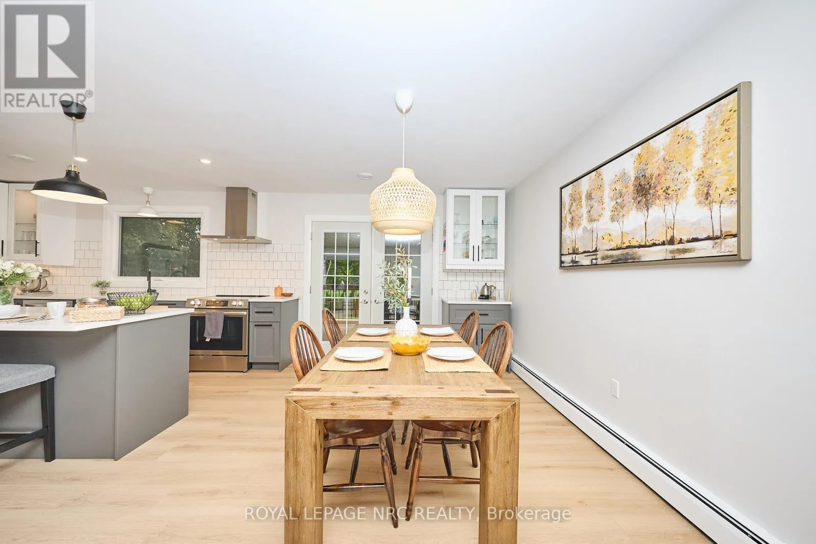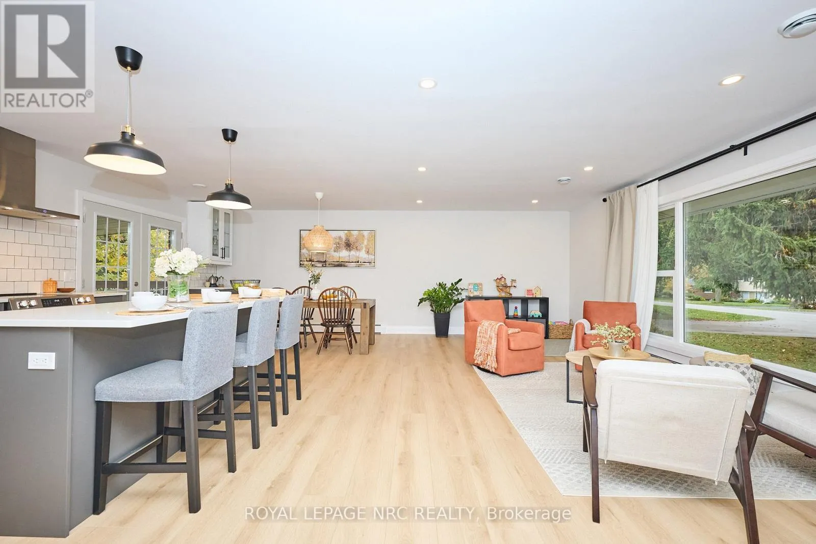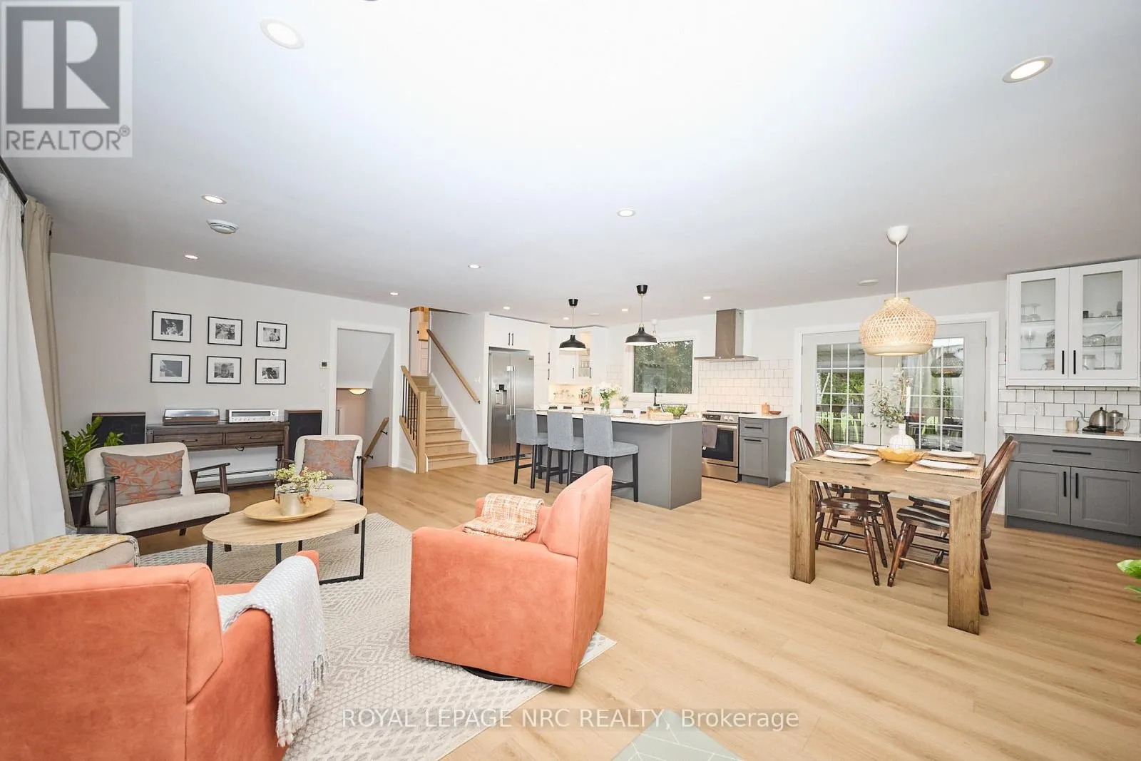 Cross Streets: Haist Street. ** Directions: Haist Street to Damude Drive. THIS IS IT - The address everyone wants! Tucked away on one of Fonthill's most coveted, quiet dead-end streets, this fully updated home sits on an impressive 80' x 143' lot with a spacious cedar-lined, fenced rear yard backing directly onto A.K. Wigg school field - one of Niagara's highly rated and sought-after schools. Open your private backyard gate for direct access with more room to roam and play with baseball field, basketball net & more! This enclave is truly a pocket of its own, where families stay, play, and grow together, surrounded by mature trees and nature. Offering just shy of 2,000 sq. ft. of finished living space, the main floor was completely reimagined into a bright, open-concept design combining the living room, dining room, and a fresh new 2024 white kitchen with sleek cabinetry, matching quartz countertops, and a large center island - perfect for friends and family gatherings. Here, the chef can be cooking, the kids can be playing, and you can be relaxing all in the same open space - a layout that enhances family fun connection. Trendy window above the sink (new in 2025) frames serene treetop views, while the large front picture window floods the space with natural daylight. New luxury vinyl plank flooring throughout and dimmable LED pot lights for the perfect ambiance. French doors lead to a covered rear deck (2021) overlooking the lush greenspace. Major updates include a new roof (2024), new appliances (2024), new 3-pc bath (2025), updated 200 -amp electrical service in 2021. New double garage door in 2025 with a fully drywalled interior. All windows were replaced in 2016 (except basement). Upstairs offers three bright bedrooms and an updated 4-pc bath. The lower level adds a spacious family/recreation room with a gas fireplace, custom built-in shelving, and an unfinished storage area. Homes on this street rarely become available. If you've been waiting for location, lifestyle, and move-in ready to finally all align - this is your moment. (id:27476)