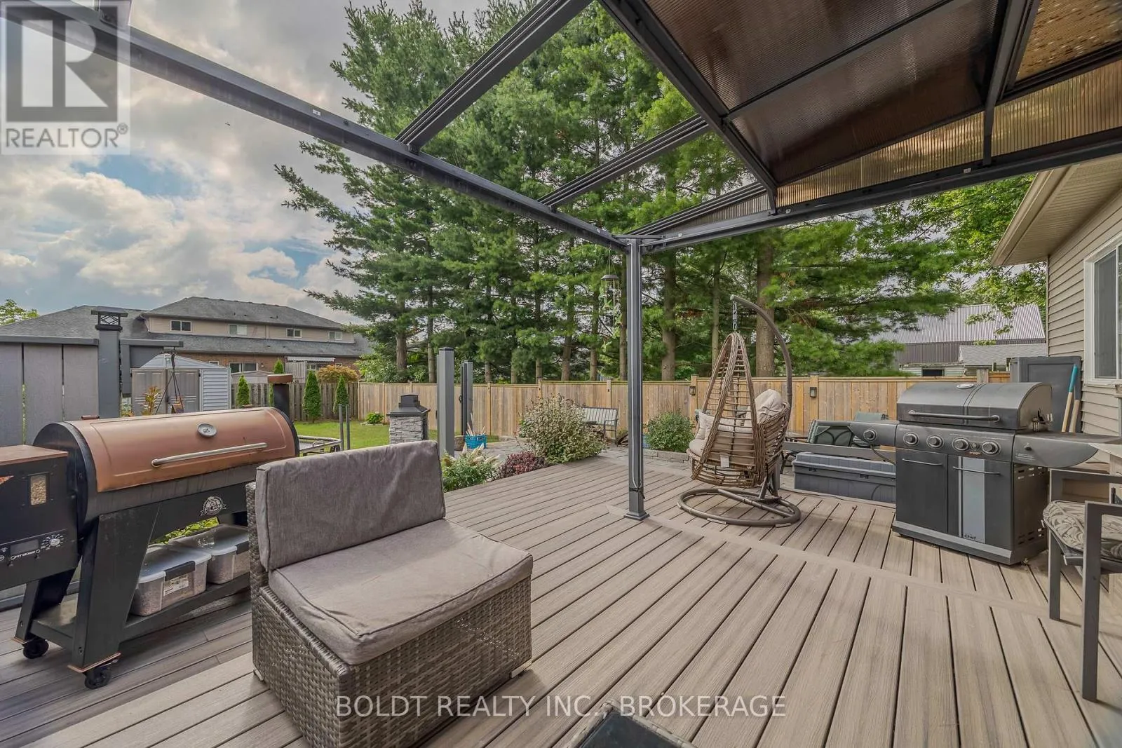 Cross Streets: Pelham and Spruceside Cres. ** Directions: south on Pelham Street. Move in ready! Wonderful two bedroom 1290 sq ft bungalow on a huge lot in beautiful Fonthill! Foyer leads to an open concept kitchen and living area with solid oak hardwood flooring. Soft close white cabinetry compliment the kitchen along with an island with seating for four. This 14 year old home is detailed with crown molding and an oak staircase to the basement. The primary main floor bedroom is complete with ensuite and huge walk in closet. Main floor laundry is always a bonus along with central vacuum on the main floor and basement. The living room has french doors that open to the huge two tiered 22' x 16' composite deck and patterned interlocking paving stones with outdoor fireplace! Extra large recreation room with electric fireplace is great for TV viewing or future theater room! An extra bedroom in the basement can always be utilized by visiting guests or the privacy seeking teenager. The 175 foot deep lot is lined with trees to provide a most private backyard that is perfect for sitting under the stars or enjoying a family barbeque. Double wide paved driveway (2 years old) with plenty of parking and a two car garage. Enjoy what Fonthill and the Niagara region has to offer! (id:27476)
