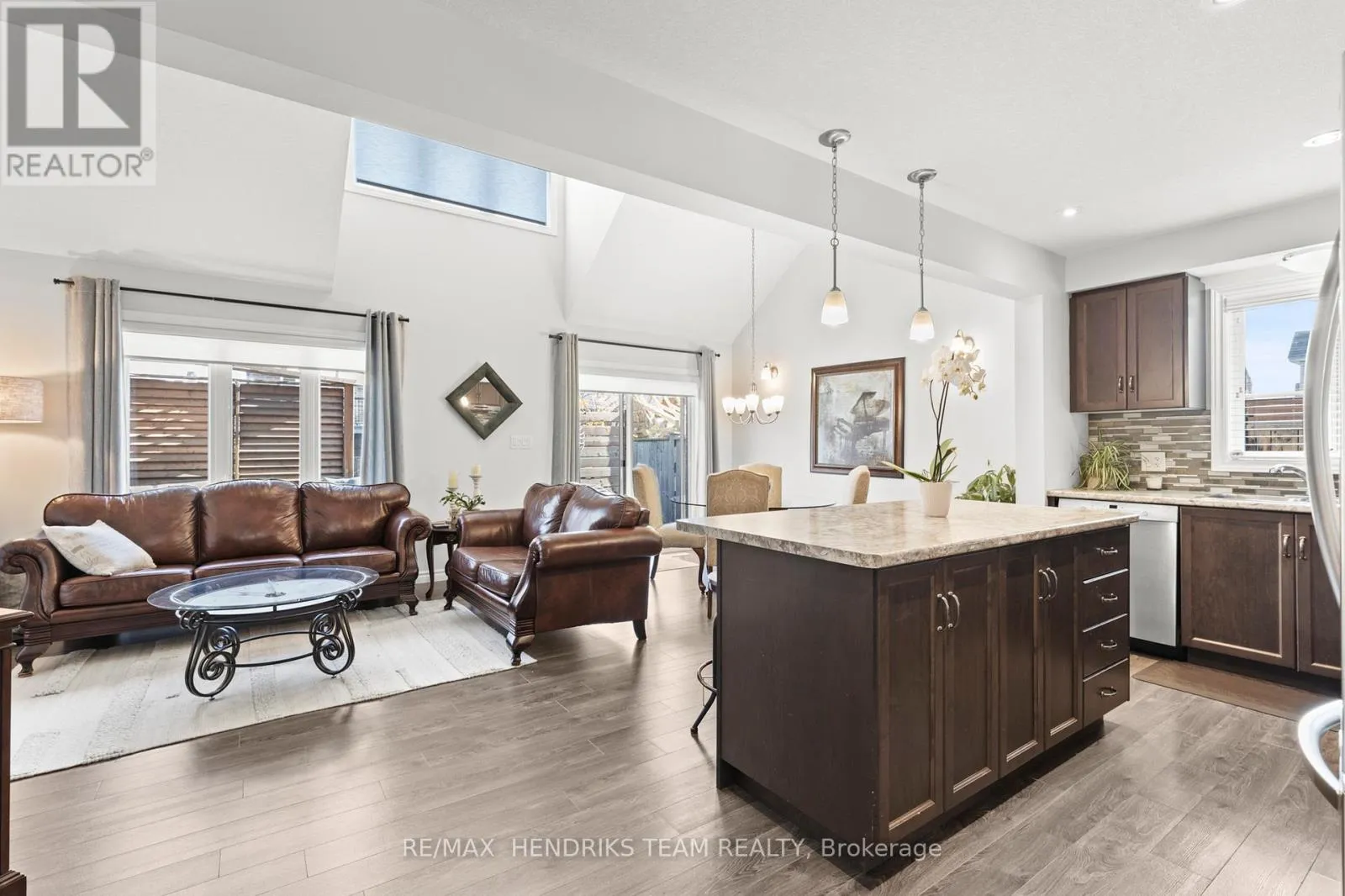 LOOKOUT ST TO BREWERTON BLVD TO ABBOTT PLACE This beautiful freehold townhome offers a thoughtfully designed layout that caters to modern living. As you step inside, you'll be greeted by a convenient two-piece bathroom and a spacious front hall, setting the tone for the rest of the home. The main floor features a luxurious primary bedroom complete with an ensuite bathroom and a generous walk-in closet, ensuring comfort and privacy. The open-concept kitchen and living room create a perfect space for entertaining, highlighted by stainless steel appliances and soaring 17-foot ceilings that add an airy elegance. Ascend to the loft, you will walk into another living room space that you could also convert into an office. As you continue you'll find another inviting bedroom and a well-appointed four-piece bathroom, perfect for guests or family members. Step outside to your backyard oasis, featuring a custom-built deck with a charming pergola and professional landscaping that enhances your outdoor living experience. Located just minutes away from grocery stores, schools, and a variety of restaurants, this home offers the perfect blend of convenience and comfort. Don't miss the opportunity to make this stunning property your own! (id:27476)