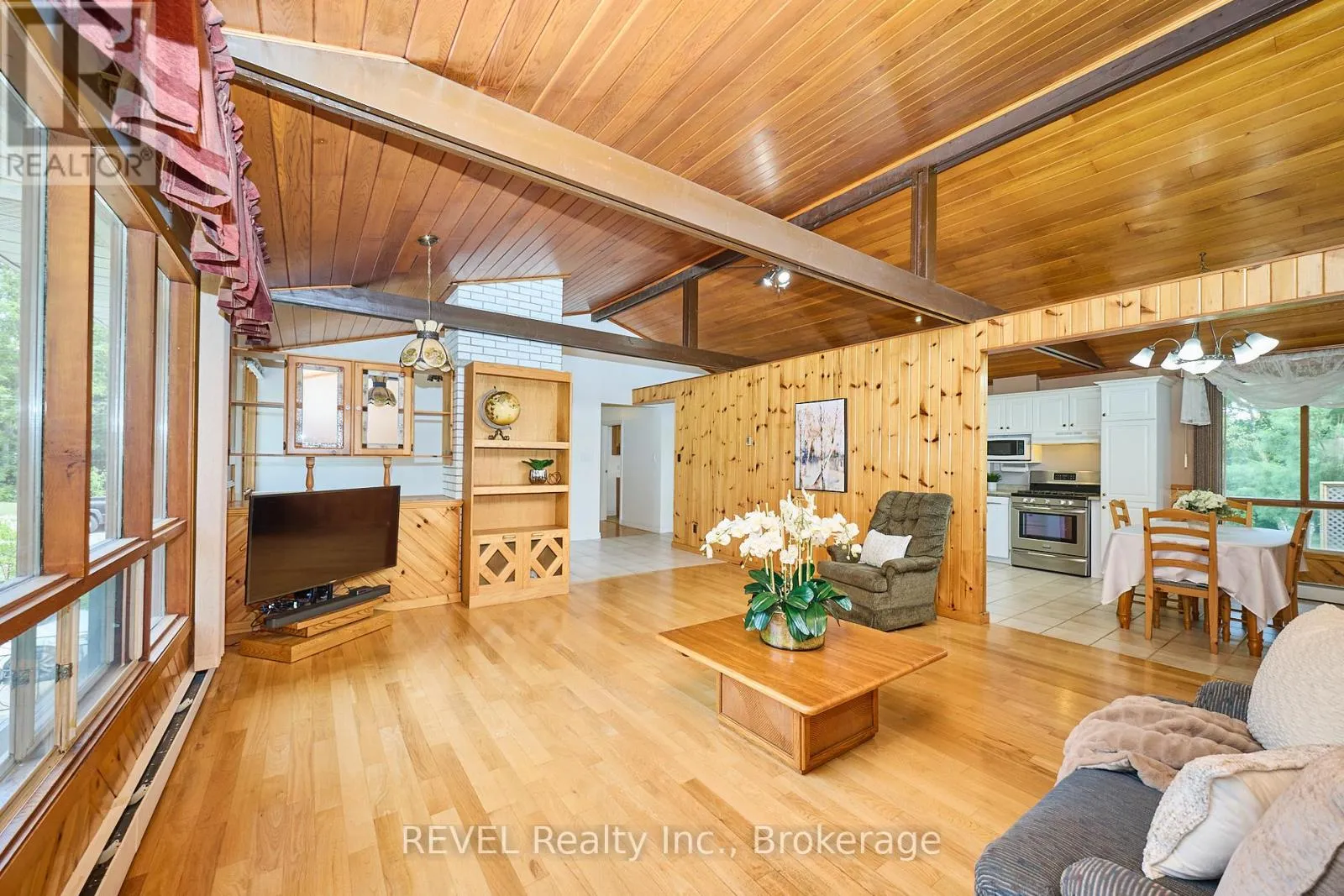 Cross Streets: Effingham Street and Canboro Road. ** Directions: QEW Niagara to Victoria Avenue to Highway 20 to Effingham Street to Canboro Road. Having been loved by the same family for over 40 years, without a doubt, 268 Canboro Road is a special property. Positioned on a mature, tree-lined lot in a beautiful area, this all-brick raised bungalow blends charm with thoughtful updates for a lifestyle that is as comfortable as it is convenient. Located in the quaint community of Ridgeville, just a short distance from some of the best shops, restaurants and schools, living here will feel like an escape to a world that has slowed down a bit, somewhere that will give you the peace you've been yearning. Step into the living room, where soaring ceilings, rich wood finishes and oversized windows set the stage for all that is to come. Windows nestled along the peak of the vault offer an airy, architectural touch, while the seamless flow of the layout makes gatherings, both large and intimate, a pleasure to host. Boasting gorgeous white cabinetry, the eat-in kitchen features abundant counter space and breathtaking views of the impressive, private lot that spans 344 feet in depth. At the back of the home, off the kitchen, is the lovely sunroom that offers a year-round retreat with a wood stove and sliding doors leading to a deck that perfectly complements the backyard. Three expansive bedrooms, along with a 3-piece bath complete the main floor of this home. Featuring a large recreation room, additional bedroom, 2-piece bath, sauna with shower and laundry room, the lower level is complete with plenty of additional finished living space. Outdoors, the appeal continues with a carefully maintained lawn, gorgeous, mature trees that offer a fabulous, natural canopy, along with a stone fire pit positioned at the heart of the yard. Additionally, you will find a large storage shed, two woodsheds and an attached double-car garage, all the space one could desire. From peaceful evenings by the fire to glorious mornings in the sunroom, this is more than a home - it's a place to make lasting memories in the heart of Pelham! (id:27476)