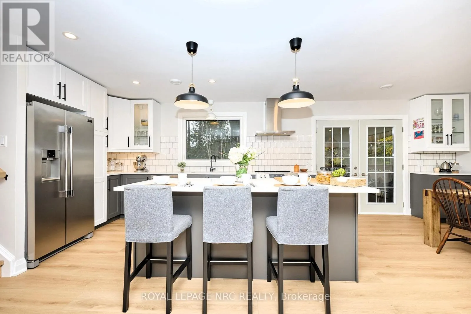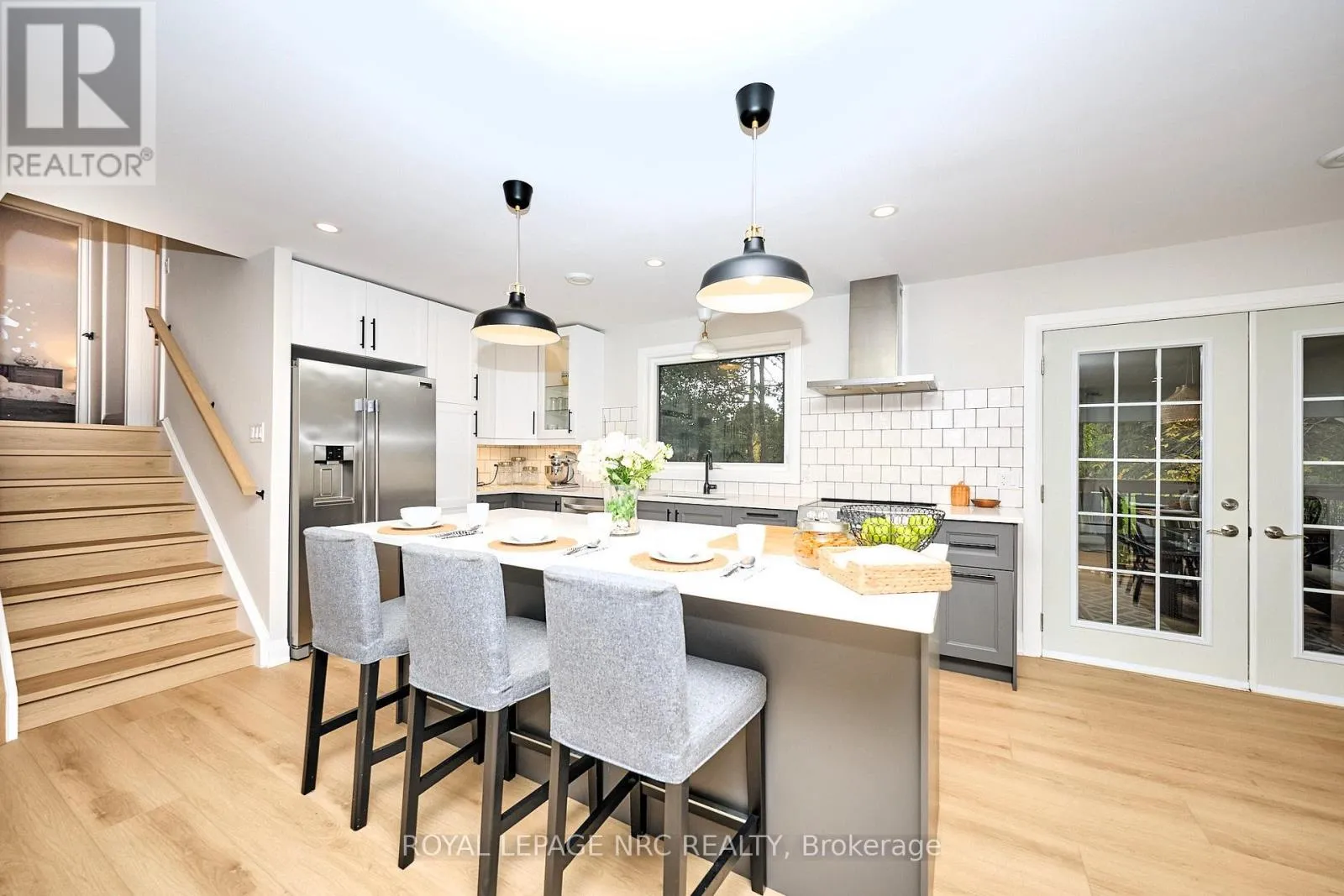 Cross Streets: Haist. ** Directions: Haist Street to Damude Drive. THIS IS IT - LOCATION LOCATION! Tucked away on one of Fonthill's most coveted, quiet dead-end streets, this fully updated home sits on an impressive 80' x 143' lot with a spacious cedar-lined, fenced rear yard backing directly onto A.K. Wigg school field - one of Niagara's highly rated and sought-after schools. Open your private backyard gate for direct access with more room to roam and play. This enclave is truly a pocket of its own, where families stay, play, and grow together, surrounded by mature trees and nature. Offering just shy of 2,000 sq. ft. of finished living space, the main floor was completely reimagined into a bright, open-concept design combining the living room, dining room, and a fresh new 2024 white kitchen with sleek cabinetry, matching quartz countertops, and a large center island - perfect for friends and family gatherings. Here, the chef can be cooking, the kids can be playing, and you can be relaxing all in the same open space - a layout that enhances family fun connection. Trendy window above the sink (2025) frames serene treetop views, while the large front picture window floods the space with natural daylight. New luxury vinyl plank flooring throughout and dimmable LED pot lights for the perfect ambiance. French doors lead to a covered rear deck (2021) overlooking the lush greenspace. Major updates include a new roof (2024, all except back/North side of portion over kitchen/Dinette), new appliances (2024), new 3-pc bath (2025), updated 200 -amp electrical service in 2021. New double garage door in 2025 with a fully drywalled interior. All windows were replaced in 2016 (except basement). Upstairs offers three bright bedrooms and an updated 4-pc bath. The lower level adds a spacious family/recreation room with a gas fireplace, custom built-in shelving, and an unfinished storage area. Homes on this street rarely become available. If you've been waiting for location, lifestyle, and move-in ready to finally all align - this is your moment. (id:27476)