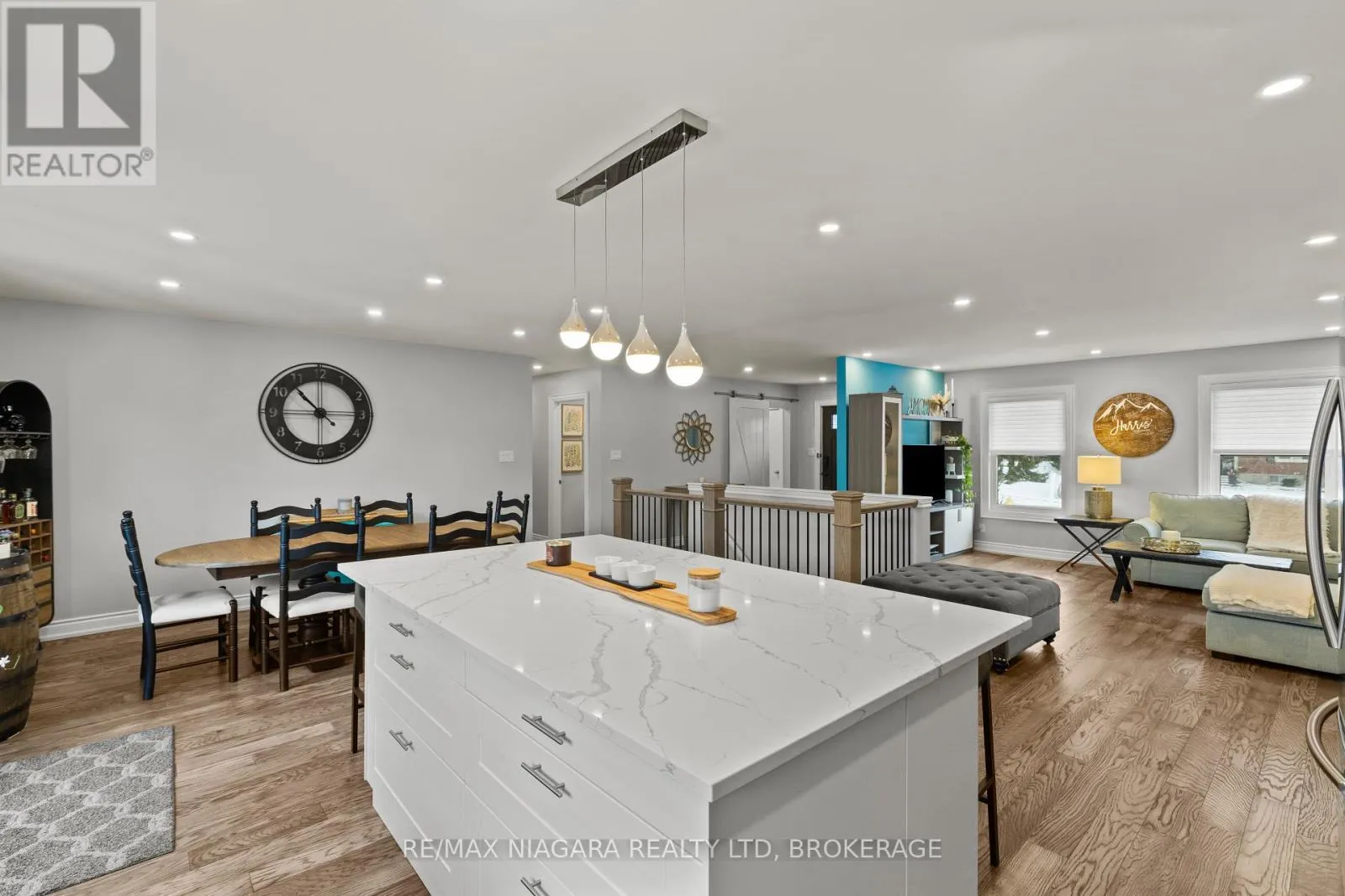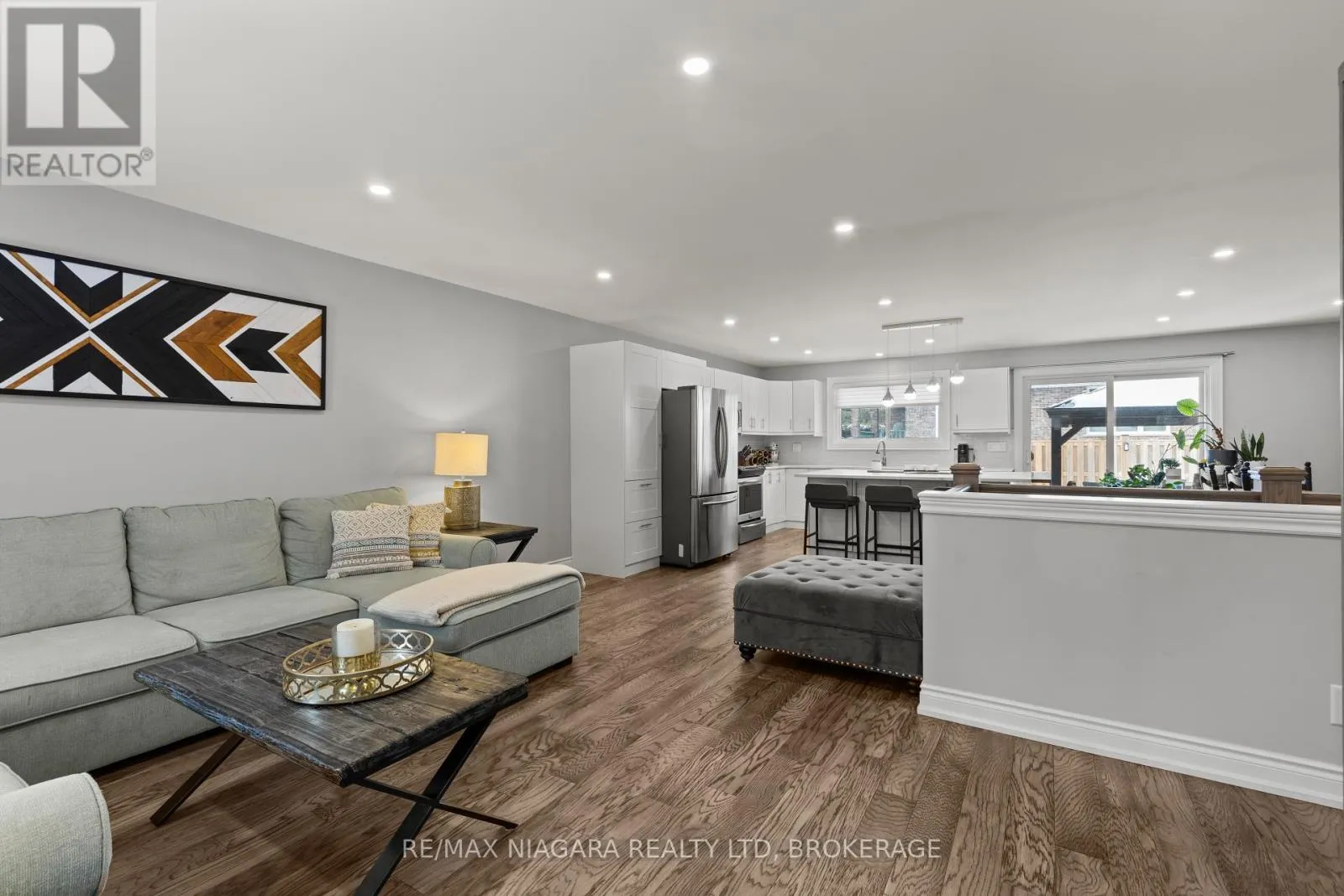 Cross Streets: Haist and Crosshill Road. ** Directions: Hwy 20 East to Haist OR Quaker Road to Haist. This well maintained bungalow sits on a beautiful, spacious lot in the heart of Fonthill. The bright, open concept main floor features newer flooring and windows throughout, creating a welcoming and airy living space. The updated kitchen offers granite countertops, a center island, and seamless flow into the dining and living areas, perfect for everyday living and entertaining. The main level includes three generously sized bedrooms, including a primary bedroom with ensuite access, as well as the convenience of main floor laundry. Patio doors off the dining area lead to the fully fenced backyard, where you will find a patio with pergola, ideal for relaxing or hosting family and friends. The lower level offers exceptional versatility. The main home has access to a rec room and office, while a separate entrance leads to a self contained one bedroom in law suite complete with its own kitchen, living area, three piece bathroom, and laundry. This space is ideal for extended family, guests, or potential income. Additional features include a large driveway, double garage, and a Level 2 electric vehicle charger, offering modern convenience and functionality. (id:27476)
