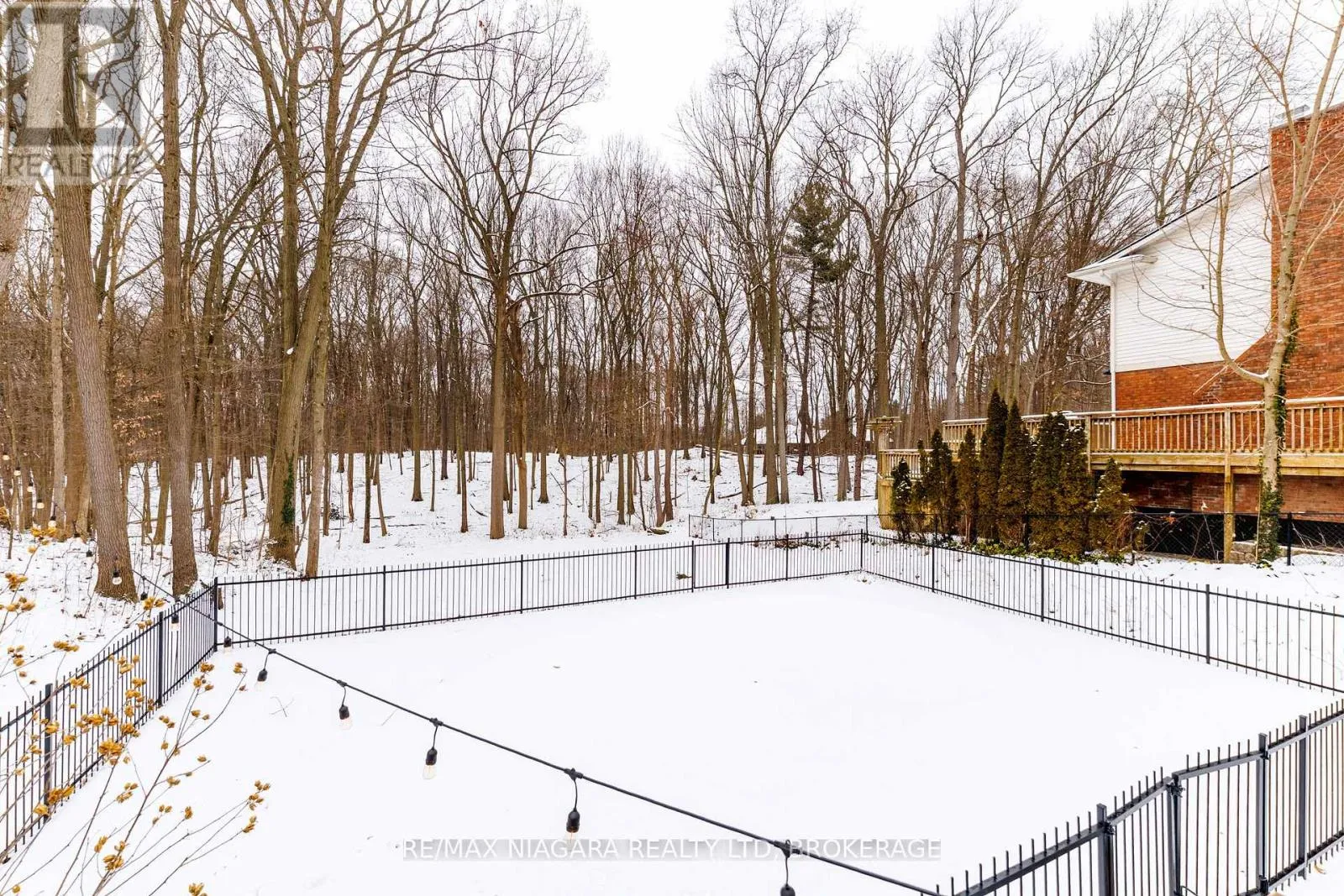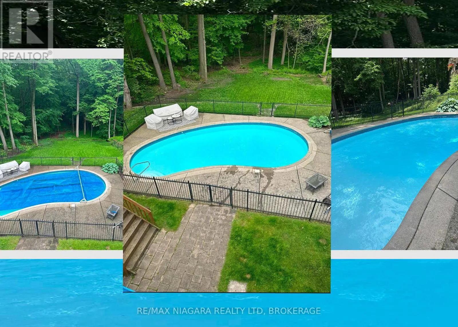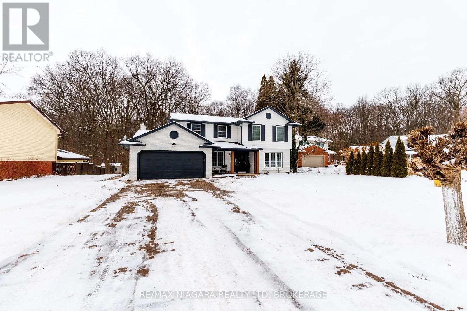 Cross Streets: Haist St. ** Directions: Take Haist Street and turn west onto Berkwood Place. Tucked away at the edge of Fonthill on a peaceful, treed lot, 35 Berkwood Place offers the rare feeling of cottage country living-without ever leaving town. Backing onto acres of forest and nestled on a 94 x 357-foot wooded lot, this spacious 4+1 bedroom, 4 bath home offers 2787 sq ft + a finished basement and the kind of backyard privacy that's nearly impossible to find in town. The main floor is light-filled and welcoming, with a cozy family room featuring wood beams and a gas fireplace (2025), French doors to the deck, a sunny bay-windowed breakfast area, and an eat-in kitchen with updated countertops and sink (2023). You'll also find a main floor living room, office, laundry room, and 2pc bath. Upstairs are four bedrooms, including a spacious primary suite with walk-in closet (9.5ft x 9ft), a private balcony, and 3pc ensuite. The family 5pc bathroom includes a double sink and serves the remaining bedrooms. The finished walk-out basement offers in-law suite potential with a rec room, 5th bedroom, 3pc bath, and plenty of storage. The backyard oasis is an outdoor sanctuary with a fenced, inground heated saltwater pool (converted in 2024, with new heater and pump in 2024/2025), multi-level deck, patio, and endless wooded views. Recent updates include roof shingles (2023), most back windows and sliding door replaced (2023), new trim, upstairs bedroom flooring, bathroom vanities, living room beams, light fixtures, and a new A/C unit (2025). Located just minutes from Fonthill, Pelham and Welland's shops, restaurants, schools and golf courses, with quick access to the 406 and QEW. Get ready to host all your friends and family gatherings and summer BBQs here. This is the kind of home that makes every weekend feel like a getaway. (id:27476)
