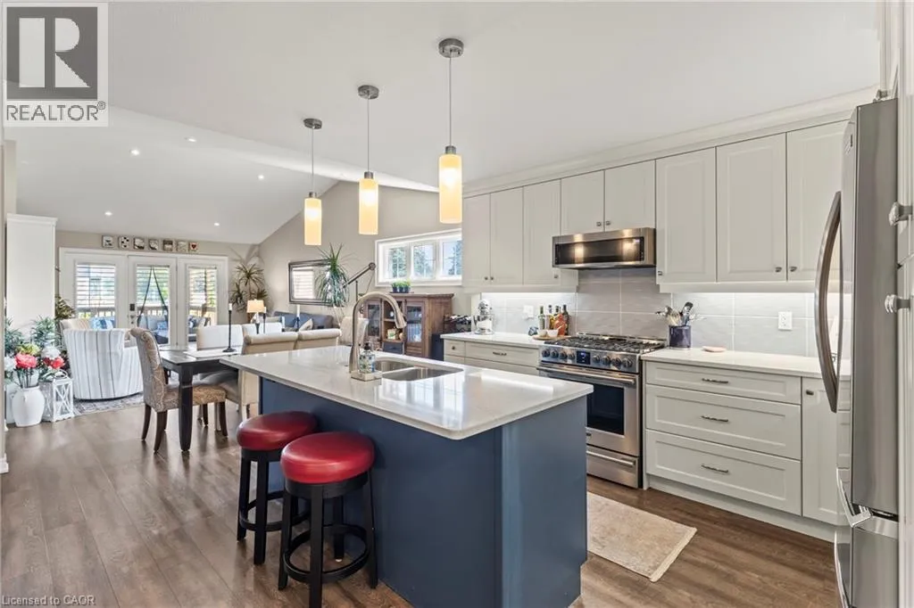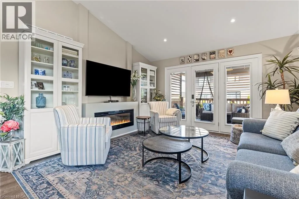 RICE RD- MYRTLE-SWAN-ACACIA In one of Southern Ontario's most desirable locations, this exceptional 4-bedroom, 3-bathroom ranch bungalow combines thoughtful design, premium finishes, and a resort-like private backyard. With windows on all four sides of the home-only connected to the neighbour by the garage-natural light fills every corner, enhancing both privacy and openness. Masterfully built, this home radiates quality from the Hemlock timber portico and composite Everlast cladding to the decorative stonework, LED soffit lighting, and professionally landscaped grounds.Inside, soaring vaulted ceilings, engineered hardwood floors, and custom Millbrook cabinetry set a tone of timeless elegance. The chef's kitchen features Caesarstone countertops, a centre island with prep sink, and all appliances just 2 years old, including a Frigidaire Gallery 4-door fridge, Frigidaire Professional 48 stove, Whirlpool dishwasher and microwave, plus an Electrolux Smart washer and dryer. The great room centres around a floor-to-ceiling tiled gas fireplace, framed by oversized windows that fill the space with natural light.The fully finished basement offers a spacious recreation area, a stunning TV room with a tiled floor-to-ceiling fireplace, guest accommodations, and endless possibilities for entertainment or fitness. The insulated 1.5-car garage provides comfort and extra storage.Mechanical systems include a rented hot water boiler for the hydronic furnace, an owned tankless water heater, and an owned water filtration system-ensuring year-round efficiency and comfort.Step outside to your own private resort-style backyard oasis, complete with expansive patios, lush landscaping, and tranquil spaces perfect for summer evenings and weekend entertaining. Every element of this home has been carefully designed to deliver comfort, luxury, and an unmatched lifestyle, all in a prestigious community celebrated for its charm, amenities, and proximity to the best of Southern Ontario living. (id:27476)