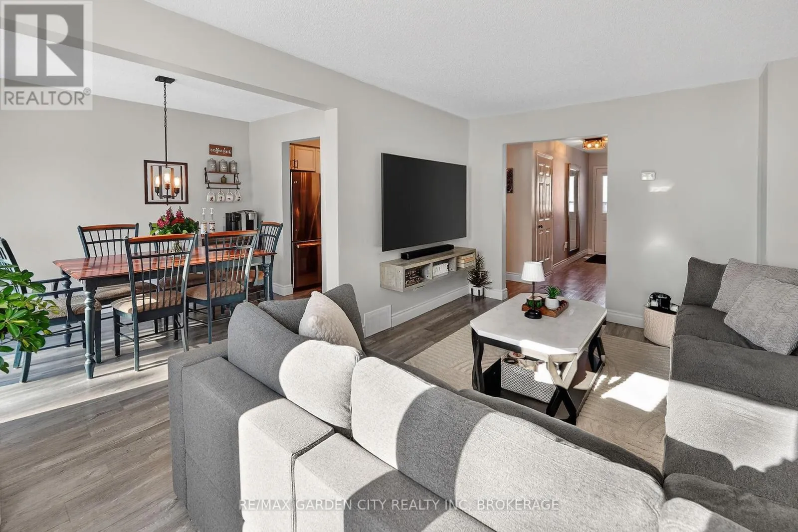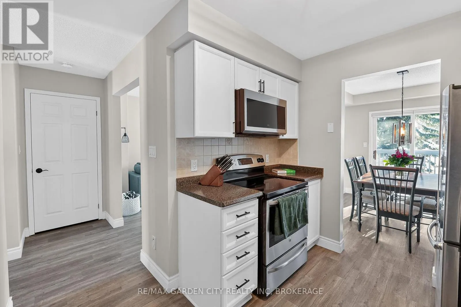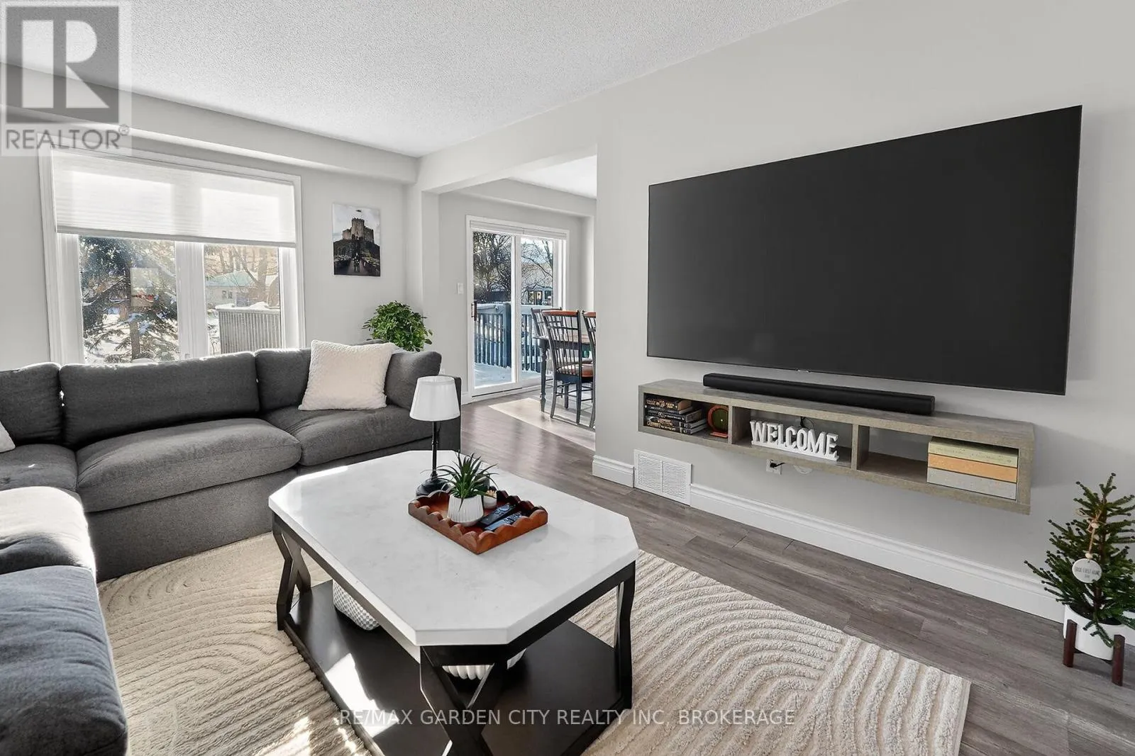 Cross Streets: Welland Road. ** Directions: Welland Road to Maureen Court. Immaculately kept with many updates this two-storey townhouse is located in a desirable Fonthill neighbourhood. The main floor features a bright and welcoming living room, refreshed kitchen, and dining area with sliding doors leading to a private deck with scenic view-perfect for outdoor enjoyment. Convenient garage access and a main-floor two-piece powder room complete this level.Upstairs, you'll find three bedrooms and a newly renovated four-piece bathroom with a stylish tiled shower with waterfall feature. The lower level offers a comfortable family room highlighted by a beautifully built custom bar, ideal for entertaining, with walk-out access to the backyard patio. A laundry room, ample storage, and an additional two-piece bathroom make this a functional and inviting home from top to bottom. Ideally situated on a quiet court close to many amenities, including shopping, dining, parks, trails, golf, and Niagara's renowned wine country. Updates include vinyl plank flooring throughout, new baseboards and custom stairs going up and down(2021)new furnace and air conditioning, new dryer (2023)custom built bar (2024) Roof approximately 9 years old. Book your showing today. (id:27476)