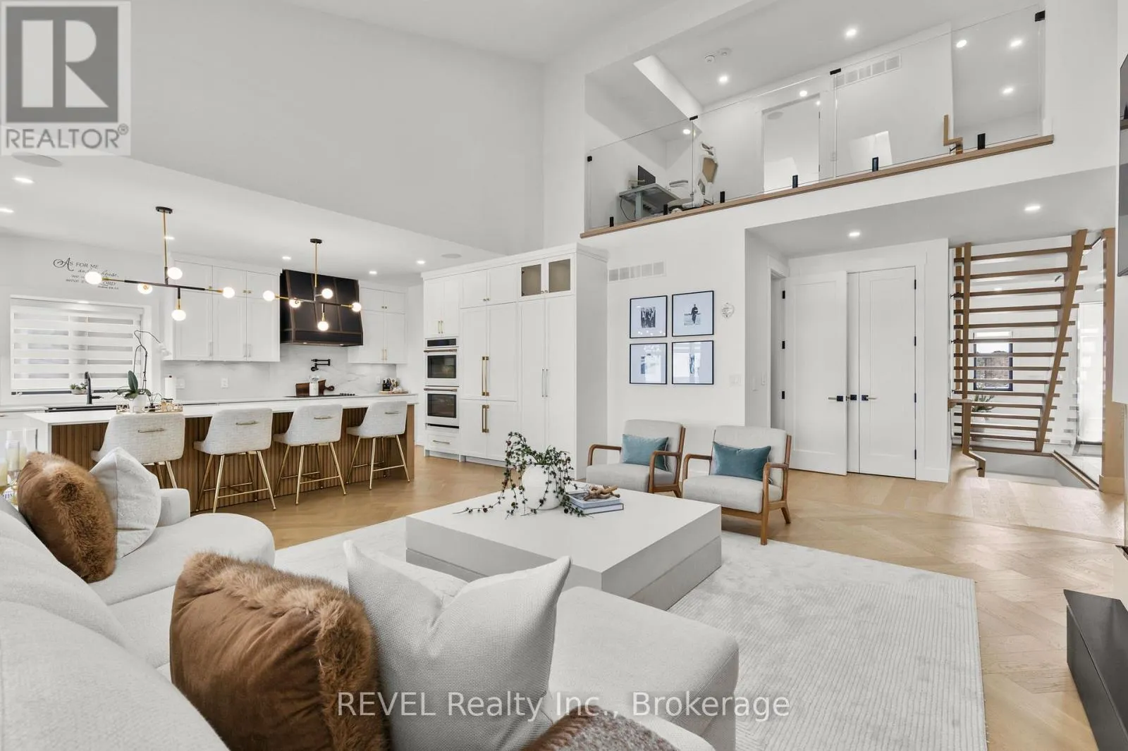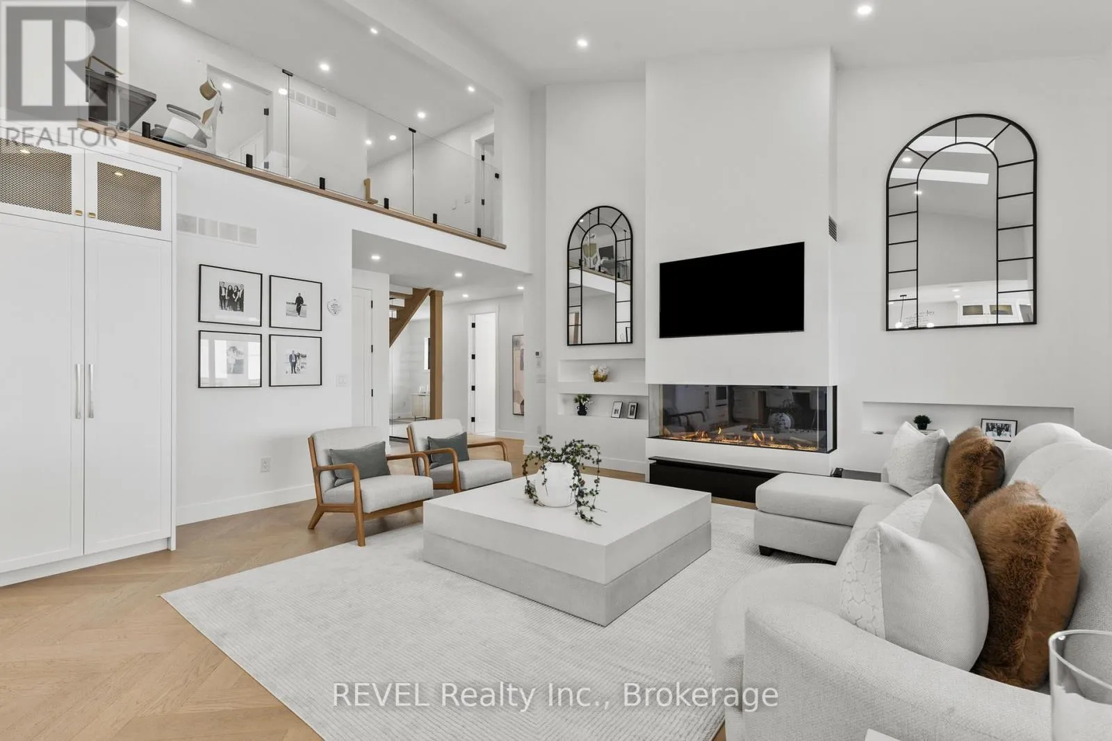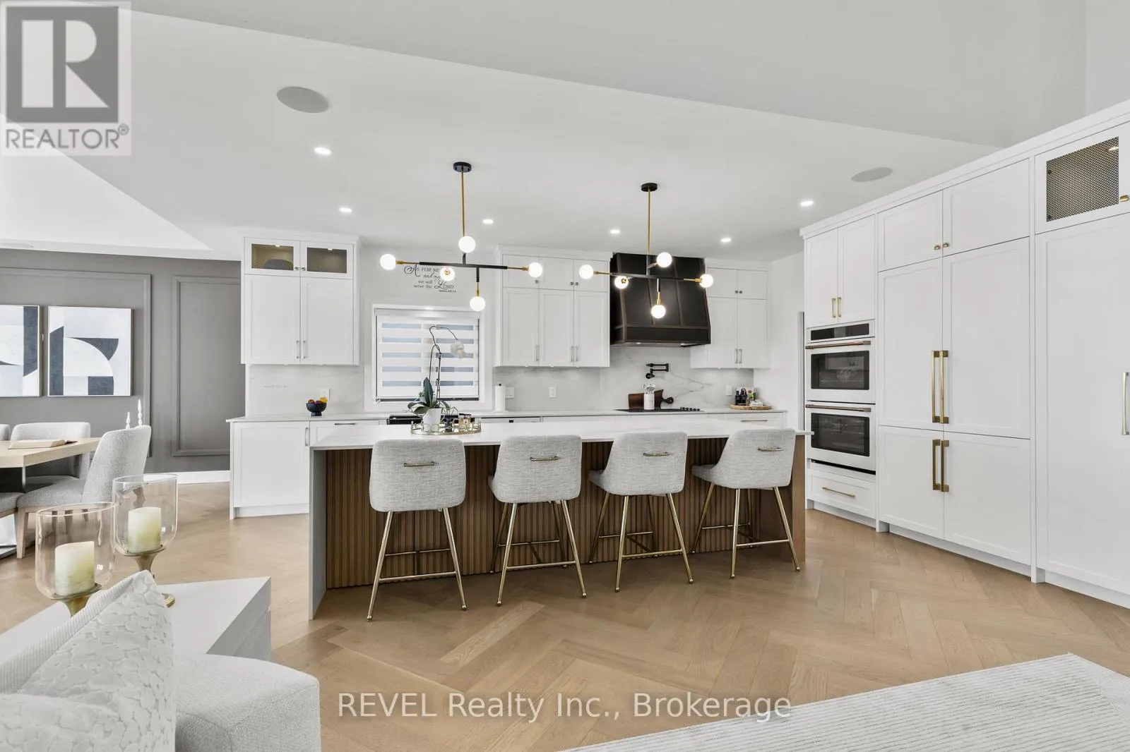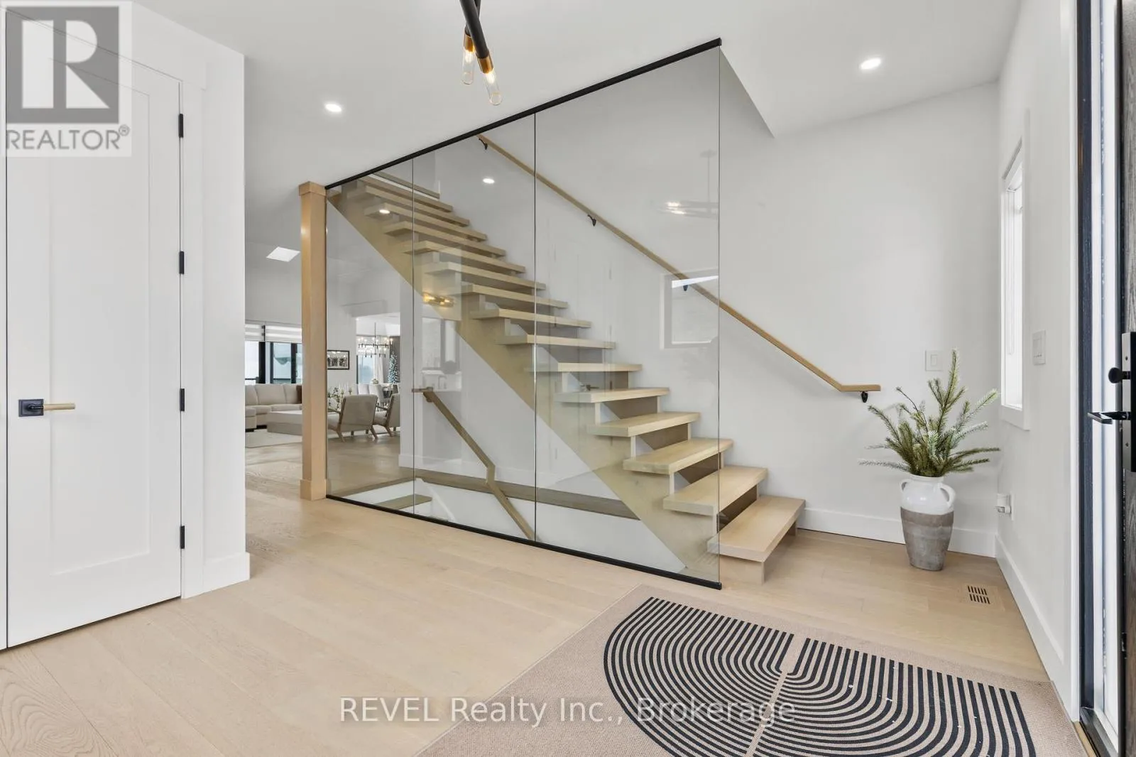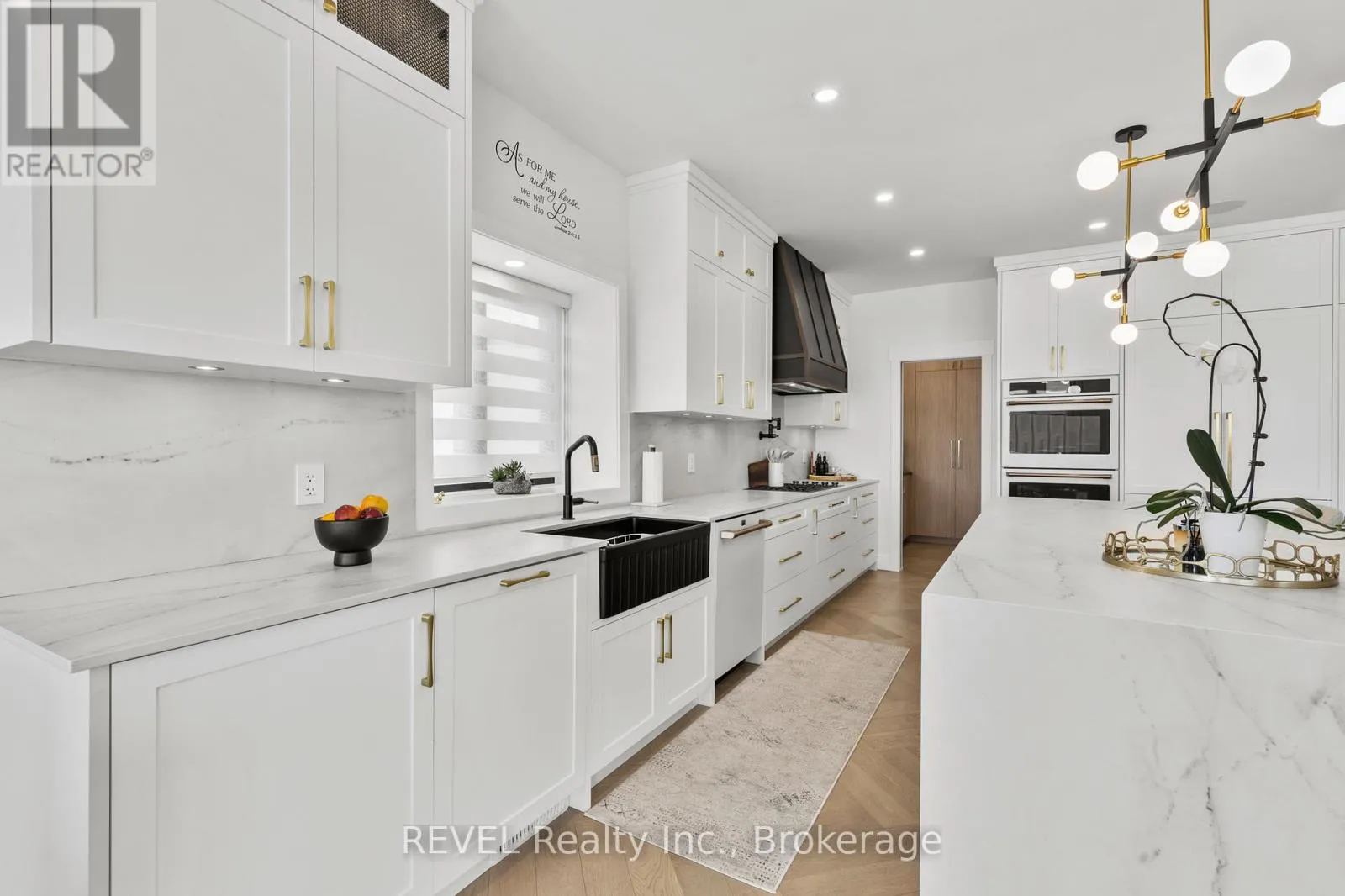 Cross Streets: Port Robinsons Road, and Rice Road. ** Directions: West on HWY 20 towards Fonthill, south on Rice Road, west on Myrtle St, North on Swan Ave. Discover luxury at 55 Swan Avenue, Fonthill - an exquisite executive home in Pelham's prestigious Saffron Estates. This 4+1 bed, 3.5+ bath residence offers ~3,018 sqft above grade (Main: ~1,983 sqft; Upper: ~1,035 sqft, both 9' ceilings) plus a large finished basement and walkout to a concrete patio. Enter a stunning foyer with floor-to-ceiling custom glass wall and herringbone hardwood. The open-concept main level is ideal for entertaining: gourmet kitchen with custom cabinets, Dekton counters/backsplash, walk-in pantry (bar sink + mini fridge), built-in Dacor fridge, GE Café double wall oven + 5-in-1 microwave. It flows to a bright breakfast area and family room with a custom, stunning 55,000 BTU gas fireplace. Main also includes formal dining, laundry, powder room, and mud room. Luxurious master suite features spacious bedroom, spa-like ensuite with heated floors, and large walk-in closet. Enjoy abundant light from skylights, oversized custom windows with zebra blinds, custom fixtures, and a beautiful floating staircase. Upstairs: 2 generous bedrooms served by main bath + Jack & Jill bath (both heated floors) and linen closet. Finished basement: large rec room, guest bedroom, 3-pc bath, mechanical room, cold cellar, and storage. Premium upgrades: exposed aggregate driveway, custom California-style garage doors with a 21'x21' garage space and roughed in for gas heating, 8ft shaker doors, irrigation, wired cameras, built-in audio, 'hide a hose' vacuum system (vacuum hides in wall!), hot tub, and oversized composite covered deck. In charming Fonthill - near top schools, parks, trails, amenities, and easy access to Niagara & GTA. This fully upgraded masterpiece blends timeless craftsmanship with modern luxury. (id:27476)