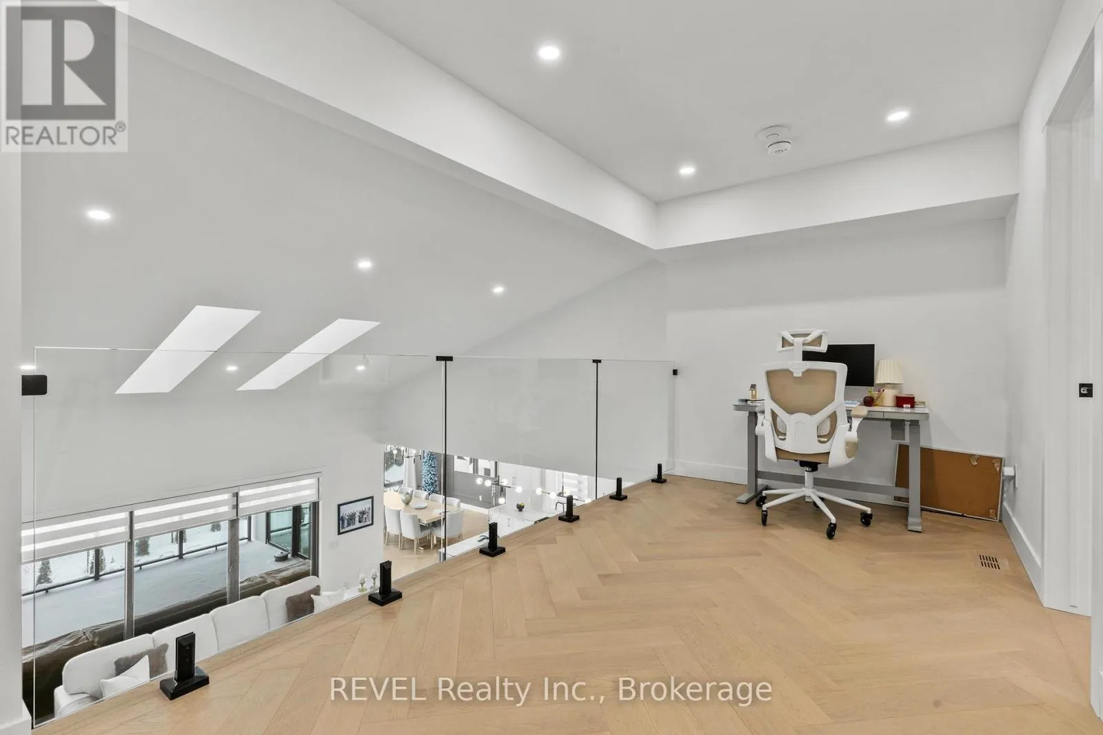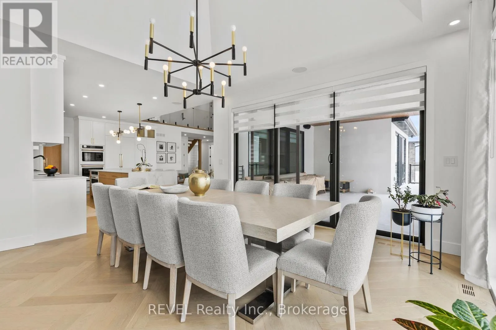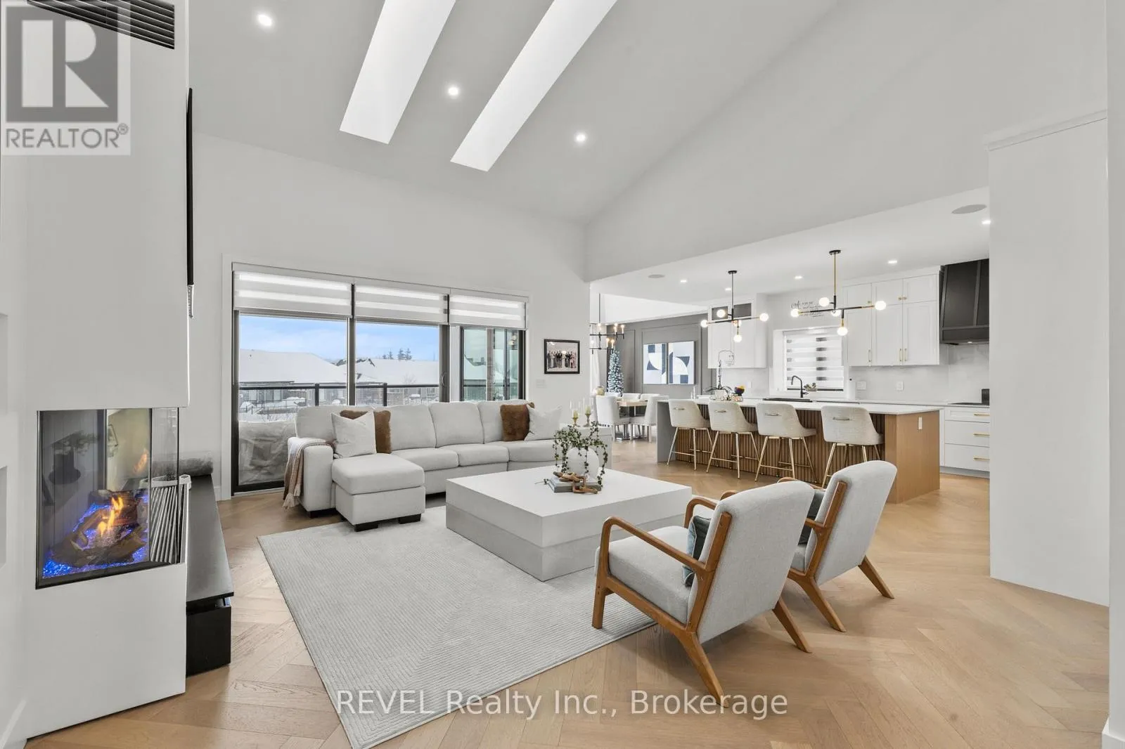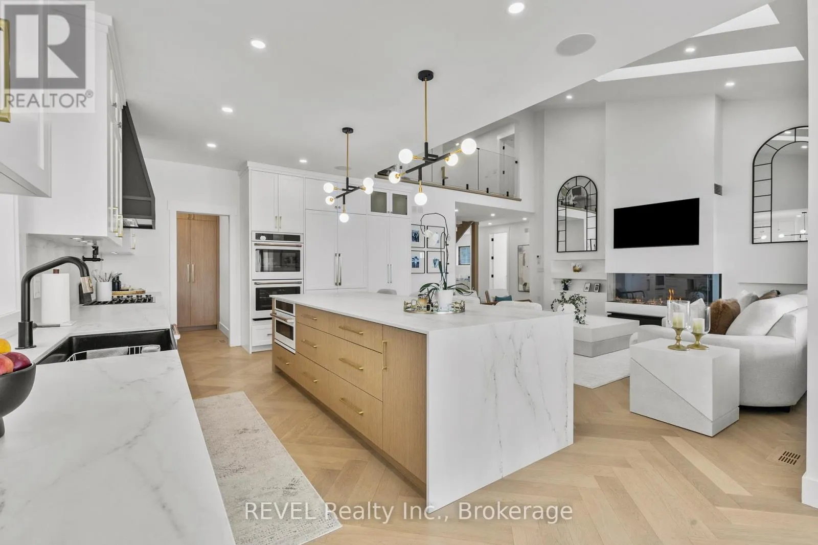 Cross Streets: Port Robinsons Road, and Rice Road. ** Directions: West on HWY 20 towards Fonthill, south on Rice Road, west on Myrtle St, North on Swan Ave. Discover luxury at 55 Swan Avenue, Fonthill - an exquisite executive home in Pelham's prestigious Saffron Estates. This 4+1 bed, 3.5+ bath residence offers ~3,018 sqft above grade (Main: ~1,983 sqft; Upper: ~1,035 sqft, both 9' ceilings) plus a large finished basement and walkout to a concrete patio. Enter a stunning foyer with floor-to-ceiling custom glass wall and herringbone hardwood. The open-concept main level is ideal for entertaining: gourmet kitchen with custom cabinets, Dekton counters/backsplash, walk-in pantry (bar sink + mini fridge), built-in Dacor fridge, GE Café double wall oven + 5-in-1 microwave. It flows to a bright breakfast area and family room with a custom, stunning 55,000 BTU gas fireplace. Main also includes formal dining, laundry, powder room, and mud room. Luxurious master suite features spacious bedroom, spa-like ensuite with heated floors, and large walk-in closet. Enjoy abundant light from skylights, oversized custom windows with zebra blinds, custom fixtures, and a beautiful floating staircase. Upstairs: 2 generous bedrooms served by main bath + Jack & Jill bath (both heated floors) and linen closet. Finished basement: large rec room, guest bedroom, 3-pc bath, mechanical room, cold cellar, and storage. Premium upgrades: exposed aggregate driveway, custom California-style garage doors with a 21'x21' garage space and roughed in for gas heating, 8ft shaker doors, irrigation, wired cameras, built-in audio, 'hide a hose' vacuum system (vacuum hides in wall!), hot tub, and oversized composite covered deck. In charming Fonthill - near top schools, parks, trails, amenities, and easy access to Niagara & GTA. This fully upgraded masterpiece blends timeless craftsmanship with modern luxury. (id:27476)