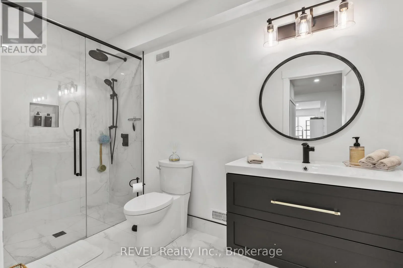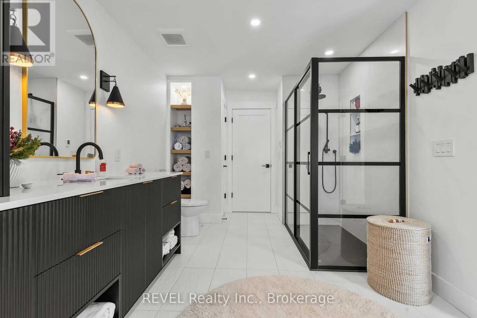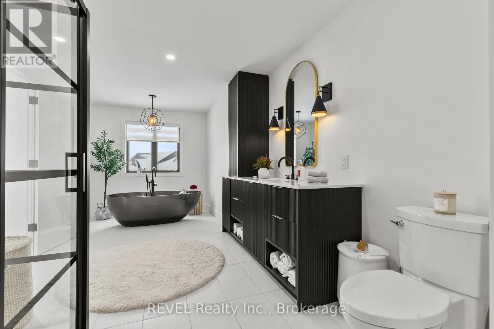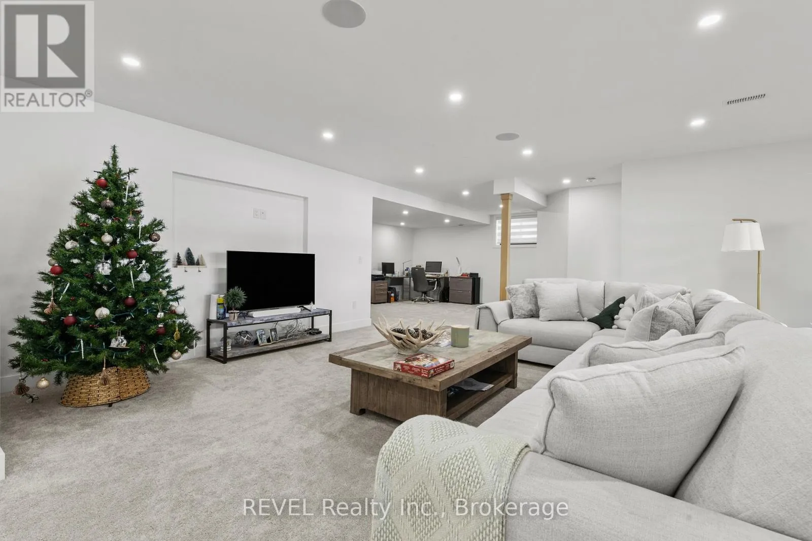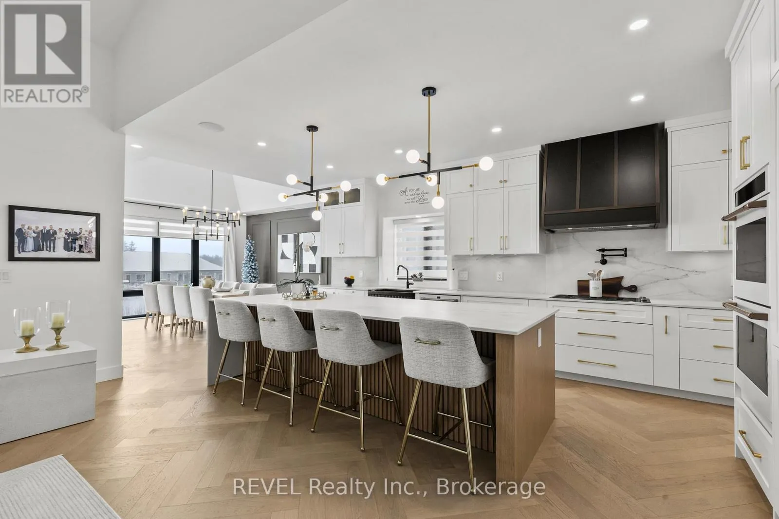 Cross Streets: Port Robinsons Road, and Rice Road. ** Directions: West on HWY 20 towards Fonthill, south on Rice Road, west on Myrtle St, North on Swan Ave. Discover luxury at 55 Swan Avenue, Fonthill - an exquisite executive home in Pelham's prestigious Saffron Estates. This 4+1 bed, 3.5+ bath residence offers ~3,018 sqft above grade (Main: ~1,983 sqft; Upper: ~1,035 sqft, both 9' ceilings) plus a large finished basement and walkout to a concrete patio. Enter a stunning foyer with floor-to-ceiling custom glass wall and herringbone hardwood. The open-concept main level is ideal for entertaining: gourmet kitchen with custom cabinets, Dekton counters/backsplash, walk-in pantry (bar sink + mini fridge), built-in Dacor fridge, GE Café double wall oven + 5-in-1 microwave. It flows to a bright breakfast area and family room with a custom, stunning 55,000 BTU gas fireplace. Main also includes formal dining, laundry, powder room, and mud room. Luxurious master suite features spacious bedroom, spa-like ensuite with heated floors, and large walk-in closet. Enjoy abundant light from skylights, oversized custom windows with zebra blinds, custom fixtures, and a beautiful floating staircase. Upstairs: 2 generous bedrooms served by main bath + Jack & Jill bath (both heated floors) and linen closet. Finished basement: large rec room, guest bedroom, 3-pc bath, mechanical room, cold cellar, and storage. Premium upgrades: exposed aggregate driveway, custom California-style garage doors with a 21'x21' garage space and roughed in for gas heating, 8ft shaker doors, irrigation, wired cameras, built-in audio, 'hide a hose' vacuum system (vacuum hides in wall!), hot tub, and oversized composite covered deck. In charming Fonthill - near top schools, parks, trails, amenities, and easy access to Niagara & GTA. This fully upgraded masterpiece blends timeless craftsmanship with modern luxury. (id:27476)