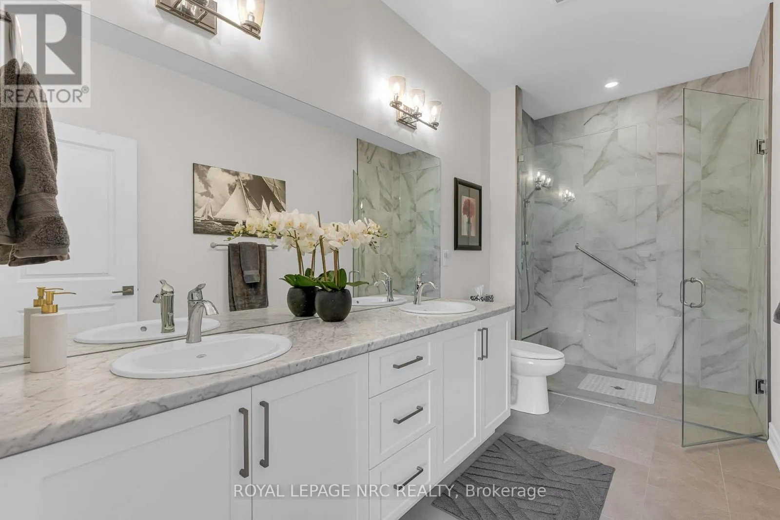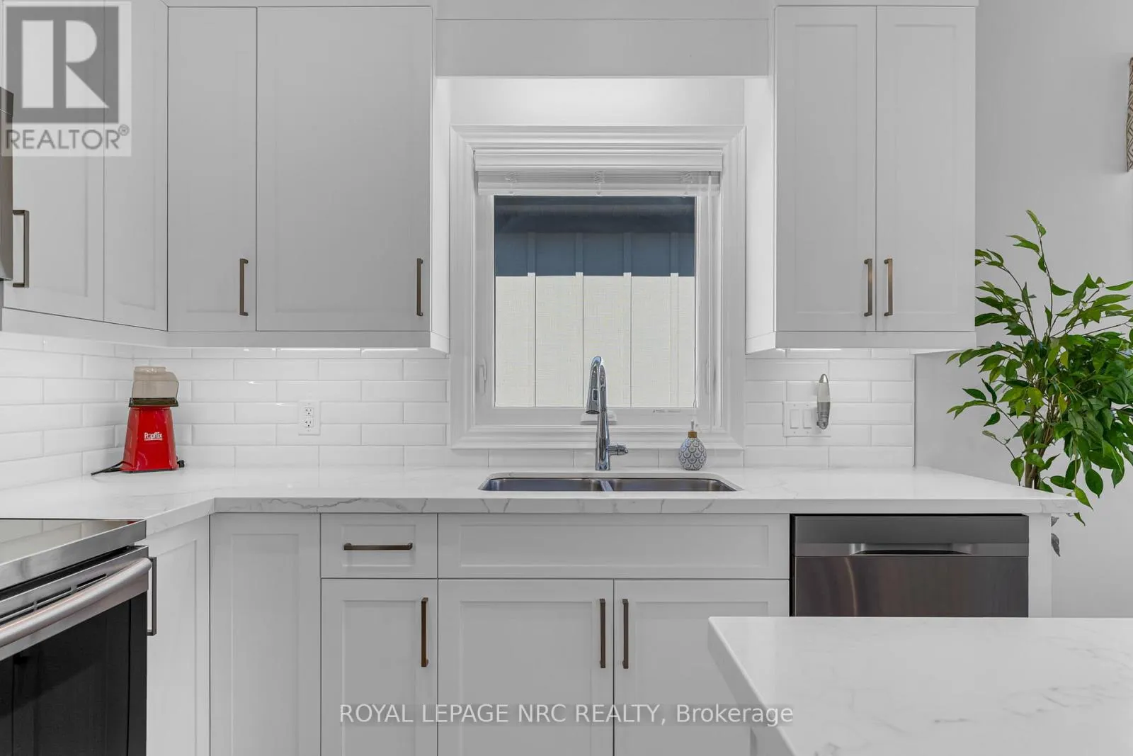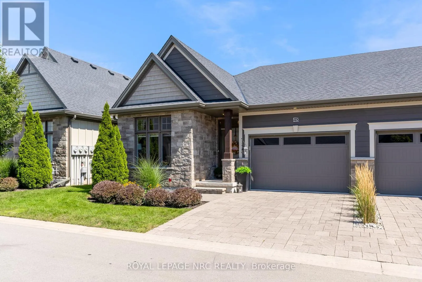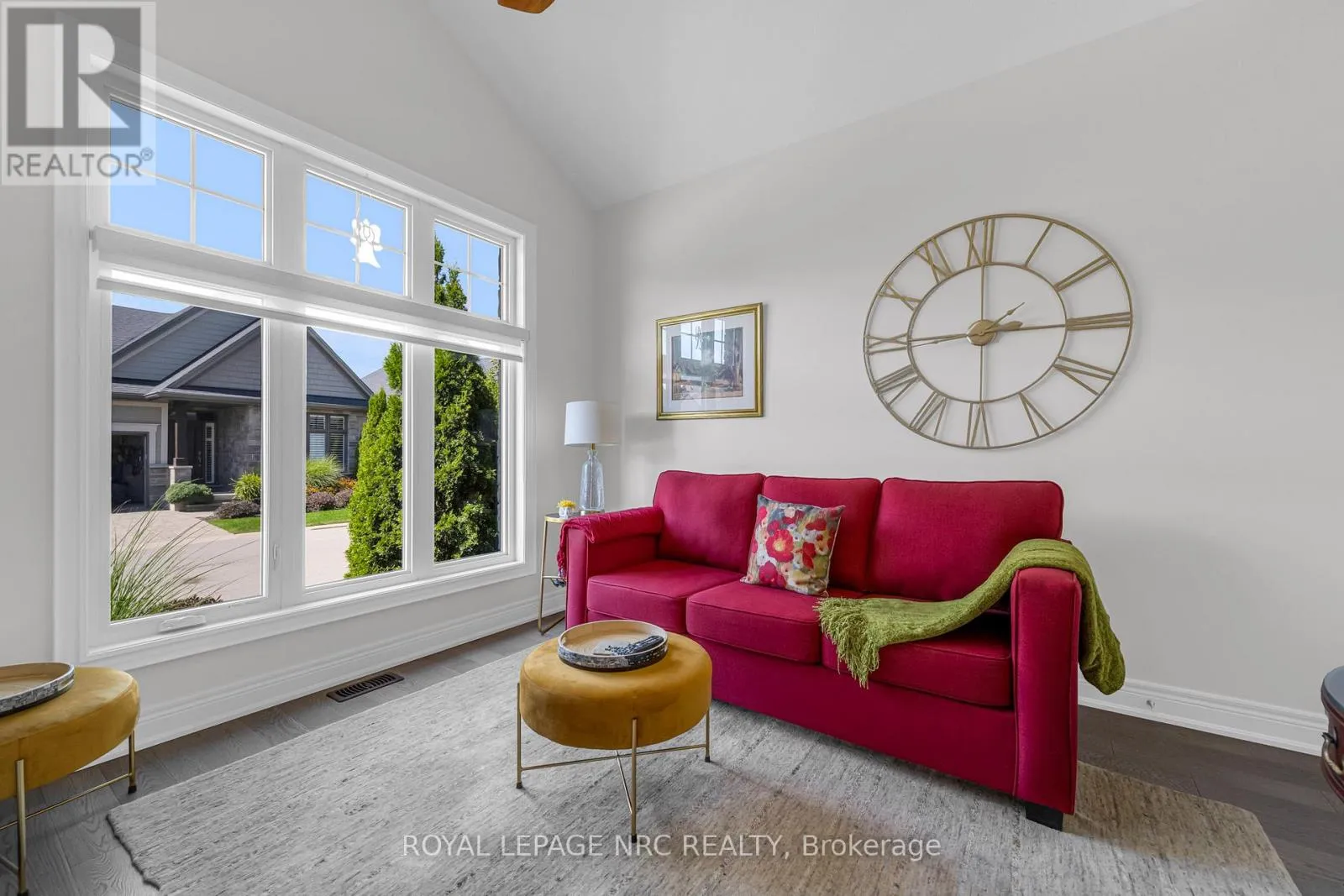 Cross Streets: Rice Road and Port Robinson. ** Directions: Rice Road to Port Robinson. A gorgeous bungalow townhome backing onto a pond awaits you! Welcome to 180 Port Robinson Road, Unit 48! This immaculately maintained 2+1 bedroom, 2 bathroom home offers a fine attention to detail and has all the features discerning buyers are searching for. Step through the front door (which is nicely equipped with a phantom screen) to find a neat and tidy foyer with a coffered ceiling detail, a spacious front bedroom, a full 4 piece bathroom, the stunning kitchen that is outfitted with white cabinets, quartz counters and stainless steel appliances, a soaring vaulted ceiling above the dining area and living room (with gas fireplace) and a large primary bedroom suite complete with walk-in closet and a spa inspired 4 piece ensuite bathroom. The rear yard provides a serene view of the nearby pond and features a lower patio and a large deck with a remote controlled retractable awning to keep you nice and comfortable on a hot day. Travel downstairs to find a large Rec Room, the large third bedroom and 2 large storage rooms (3 piece rough in available). Parking for 2 available on site between the attached 1.5 car garage and private interlocking stone driveway. Visitor parking is available just around the corner. Also, do not forget that there is no grass to cut or snow to shovel, one of the perks of condo living! Only a short walk to downtown Fonthill, shopping, restaurants & the Steve Bauer Trail. Easy access to world class golf, vineyards, the QEW & 406. Saffron Meadows is the quiet and serene community you have been searching for - don't delay! (id:27476)