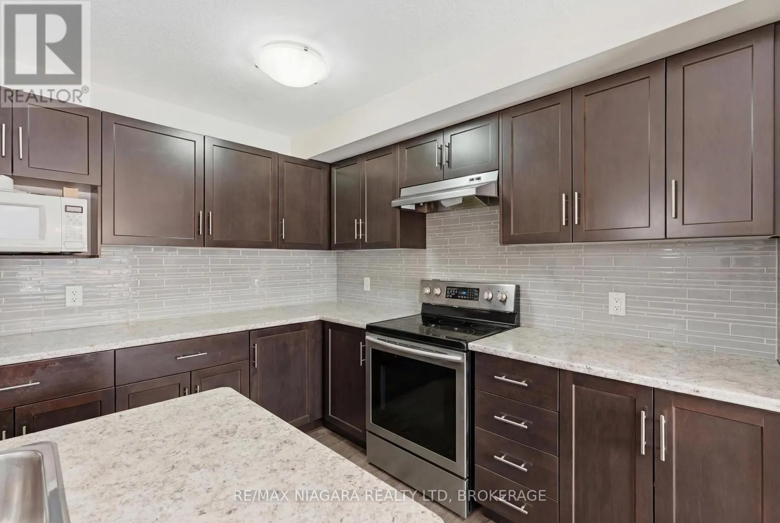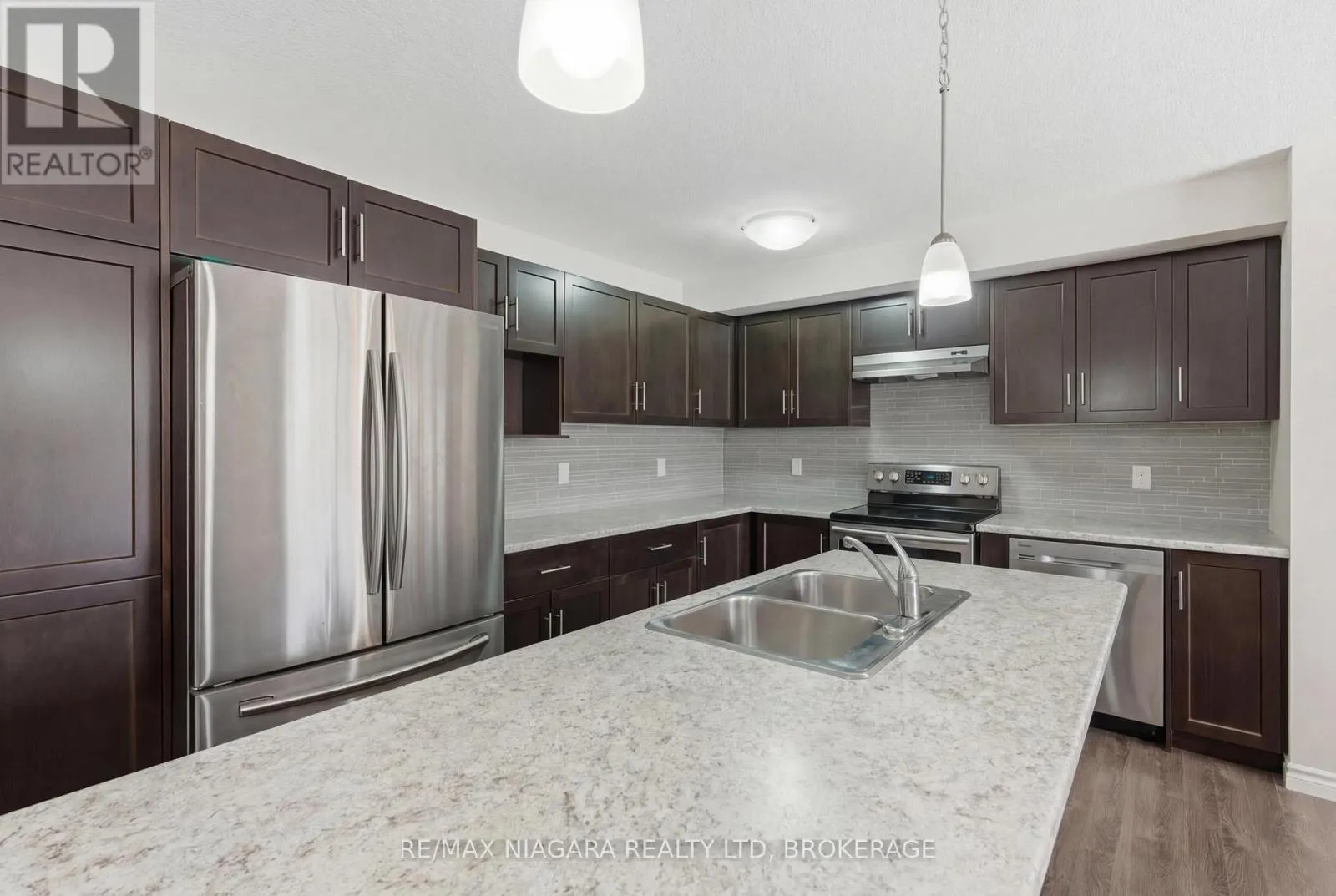 Cross Streets: HAIST ST. ** Directions: HAIST ST-BREWERTON BLVD-ABBOTT PLACE. Expansive 3-bedroom, 3-bathroom FREEHOLD end-unit townhome set within a prestigious Fonthill neighbourhood. Offering approximately 1,740 sq ft across two levels, this bright corner property includes a 1.5-car garage and outstanding value - with no condo fees. Welcoming front foyer with direct garage access. The main floor showcases an airy open-concept layout, featuring a kitchen with stainless steel appliances, stylish backsplash, abundant cabinetry and a 6-ft breakfast island. The dining area opens through sliding doors to a landscaped, fully fenced backyard. The upper level features three generously sized bedrooms, including a spacious primary retreat with walk-in closet and ensuite with glass shower. The second bedroom enjoys ensuite privilege to a 4-piece bath, and convenient second-floor laundry adds everyday functionality. The insulated basement offers excellent potential for future finishing. Ideally located close to shopping, schools, restaurants, parks, trails and a nearby dog park, with easy access to vineyard-lined roads, premier golf courses, and commuter routes to the QEW and Hwy 406. (id:27476)