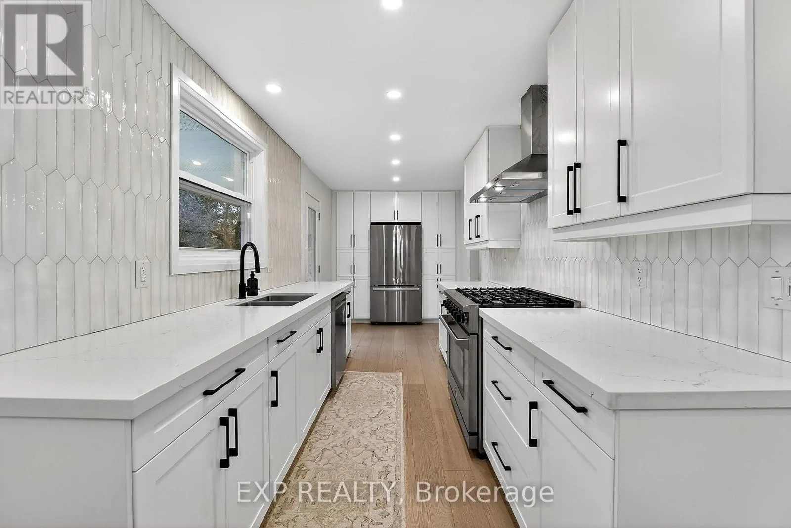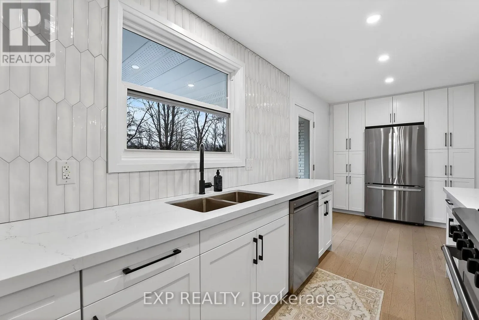 Cross Streets: Haist and Pancake Lane. ** Directions: Head South on Pelham Street, turn right on Pancake Lane. House located on the left side. This bright and light home needs to be seen to be truly appreciated ! ~2500 sq ft of living space. It sits on a rare double lot- providing space, privacy, and exceptional outdoor potential. From the moment you arrive the timeless curb appeal, a wrap-around driveway, and a double car garage (with rear access) sets the tone. Inside, the main level features a bright, open-concept living space finished with quality craftsmanship throughout. The stunning kitchen is designed for both everyday living and entertaining, showcasing quartz countertops, abundant cabinetry, and premium appliances including a Thor range. Step out from the kitchen onto the balcony and enjoy the peaceful views of your private, tree-lined backyard-perfect for morning coffee or evening unwinding. Both four-piece bathrooms feature heated floors, adding comfort and luxury to daily living.The fully finished on-grade lower level offers a separate entrance, a gas fireplace, and a walk-out to the backyard, making it ideal for extended family, or additional entertaining space. With countless upgrades, a turnkey interior, and a prime location, this home is an exceptional opportunity you won't want to miss. Renovated top to bottom prior to purchase in 2022. New in 2023: heat exchanger, new central air, security cameras, copper wiring, drop ceiling in the recreational room, professional painting, a 10x10 shed with 2x6 framing and board and batten on a thick concrete pad. Ontario drainage/ French drain installed in backyard for water drainage, new roof, and landscaping w/ 40 cedar trees. Perfect location for outdoor enthusiasts, families or retirees with Multiple parks, local schools ( A K Wigg Public School, Fonthill Montessori Preschool, Glynn A Green Public School, E.L. Crossley Secondary School, ) , restaurants and shops nearby. Three hospitals within a 15 minute drive. A move to 34 Pancake Lane is not only renovation free, it could be your next forever home. Come see it for yourself! (id:27476)