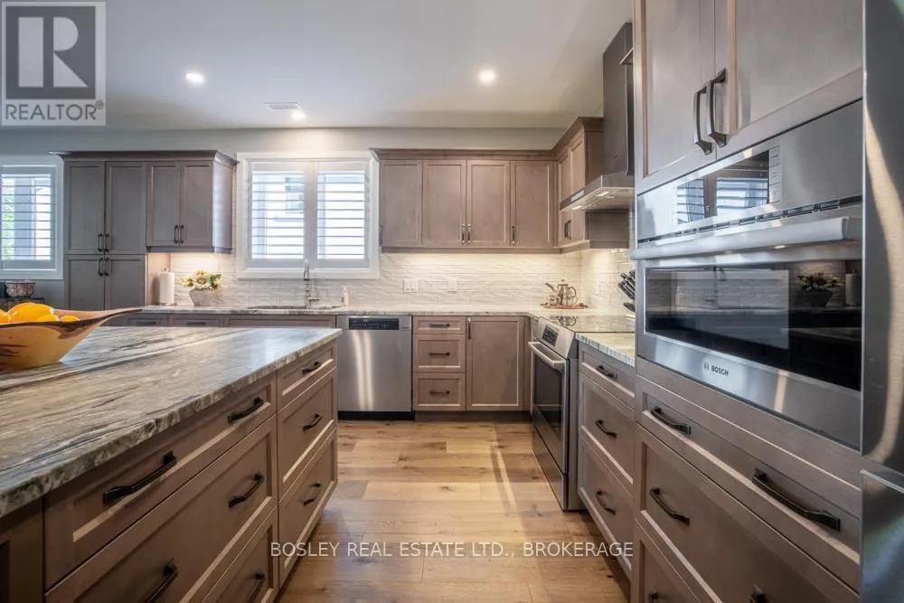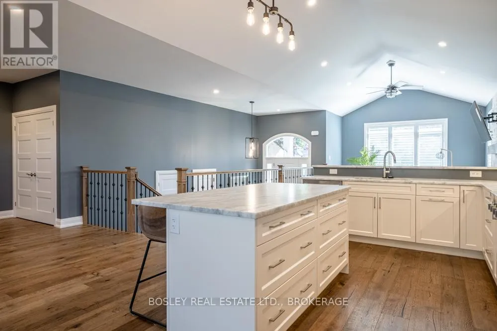 Hwy20 to Hurricane Rd Welcome to 1 Hurricane Road, a newly built custom raised bungalow in the heart of Pelham, Ontario. Designed with modern comfort, convenience, and flexibility in mind, this home is ideal for multigenerational living. The open concept main level offers a bright, inviting living space that flows into a beautifully designed kitchen featuring a large island, quartz countertops, ample storage, and high end finishes. A patio door leads to a raised deck, perfect for morning coffee, family gatherings, or year round enjoyment. This level includes three bedrooms, including a spacious primary with a private ensuite, along with a stylish four piece bathroom. The main floor family area also features a natural gas fireplace for added warmth and comfort. The lower level is perfectly suited for extended family or in law living. It features a full kitchen with a large island and granite countertops, matching the quality found upstairs. A generous bedroom, a three piece bathroom, and a formal dining area that could easily convert to an additional bedroom offer excellent flexibility. With ground level access at the rear, this space is filled with natural light and includes a patio slider that opens to a covered patio. A second natural gas fireplace adds to the inviting atmosphere. Additional highlights include a deep double car garage with a convenient walk up from the basement, along with a concrete driveway offering ample parking. Located in a highly desirable area, the home offers quick highway access for easy commuting. Pelham is also known for its golf courses and local wineries, providing a lifestyle that blends relaxation and convenience. Beautifully built and thoughtfully designed, 1 Hurricane Road delivers exceptional space, quality, and versatility. (id:27476)