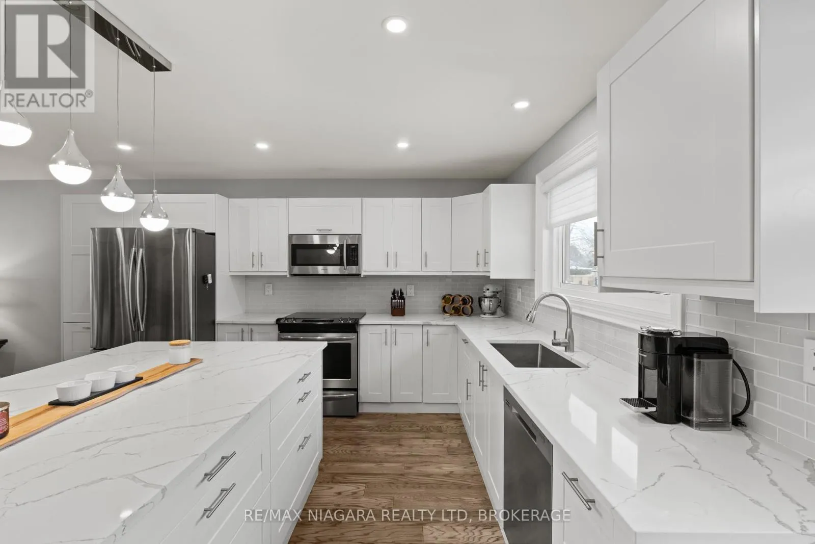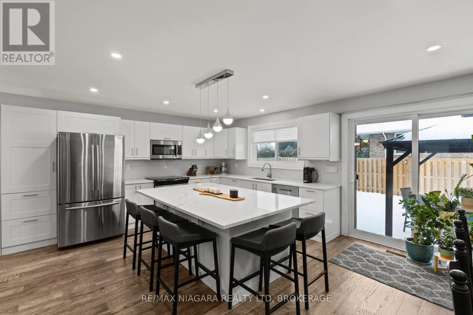 Cross Streets: Haist and Crosshill Road. ** Directions: Hwy 20 East to Haist OR Quaker Road to Haist. This well maintained bungalow sits on a beautiful, spacious lot in the heart of Fonthill. The bright, open concept main floor features newer flooring and windows throughout, creating a welcoming and airy living space. The updated kitchen offers granite countertops, a center island, and seamless flow into the dining and living areas, perfect for everyday living and entertaining. The main level includes three generously sized bedrooms, including a primary bedroom with ensuite access, as well as the convenience of main floor laundry. Patio doors off the dining area lead to the fully fenced backyard, where you will find a patio with pergola, ideal for relaxing or hosting family and friends. The lower level offers exceptional versatility. The main home has access to a rec room and office, while a separate entrance leads to a self contained one bedroom in law suite complete with its own kitchen, living area, three piece bathroom, and laundry. This space is ideal for extended family, guests, or potential income. Additional features include a large driveway, double garage, and a Level 2 electric vehicle charger, offering modern convenience and functionality. (id:27476)