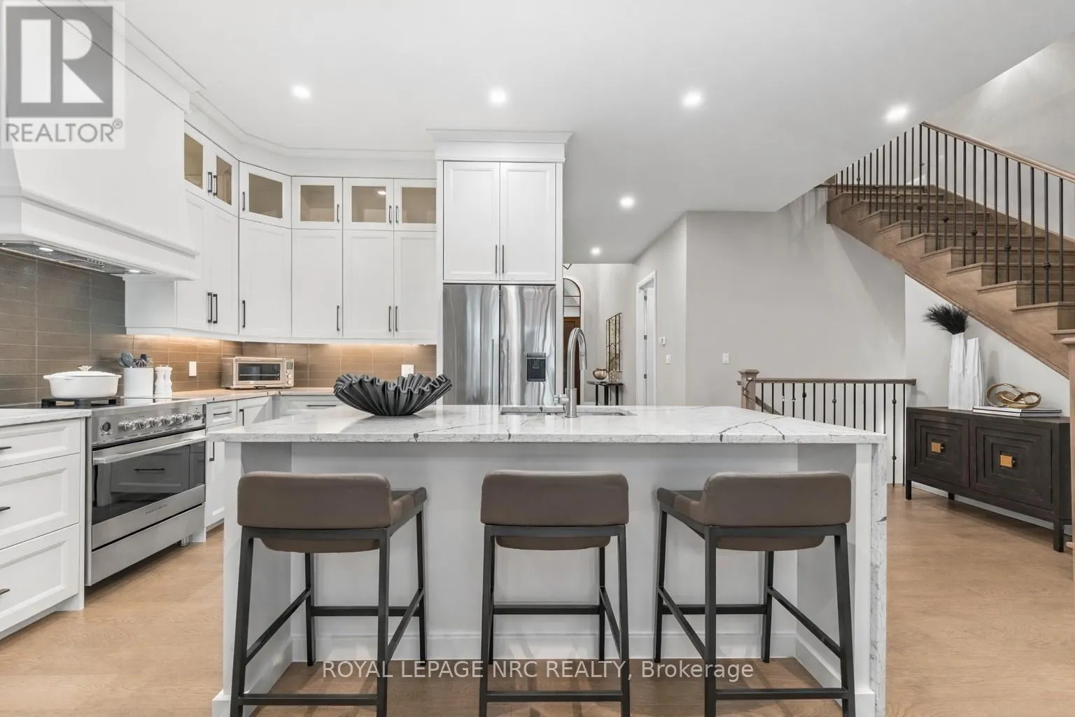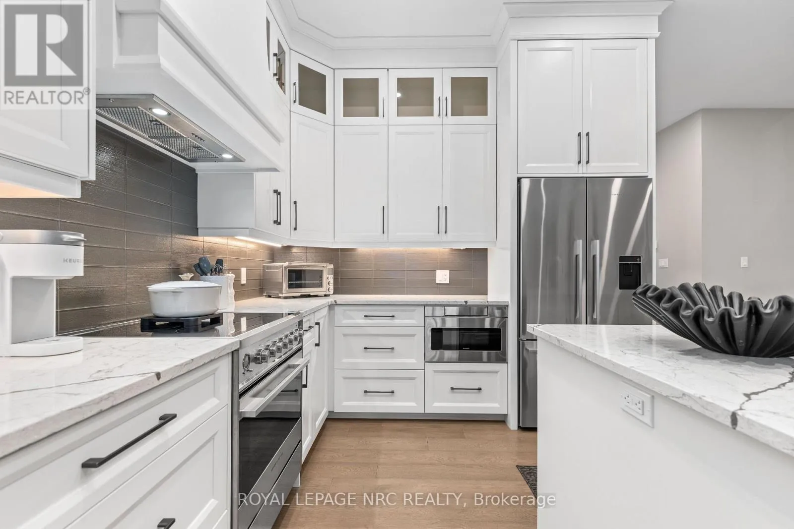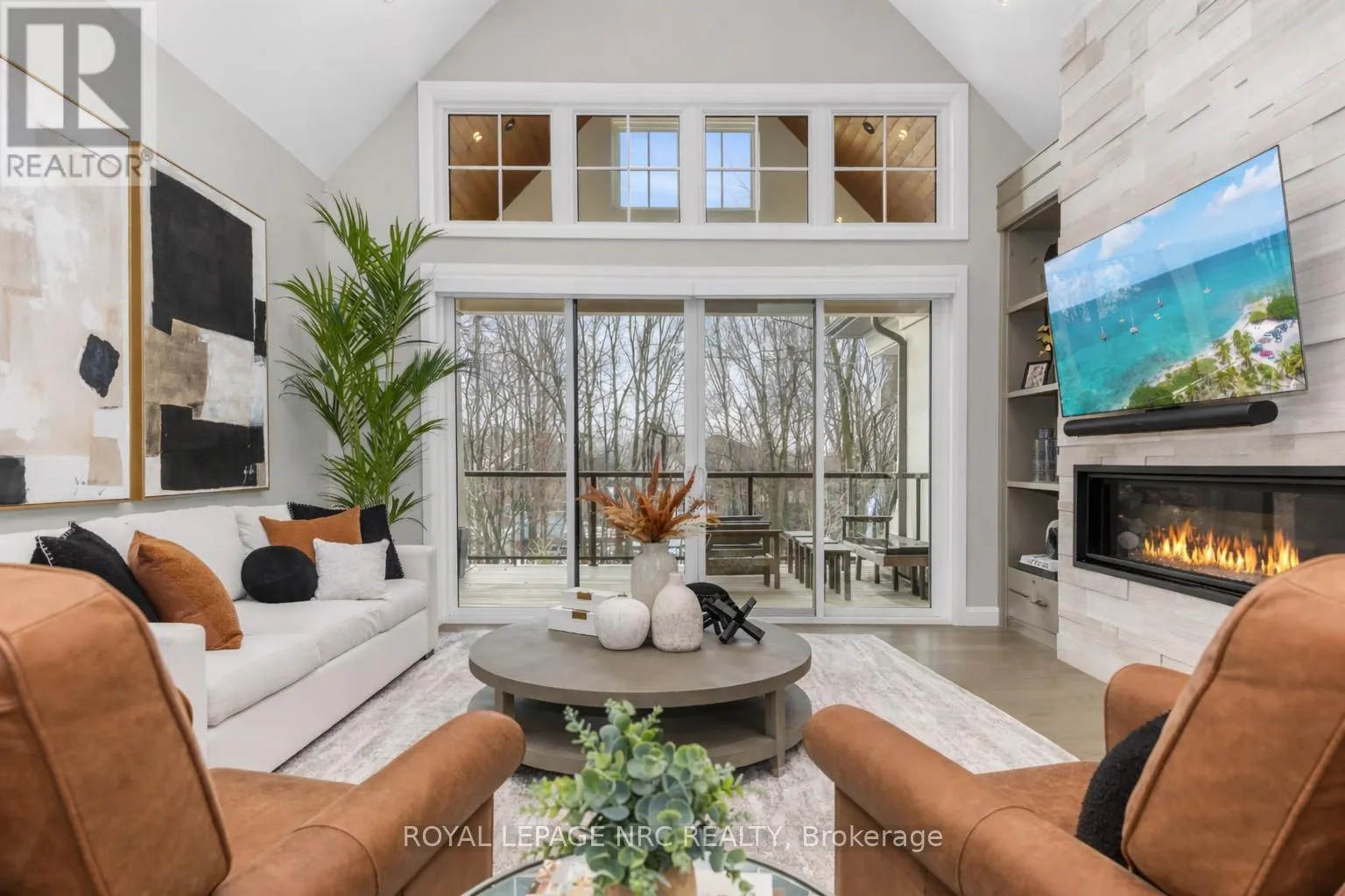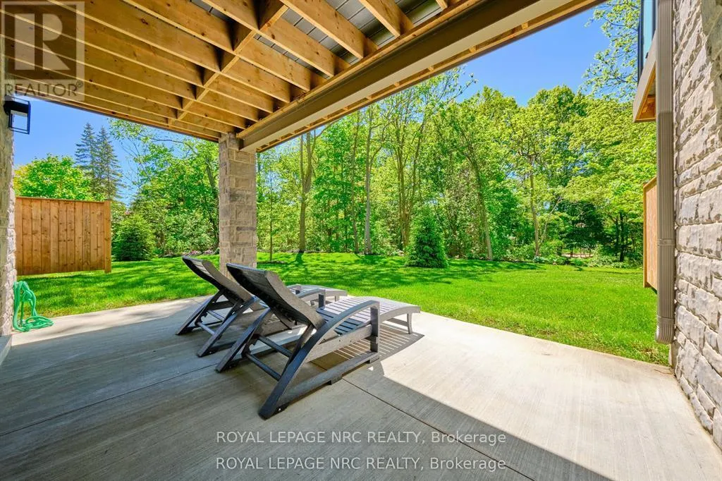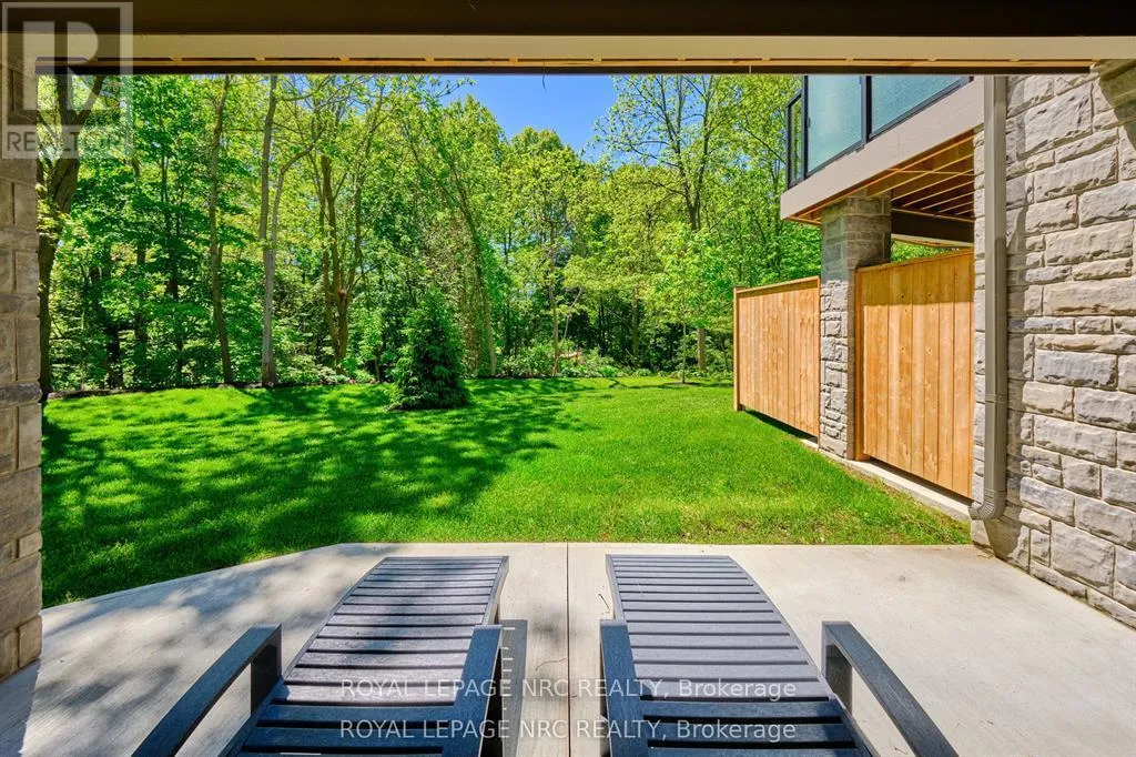 Cross Streets: Canboro. ** Directions: Hwy#20 to Haist to Canboro. Ohh La La! Welcome to Fonthill's most exclusive enclave of luxury townhomes 'Canboro Hills' - where elegance, privacy and tranquility meet. Built by the acclaimed DeHaan Homes, this exceptional Tintern Model offers 3 bedrooms, 3.5 baths and 2,774 (+/-) sq. ft. of refined above-grade living space, plus a fully finished walk-out lower level, all enhanced by upscale finishes throughout. Perfectly positioned at the quiet rear of the community, this residence enjoys serene ravine views and remarkable privacy, beautifully blending luxury living with nature. A striking entrance welcomes you defined by soaring 10-ft ceilings, gleaming porcelain tile, engineered hardwood, designer pot lighting, elegant 7.25" baseboards, 8-ft doors and premium fixtures, creating a warm yet sophisticated atmosphere. The dining room impresses with a dramatic 15-ft vaulted ceiling, while the chef-inspired custom kitchen showcases Fisher & Paykel appliances, induction range, stunning quartz countertops and a generous walk-in pantry. The spectacular Great Room features an impressive 18-ft vaulted ceiling, anchored by a sleek 60" linear gas fireplace with custom built-ins, creating a stunning focal point.The primary suite is a peaceful sanctuary with a spa-inspired 5-piece ensuite. A stylish powder room with full linen closet and a spacious mudroom/laundry with built-in bench complete the main level. Ascend the elegant white oak staircase to the upper loft where guests enjoy a generous bedroom with walk-in closet and private 3-piece ensuite.The finished walk-out lower level expands the living space with a large recreation room with electric fireplace, an additional bedroom with walk-in closet and 3-piece bath. Outdoor living is equally impressive with peaceful ravine views from the covered balcony with composite decking, glass privacy wall and gas line, while the lower concrete patio offers another private outdoor retreat. Luxury, privacy and timeless design refined Fonthill living at its fines (id:27476)