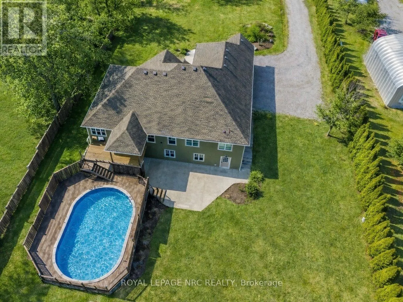 Cross Streets: Pelham Rd/Centre street. ** Directions: Pelham Rd, left on Centre Street. Stunning country property located only 700 meters from the St. Catharines border and only a 12 minute drive to Fonthill, Brock University, Fourth Ave shopping, hospital and QEW. Enjoy the peace and solitude of country living on a 1 acre lot with the convenience of the city only minutes away. This stunning, custom built bungalow is sure to impress with its soaring vaulted ceilings and open concept floor plan. Attention to detail abounds with a custom kitchen with high end appliances and solid surface counter tops. Enjoy a casual meal at the expansive island or entertain in the spacious eating area. Host your family/guests in this bright and airy great room with picturesque views of the backyard and forest beyond. Enjoy your morning coffee under the covered porch just off the dining area and stroll down a few stairs to the 18x33 pool (liner 8 yrs old)surrounded by decking and fully fenced. Included on the main floor is an inviting front entry way, primary suite with walk in closet and ensuite bath and 3 additional bedrooms. A 5 piece bathroom and main floor laundry can also be found here. Take the stairs down and find a huge storage area, additional laundry room and sitting area and a separate, self contained, one bedroom in law suite. Built on a gently slopping lot, the lower level is on ground and has two walk outs and bright windows to allow for loads of natural light. Reclaim the space for personal use or rent it out. This home was built in 2008 and is geothermal. What does this mean? It means the low cost heating, cooling and hydro. Total cost of heating, AC and hydro was only $2382.00 in 2025. Other notables are the over sized 24x22 double garage with openers, generator for power outages, reverse osmosis system for drinking water, 5000 gal cistern with uv filtering system, propane gas fireplace in the living room and gas bbq hookup, power in the pool shed and pool deck, large closets and central vac and great wifi reception. (id:27476)