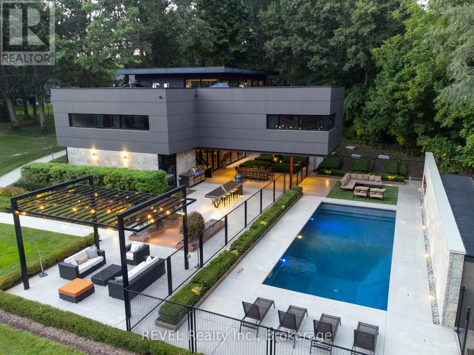 Cross Streets: Haist, Effingham. ** Directions: HWY 20, to Pelham, to Canboro. Architectural majesty and artistic risk define luxury for this modern bungalow estate in the charming township of Fonthill. Emerging from a 2.9 acre property populated by picturesque, Carolinian trees, this modernly unique one story creation with full walkout and floor to ceiling curtain wall windows, fuses a designer eye with an environmentalist's appreciation for natural integration. Structured with steel frame construction, and offering in floor heating via boiler and concrete floors on both main and lower levels, this mansions elite finishes, set against the views of forested privacy, present pleasurable pastoral perspectives and authentic tranquility, inside and out. Features include 16' ceilings in main living area; specialty imported glass porcelain tiles; engineered hardwood; fully automated light and sound systems by Crestron Products; surround sound theater area with power drop down screen; wine and artisanal meat cellar; enormous upper and lower designer kitchens with quartz stone countertops; three plus one spacious bedrooms; main floor glass walled office; master ensuite with oversized shower; and customized built ins throughout for exceptional storage capacity. The sauntering transition to resort worthy outdoor amenities is just as dazzling, with walkouts that seamlessly flow into a heated saltwater pool area with feature stone wall, outdoor gas fireplace, cedar clad washroom and change rooms. For the luxury car enthusiast, and with 400 amp electrical service available, enjoy the recently built 2600sq.ft showcase accessory garage(detached) that complements an oversized four car garage attached to the home. With approximately 5400 sq. ft of fully finished and fully serviced living space conceptualized to exploit every possible vantage point of this incredible landscape, this estate sets a new standard as the epitome of luxury listings. (id:27476)