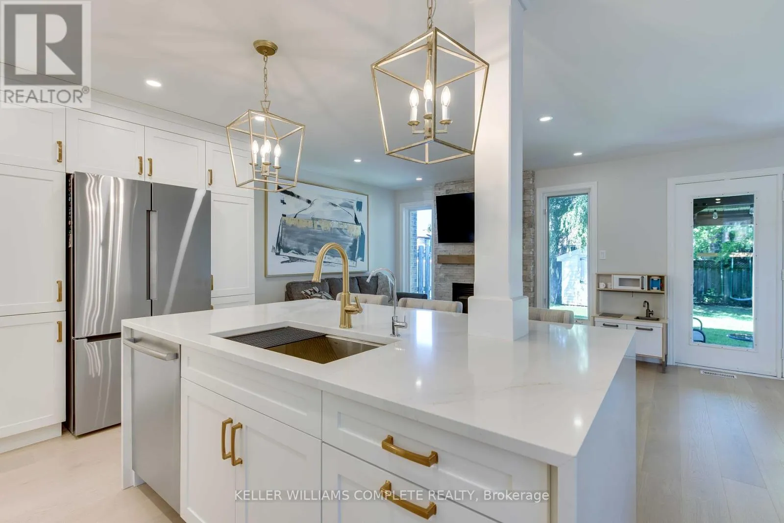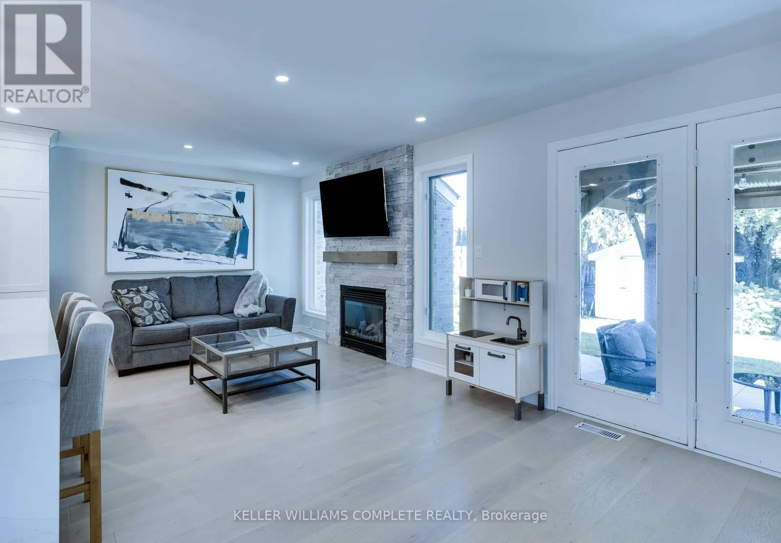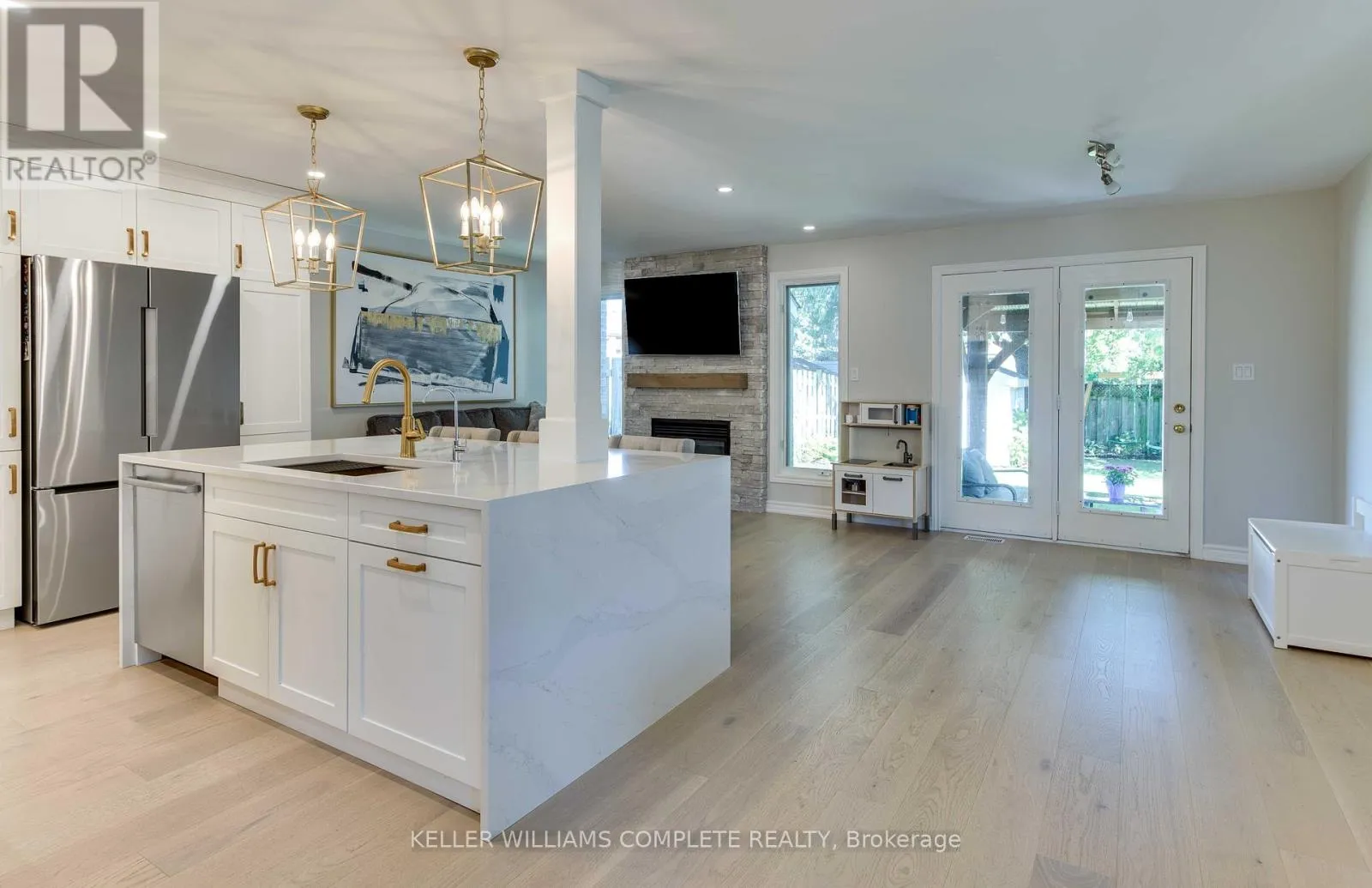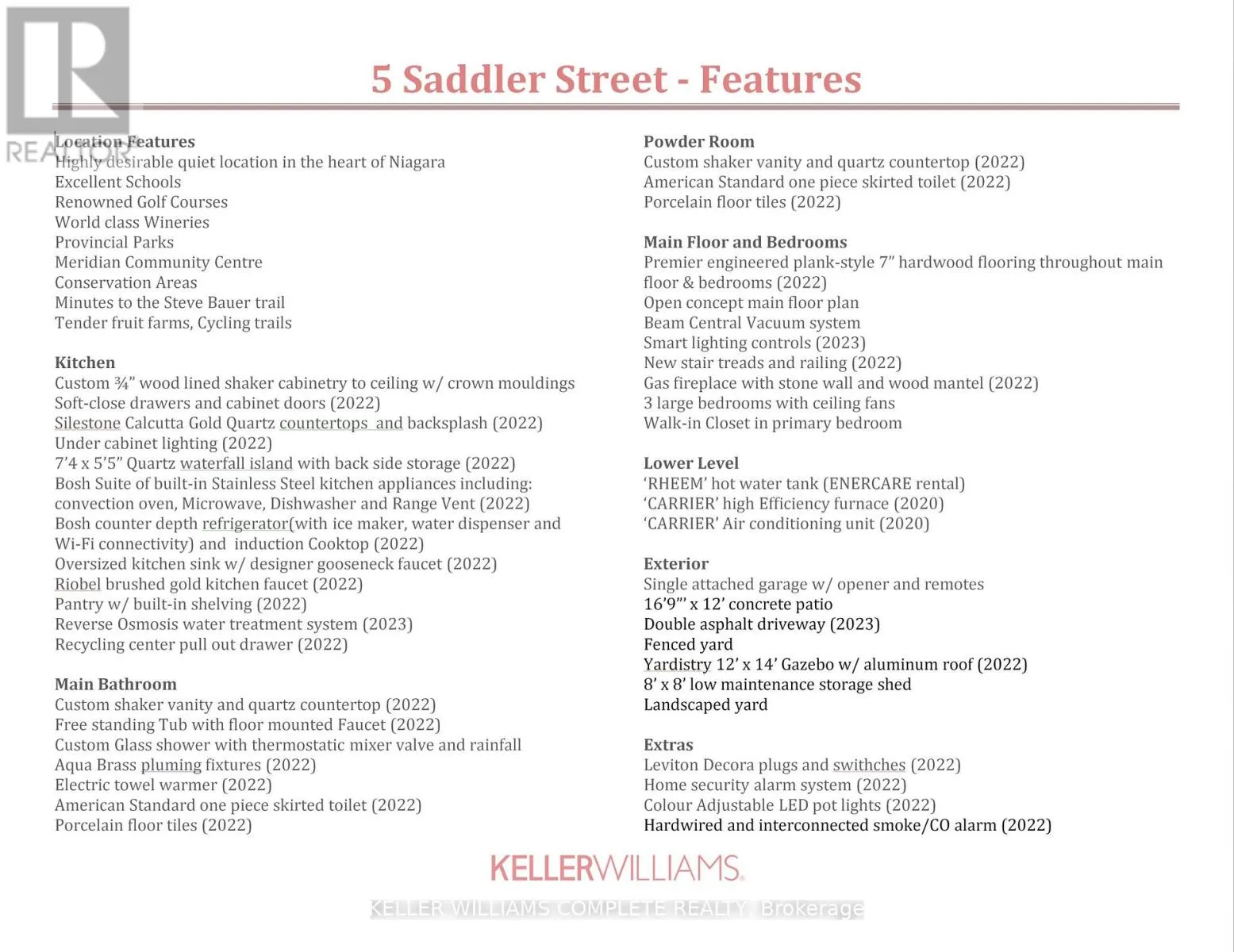 Cross Streets: Hwy 20 and Pelham St. ** Directions: Pelham St. to Homestead Blvd. to Tanner Dr. to Saddler St. Situated in the lovely town of Fonthill and tucked into a quiet pocket of established homes where pride of ownership is evident, this beautifully, thoughtfully renovated (2022) home offers the perfect blend of modern style and everyday comfort. The bright, open-concept layout is warm and inviting, featuring wide plank engineered hardwood floors, quartz countertops, smart lighting controls, security system and a cozy gas fireplace with a striking stone mantel-ideal for relaxing or entertaining. The gourmet kitchen is a true standout, showcasing a high-end Silestone quartz double waterfall island, premium suite of Bosch stainless steel built-in appliances including induction stove, along with a designer Riobel faucet, reverse osmosis, perfect for both everyday living and entertaining. Upstairs, you'll find three generously sized bedrooms and a spa-inspired bathroom with high-end finishes, a soaker tub, towel warmer, and a glass-enclosed shower and Aqua brass fixtures. Step outside to a beautifully landscaped, private, fully fenced backyard featuring a new gazebo (2023) and large patio, a mature birch, and a graceful weeping willow tree - creating a private, serene setting perfect for outdoor living and entertaining. Parking for 3 vehicles with an attached garage and a double driveway adds everyday convenience. Offering exceptional value in one of Niagara's most desirable areas, this is a wonderful opportunity to enjoy a beautifully updated home in an established neighbourhood. A true gem you won't want to miss and will want to add to your viewing schedule! (id:27476)