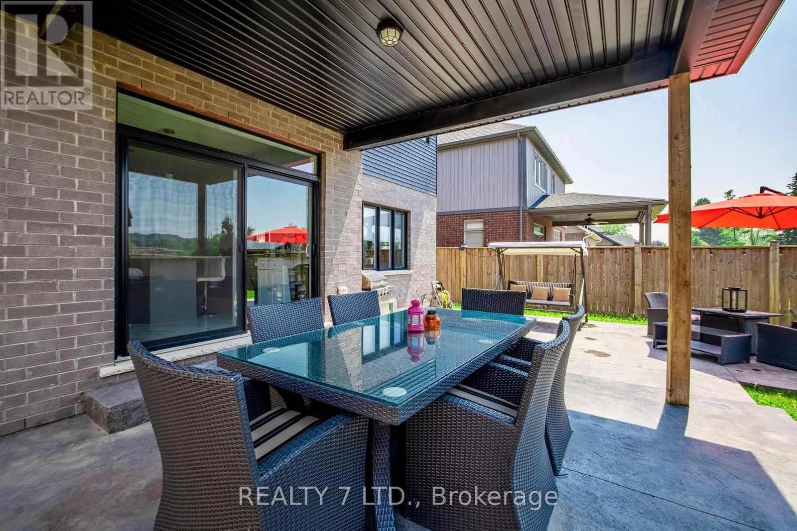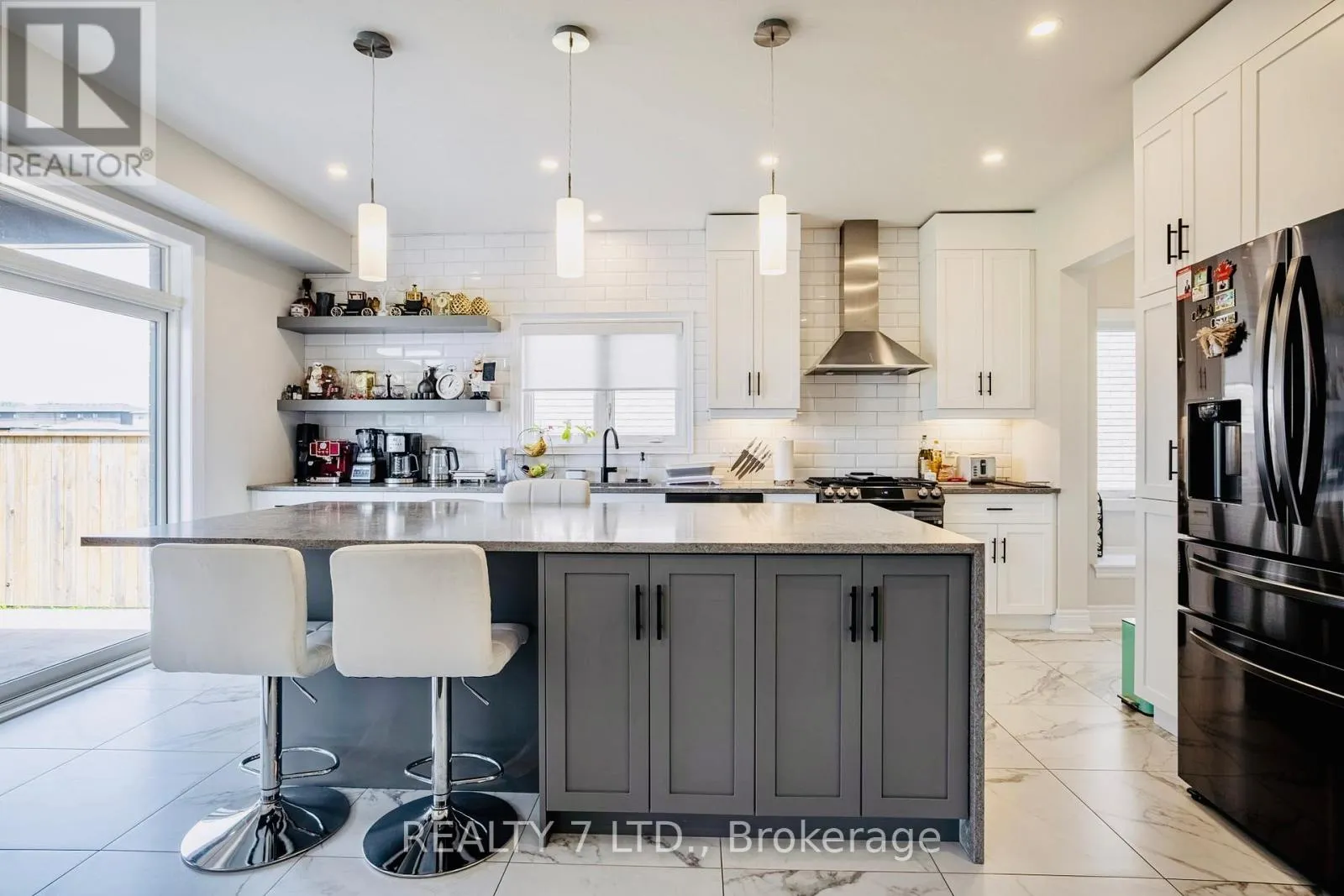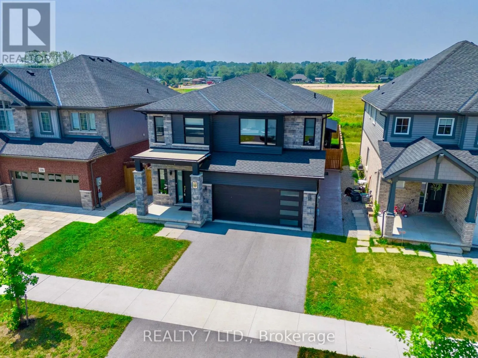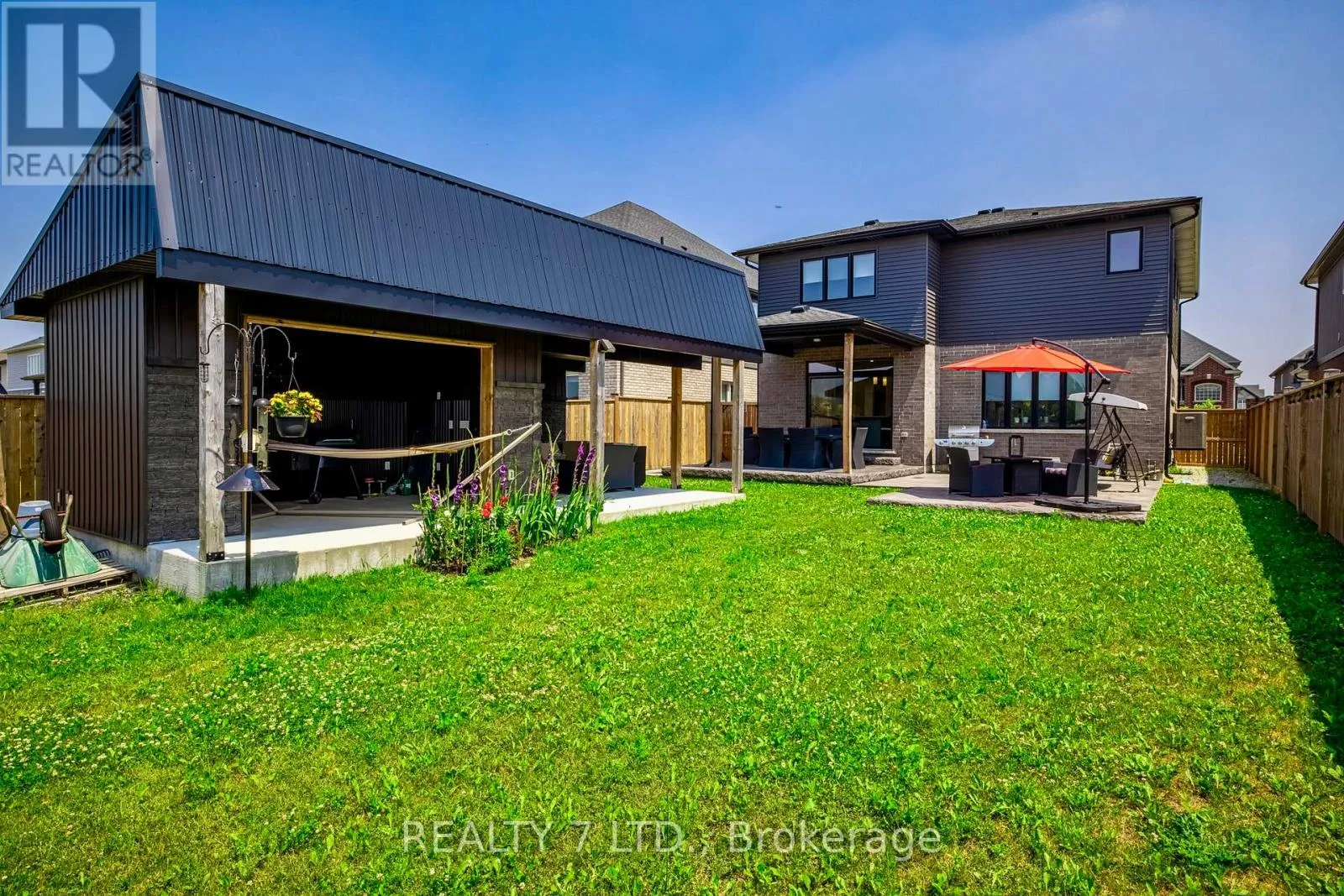 Moody Street No rear neighbours! A stunning, 2-storey Mountainview-built home offering 3 spacious bedrooms and 2.5 luxurious bathrooms. Designed with comfort and style in mind, this home is filled with upscale features including neutral tones, elegant flooring, modern light fixtures, pot lights, and built-in TVs throughout.The heart of the home is the gourmet kitchen, showcasing high-end stainless steel appliances, subway tile backsplash, sleek white cabinetry with black hardware, granite countertops, and a massive waterfall island with a breakfast bar and abundant storage. The open-concept layout seamlessly connects the kitchen to a formal dining space and a bright, spacious living room complete with custom blinds and a modern fireplace.The main floor also includes a stylish 2-piece powder room and a mudroom with convenient inside access to the garage. Upstairs, retreat to the luxurious primary suite featuring a large walk-in closet and a spa-inspired 5-piece ensuite. Two additional well-sized bedrooms, another 5-piece bathroom, upstairs laundry, and a generous family room offer ample space for the entire family. Step outside to an entertainers dream: a large backyard with a concrete patio and a freestanding outdoor cabana. Enjoy a modern outdoor lounge area with built-in pot lights and two wall-mounted TVs, perfect for hosting friends and family year-round. (id:27476)