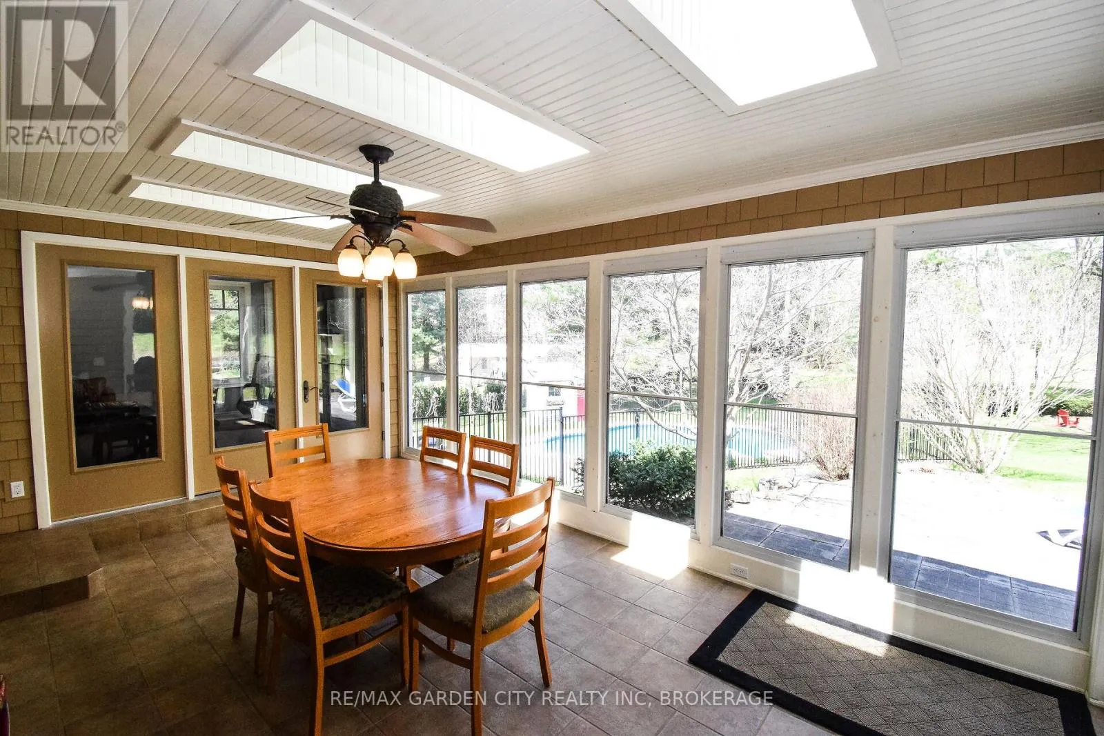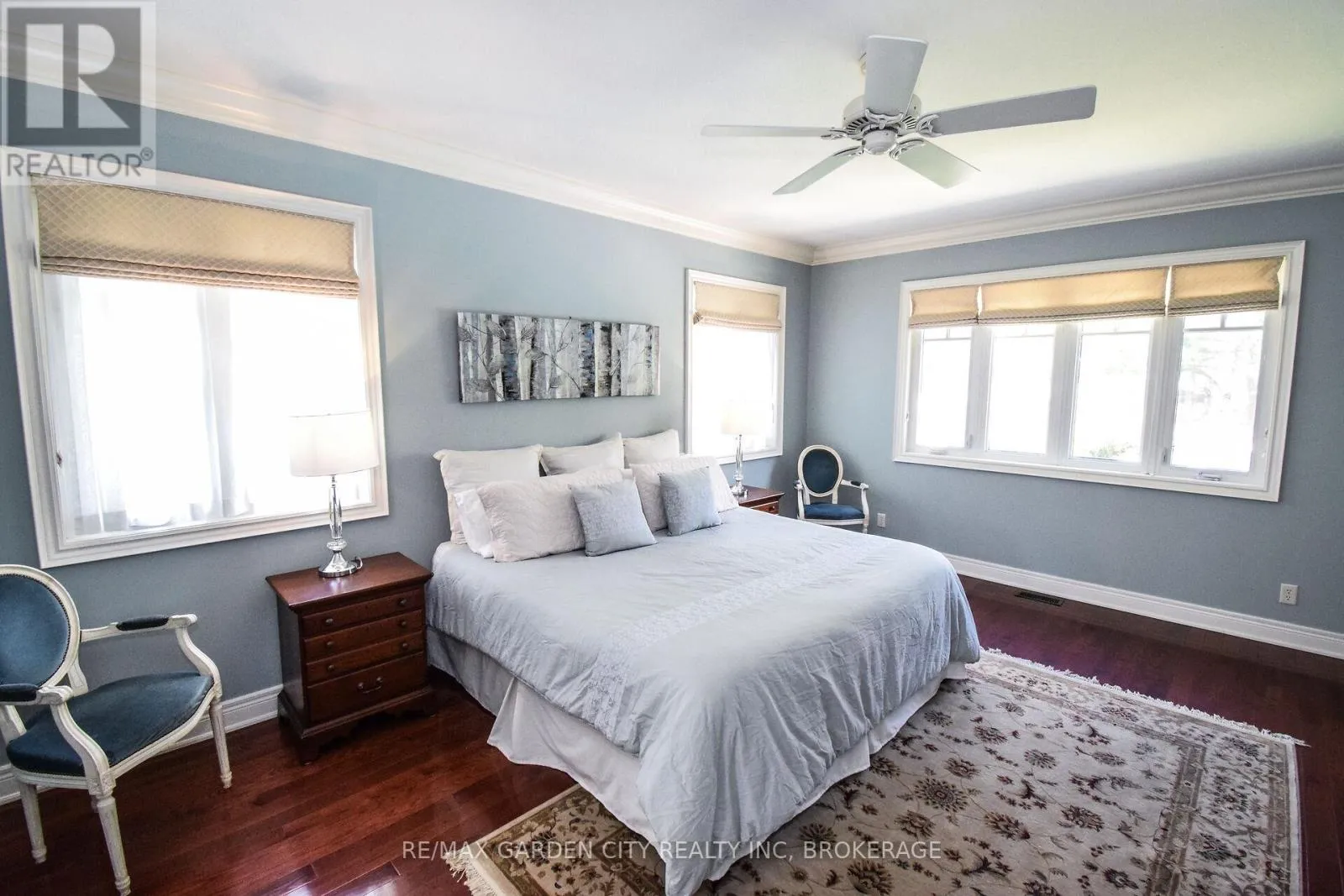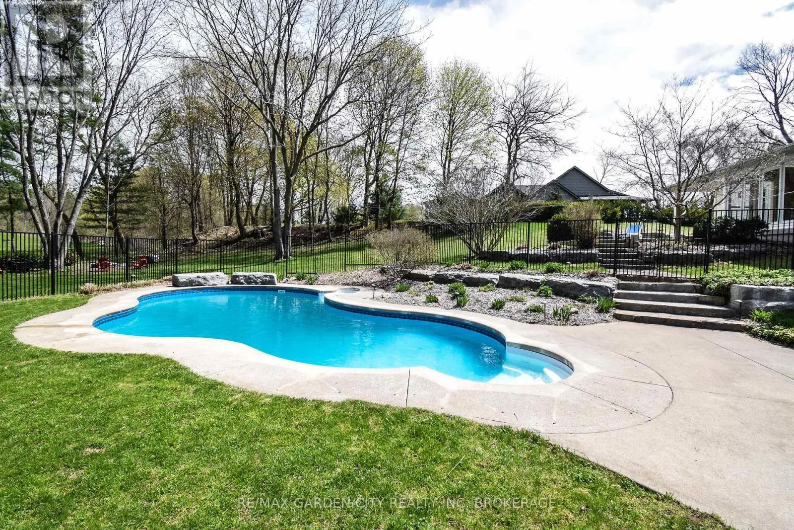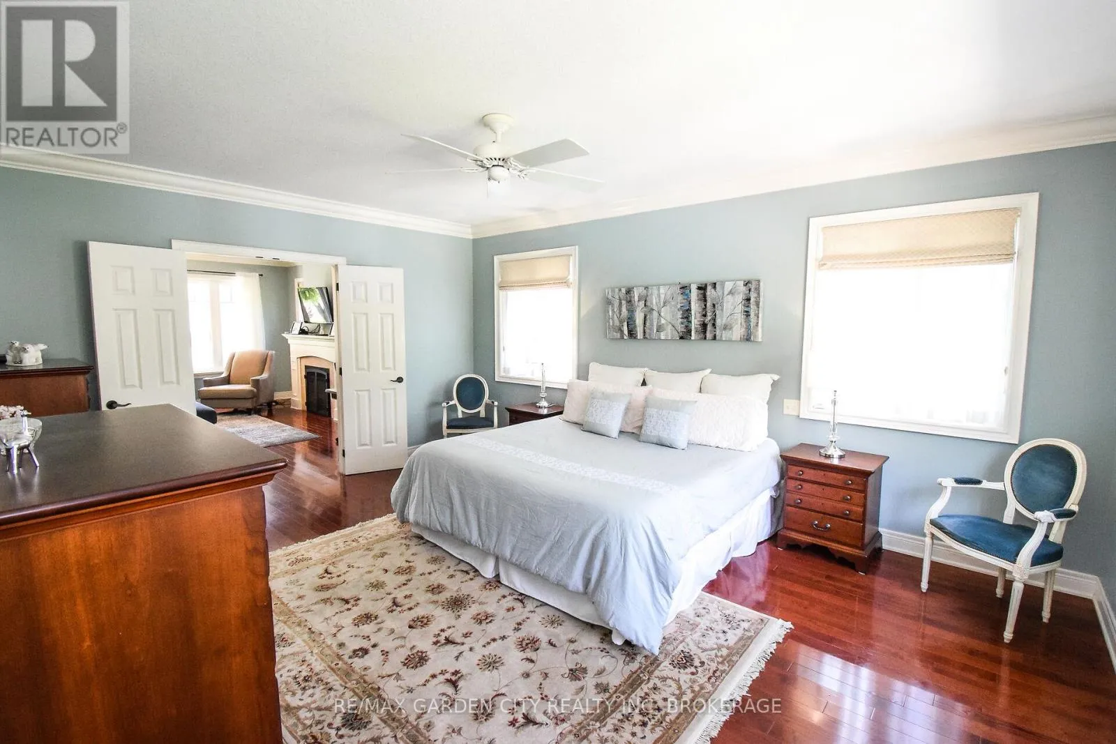 Cross Streets: Effingham St. ** Directions: Hwy 20 West to Effingham St to Canboro Rd. Welcome to this custom-built bungaloft set on a picturesque 1.15-acre property in Ridgeville Pelham. Backing directly onto a vineyard and surrounded by mature trees, this home offers exceptional privacy and sweeping views of Niagara's rolling countryside. With over 4800 sq ft of living space, this detached home features 5 bedrooms and 5 bathrooms, including the rare advantage of 4 bedrooms with their own private ensuites-ideal for families, guests, or multi-generational living. Inside, 9-foot ceilings, crown molding, and hardwood flooring throughout the main and second levels enhance the sense of space and craftsmanship. The versatile bungaloft layout offers a main-floor primary suite. The kitchen is a chef's delight, equipped with built-in appliances and provides convenient access to the front porch. A walk-in pantry off the mudroom adds everyday functionality and storage. All bathrooms are finished with glass shower enclosures, while the primary ensuite features a spa-inspired built-in Japanese soaker tub surrounded by tile for a clean, refined finish. A bright three-season room at the rear of the home offers full views of the pool and rolling hills beyond an ideal space to relax and enjoy the landscape in comfort. The home is further enhanced by three fireplaces, including one wood-burning and two gas fireplaces, creating warm and inviting living spaces throughout. The fully finished walk-out lower level includes two bedrooms and opens directly to a private backyard oasis featuring a heated in-ground pool. Beyond the pool, the expansive yard includes a large fire pit area, perfect for gathering under the stars and enjoying. Car enthusiasts and hobbyists will appreciate the oversized attached two-car garage along with a detached, heated two-car garage-perfect for a workshop, studio, or personal retreat. Set in a sought-after rural setting, this property offers a rare combination of space, privacy, and lifestyle just minutes from town amenities. (id:27476)