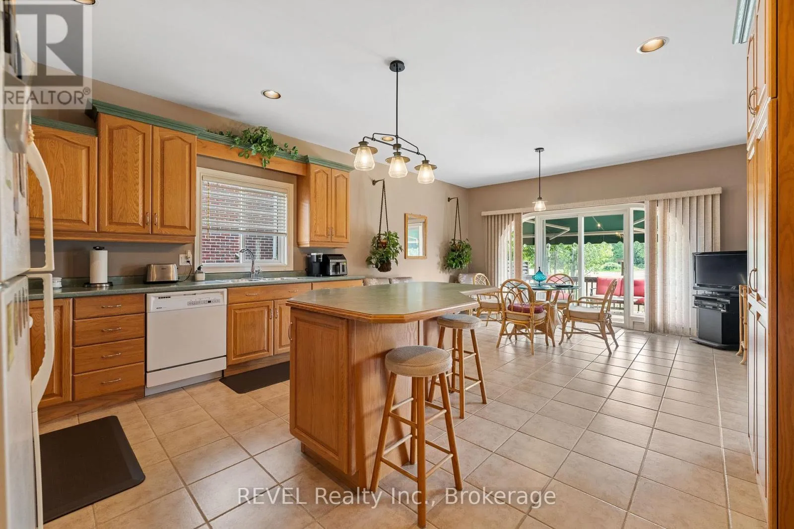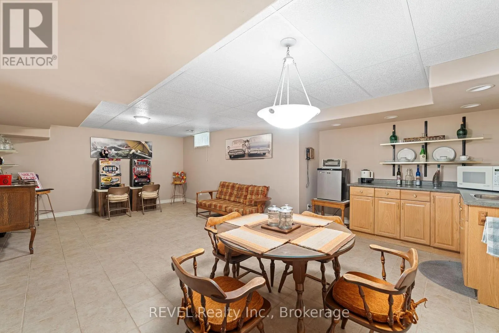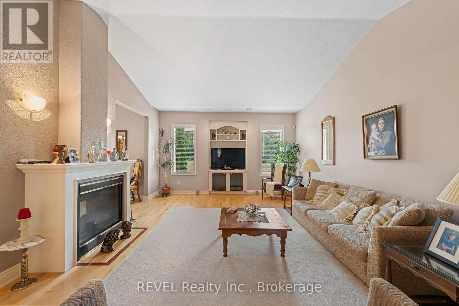 Cross Streets: John St./Pancake Lane & Pelham St. ** Directions: Pelham St. to John St. Welcome to this beautifully maintained, 2352 sqft one-owner brick bungalow in desirable Fonthill neighbourhood, built by Serafino Homes in 1998. Offering timeless curb appeal and thoughtful design, this home features 9-ft ceilings with cathedral ceilings in the main living and dining areas, creating a bright and airy feel. The living room and formal dining room share a cozy two-way gas fireplace, while the open-concept kitchen and dinette lead to a rear wood deck perfect for entertaining. The main floor boasts a spacious primary bedroom with walk-in closet, 4-pc ensuite, and its own gas fireplace. Two additional bedrooms, a 4-pc main bath, powder room, and main-floor laundry add convenience, while hardwood flooring flows throughout the level. The fully finished basement extends the living space with a spacious rec room, cozy family room, kitchenette, additional bedroom, office, 3-pc bath, and utility room. Practical updates include a roof (2015), furnace and A/C (2021), and a rental water heater (2018). Additional features include central vacuum, concrete driveway, and a 2-car garage. Set in a quiet neighbourhood close to all amenities, this home blends comfort, functionality, and location ready for its next chapter. (id:27476)