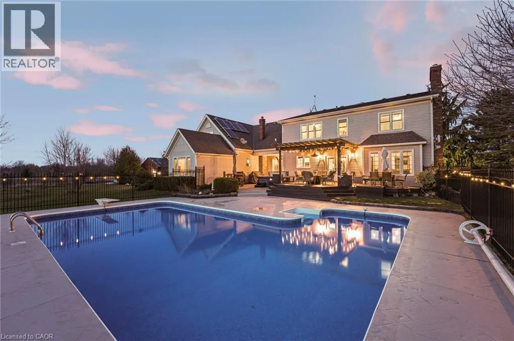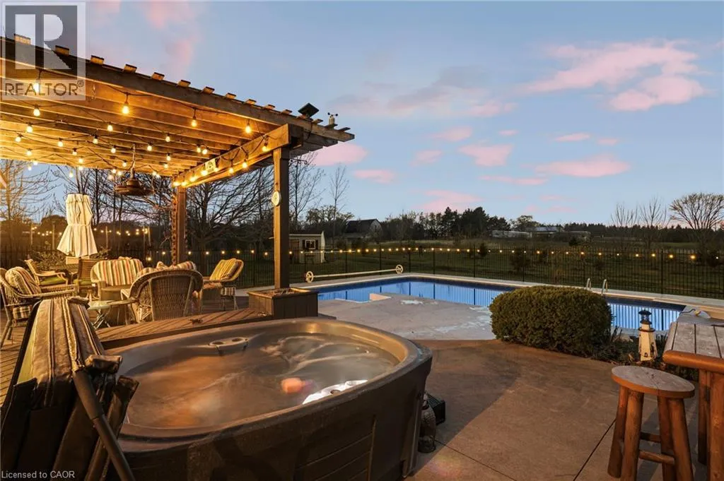 Sixteen Road to Centre Street A MULTIGENERATIONAL DREAM! Situated on 10 acres in the quiet countryside of Ridgeville, 2330 Centre Street presents a rare two family set up that has the space and flexibility to become a true family legacy for generations to come. The beautiful two-storey features 5 bedrooms, 5 bathrooms, and over 4,000 square feet of ABOVE GRADE living with a rare 2-bedroom, 1.5 bathroom main level in-law suite complete with its own laundry, separate entrance, full basement, private patio, and independent hydro and gas meters - enabling both connection and complete independence under one roof. The main home is elegant and spacious, with quartz countertops throughout, gorgeous wine barrel hardwood flooring on the main level, and a finished basement with potential to add more bedrooms. Outdoors, the property continues to deliver. Mornings start with coffee overlooking your own farmland, afternoons by the heated in-ground pool, and evenings unwinding in the hot tub under open skies followed by conversations around the fire. Approx. 7 acres of farmland significantly reduces property taxes and a transferable solar contract generates approx. $400/month. A double car garage plus a detached 22â x 24â garage with a metal roof provides loads of parking for vehicles and equipment. Hundreds of planted trees add ample privacy. Located a quick drive to Fonthill, Welland, Vineland, and St. Catharines, this is a property where lifestyle and long-term value meet. (id:27476)