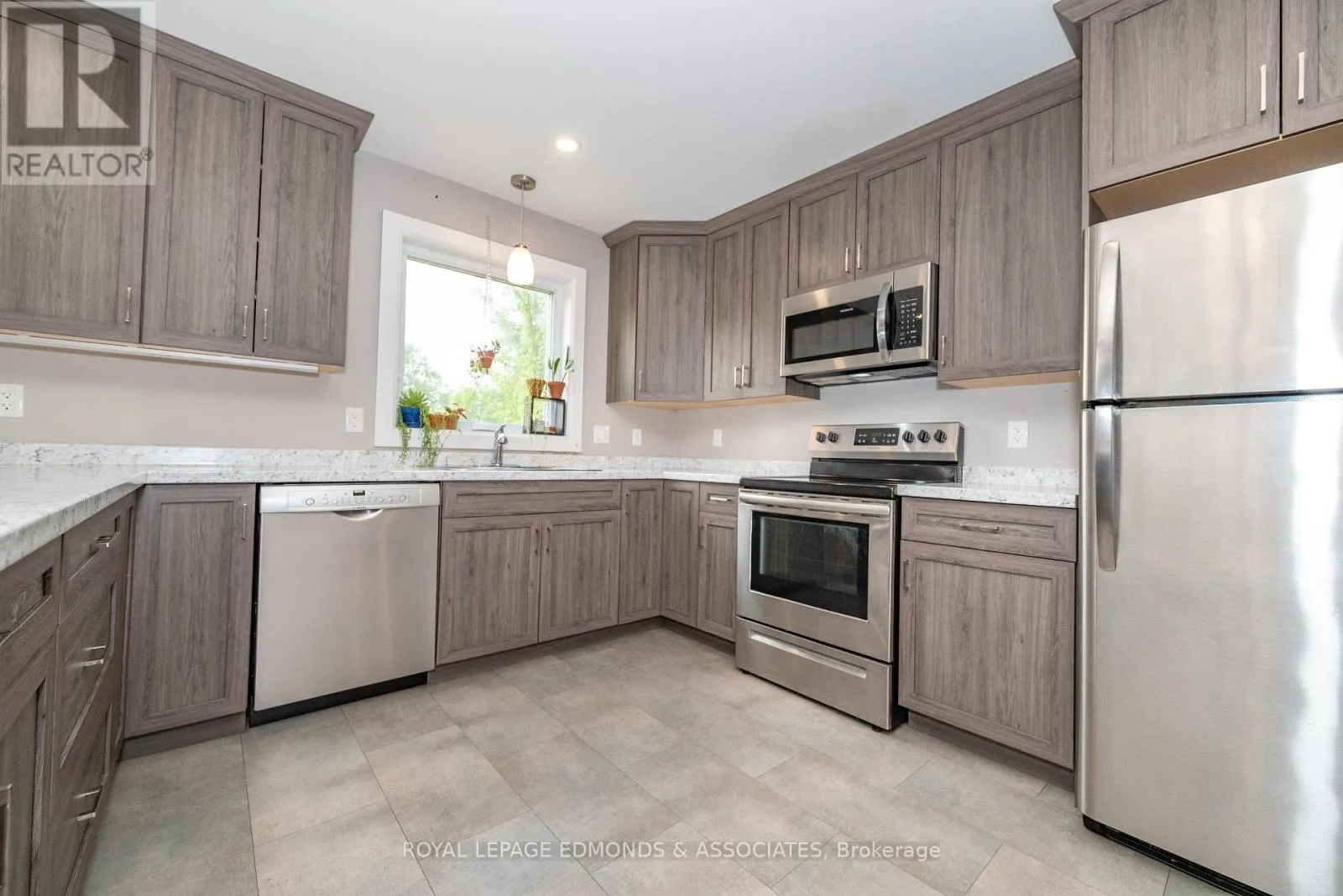Cross Streets: Dominion street and McGee Street. ** Directions: McGee Street to Dominion Street. Hidden Gem on Quiet Dead-End Street. Dont let the front view fool you. This home is much larger than it appears! Tucked away on a peaceful dead-end street with no neighbours on one side, this property offers privacy, tranquility, and a beautifully treed-in backyard deck perfect for relaxing or entertaining. Step inside to a spacious entryway featuring a closet and a clear view of both the open-concept main floor and the bright, inviting basement rec room. The main level offers a generous living area and a well-equipped kitchen with an abundance of cabinetry, counter space, and a pantry ideal for everyday cooking or hosting guests. Down the hall, youll find two comfortable bedrooms, a full bathroom, and convenient access to your private back deck an excellent spot for summer BBQs or morning coffee. The lower level is equally impressive, with high ceilings and ample natural light throughout. It features a large rec room, two additional bedrooms, a second full bathroom, and a dedicated laundry room, offering excellent space for a growing family or visiting guests. This home is the perfect blend of comfort, space, and privacy. Whether you're upsizing, downsizing, or buying your first home, this one checks all the boxes. 24-hour irrevocable on all written signed offers. (id:27476)
