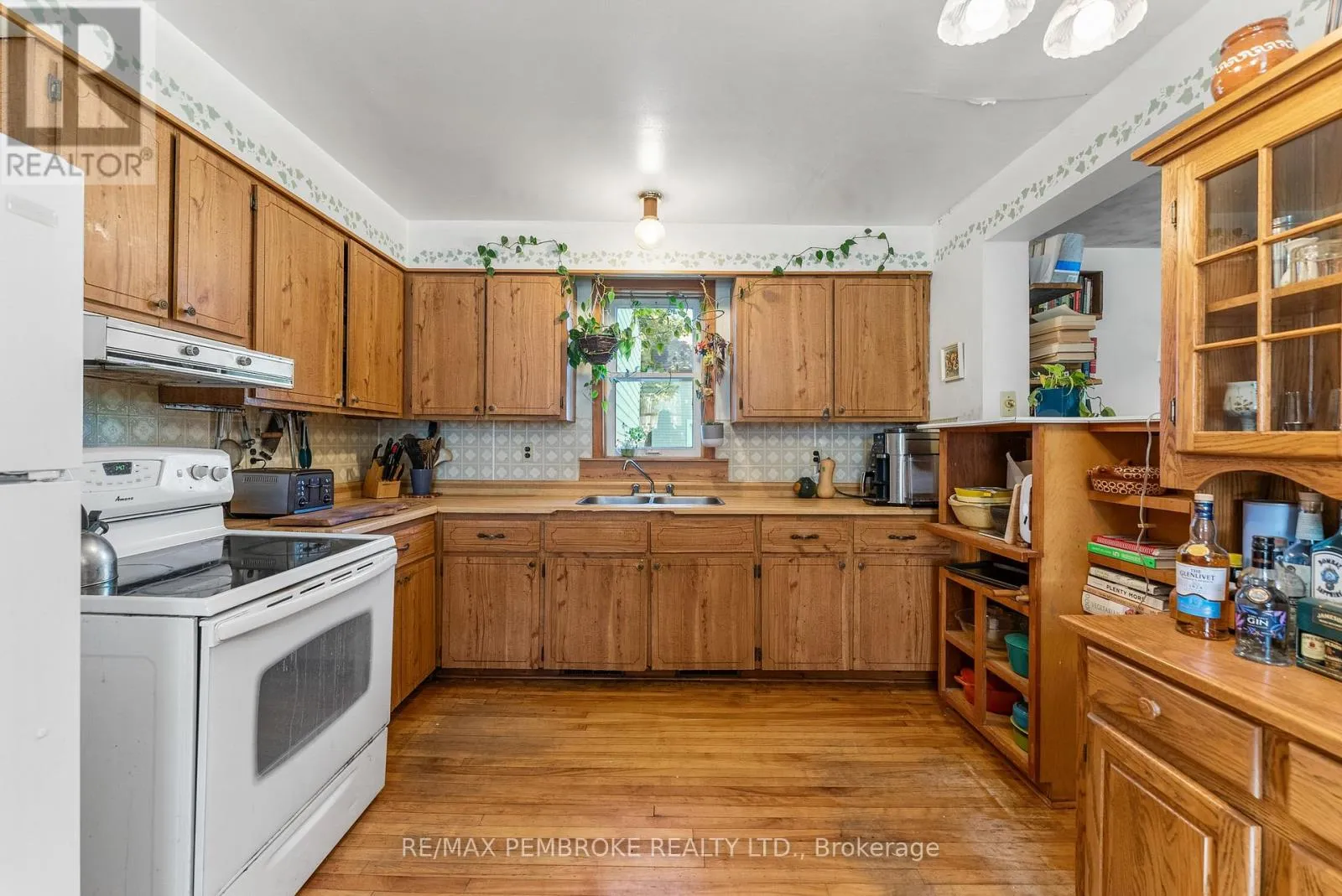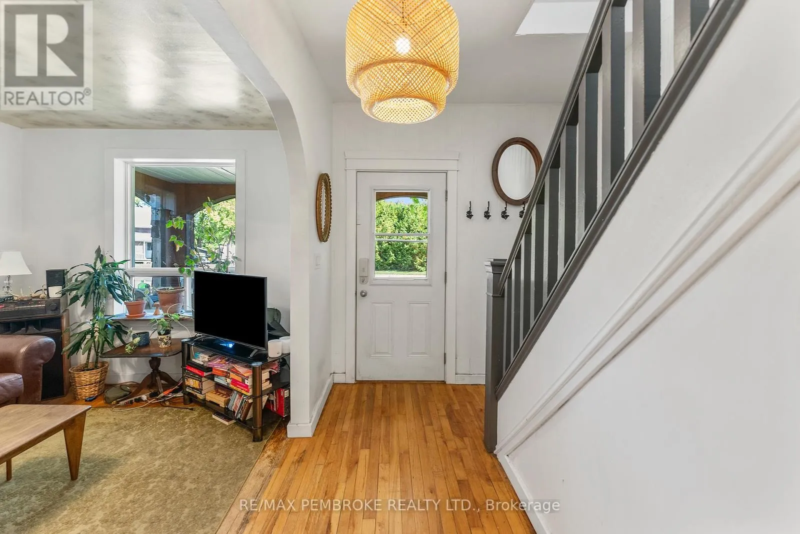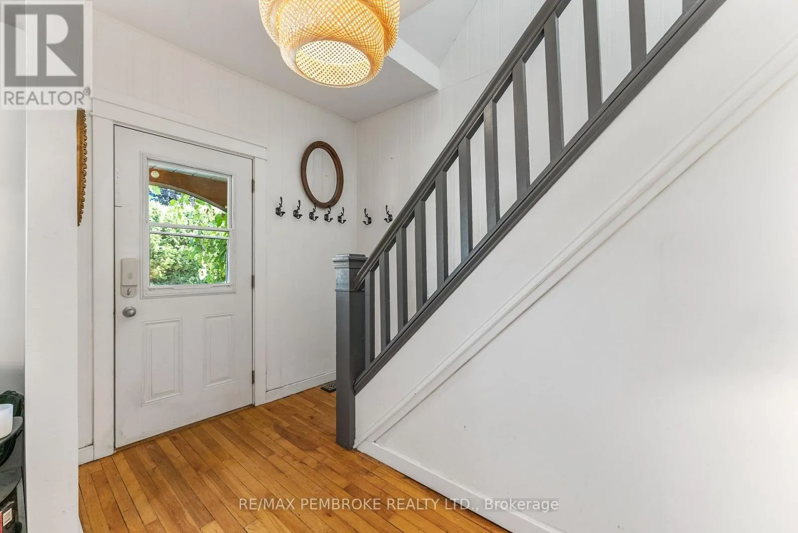 Cross Streets: Boundary and Eganville. ** Directions: From Boundary Rd turn onto Eganville Rd. Welcome to this charming 3-bedroom, 2-bathroom home in the heart of Pembroke! Featuring an attached garage and a private living room that opens onto a covered porch, this property blends comfort and convenience.The main level showcases original hardwood floors and a large eat-in kitchen, perfect for family meals. An additional living space off the kitchen provides extra room to relax and includes a second bathroom for added functionality. Upstairs, you'll find three bedrooms, including a spacious primary bedroom with plenty of natural light. Whether you're a first-time home buyer or an investor, this home is full of potential and ideally located close to all amenities. Don't miss out on this wonderful opportunity! 24 hour irrevocable on all offers. (id:27476)