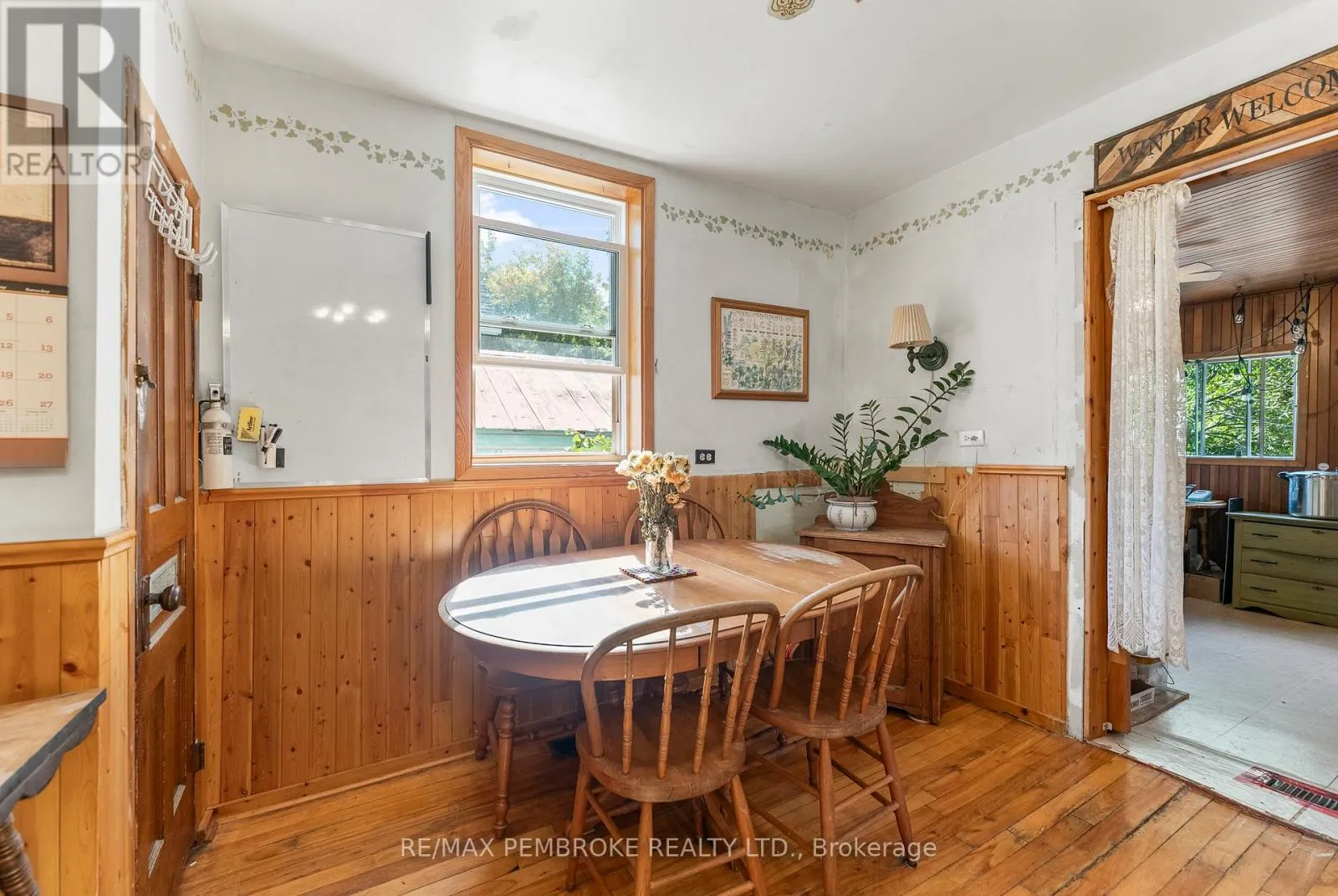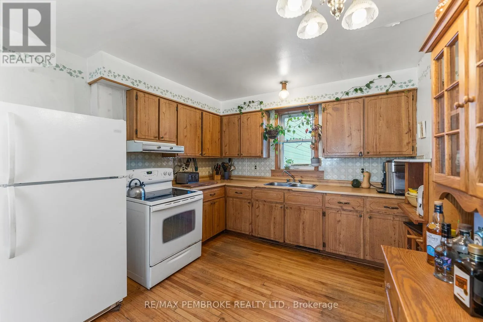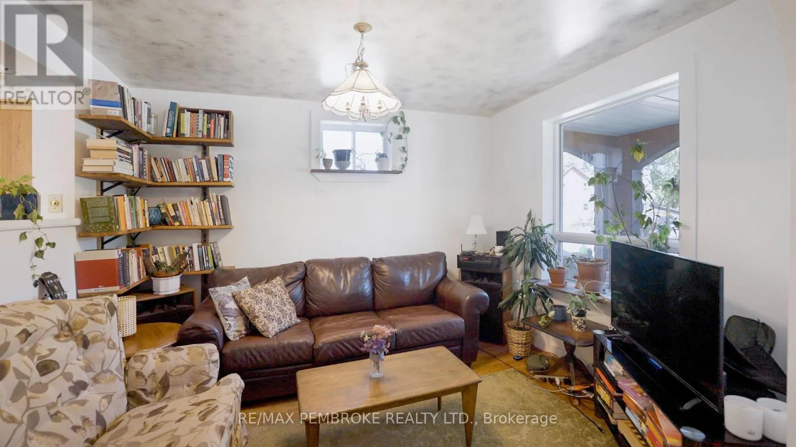 Cross Streets: Boundary and Eganville. ** Directions: From Boundary Rd turn onto Eganville Rd. Welcome to this charming 3-bedroom, 2-bathroom home in the heart of Pembroke! Featuring an attached garage and a private living room that opens onto a covered porch, this property blends comfort and convenience.The main level showcases original hardwood floors and a large eat-in kitchen, perfect for family meals. An additional living space off the kitchen provides extra room to relax and includes a second bathroom for added functionality. Upstairs, you'll find three bedrooms, including a spacious primary bedroom with plenty of natural light. Whether you're a first-time home buyer or an investor, this home is full of potential and ideally located close to all amenities. Don't miss out on this wonderful opportunity! 24 hour irrevocable on all offers. (id:27476)