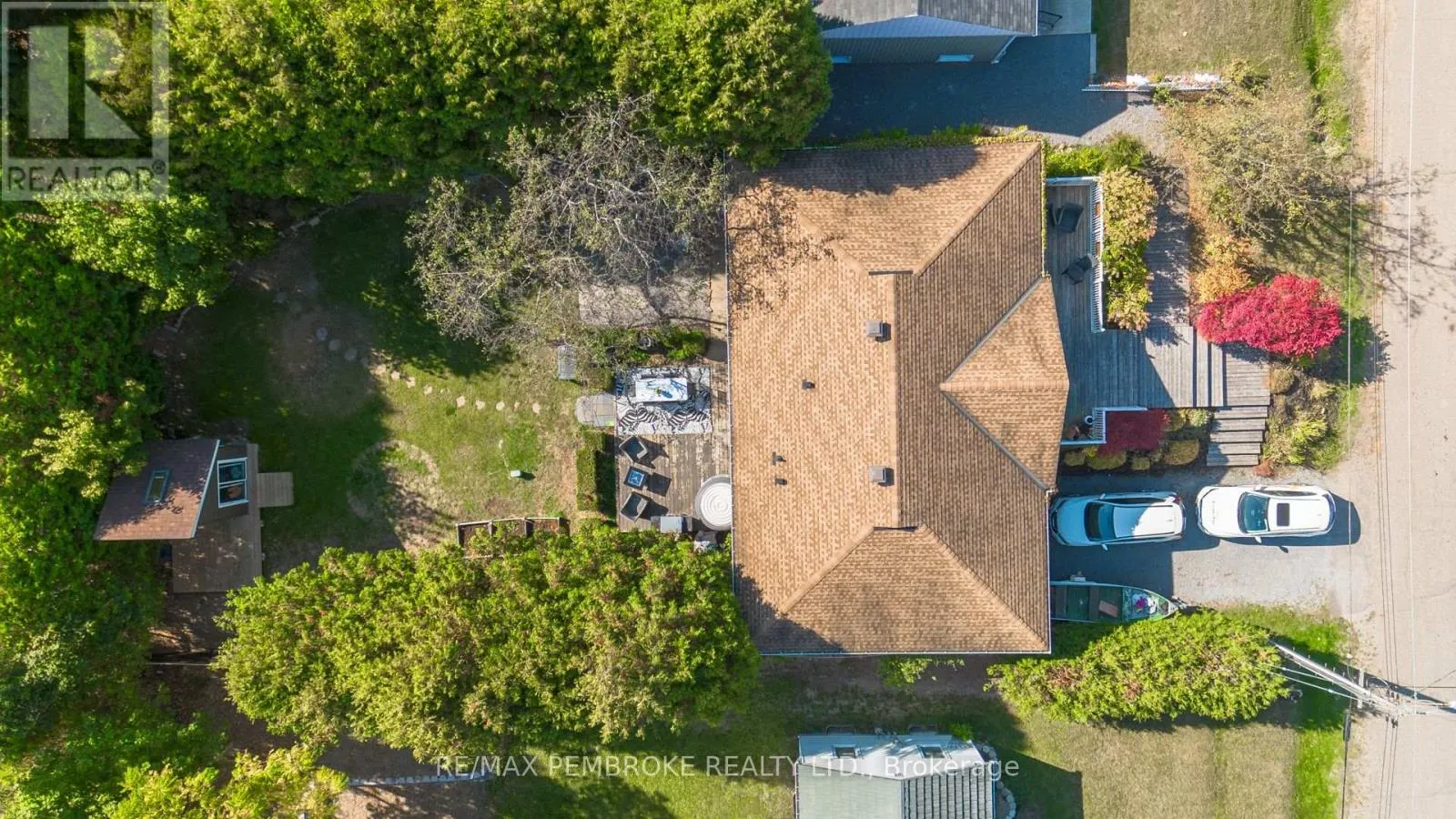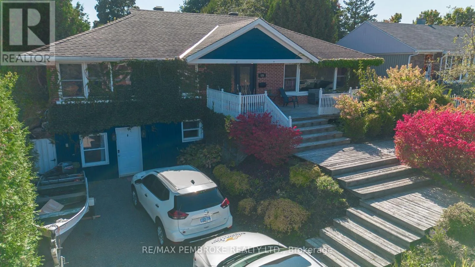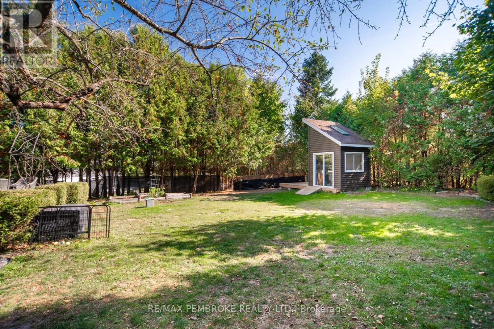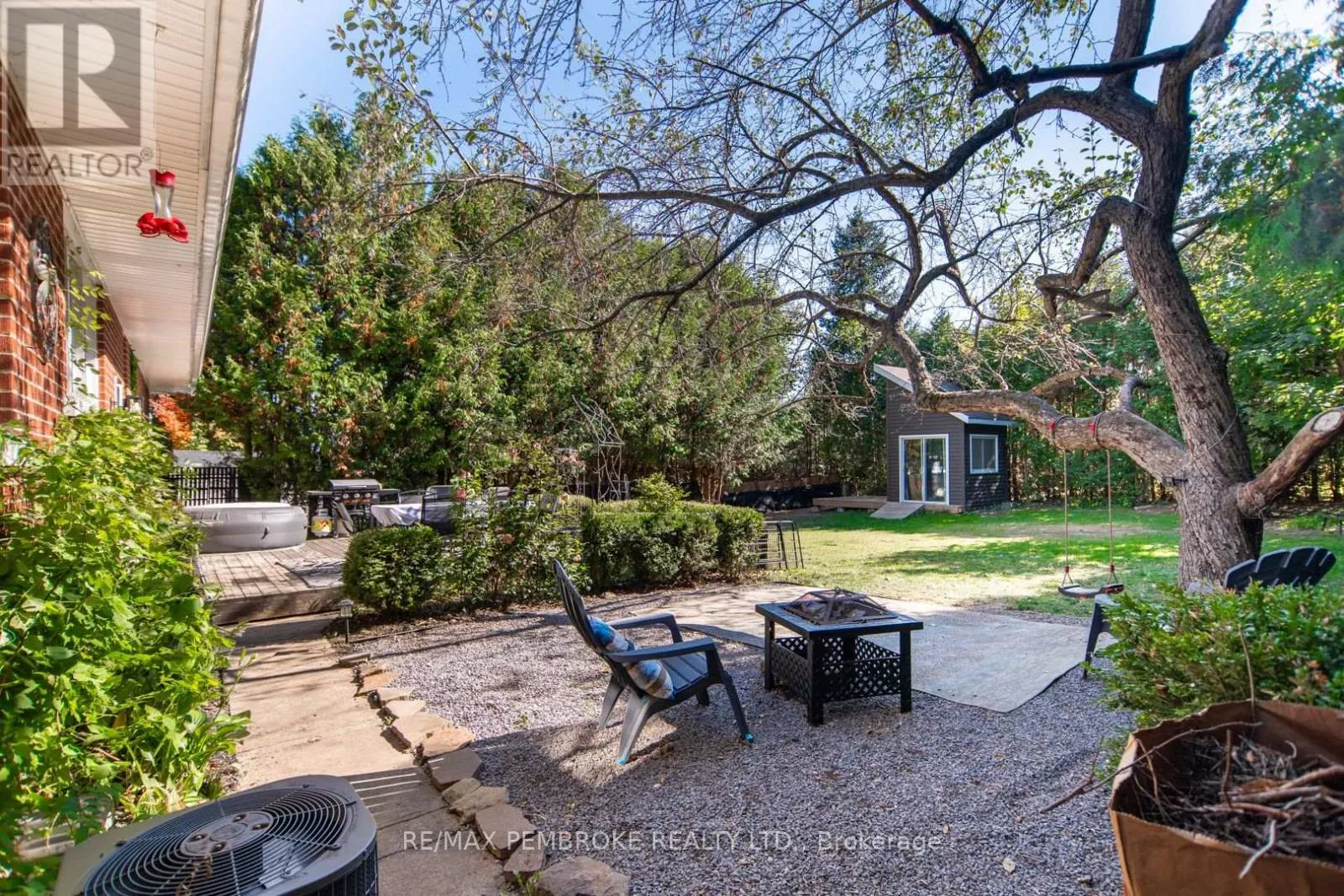 Cross Streets: Esther St/Broadview Dr. ** Directions: Esther St-between Broadview Dr and Clemow Ave. Perched high on a spacious east-end Pembroke lot, this home offers incredible privacy and distant views of the Ottawa River. The large backyard features a generous deck, perfect for relaxing or entertaining, along with a substantial shed that could easily be converted into a home office or studio. Inside, the main floor showcases beautiful hardwood flooring and an abundance of large windows that flood the space with natural light while capturing scenic views. The fully finished lower level extends the living space with a cozy family room, den, and 4-piece bath, plus a workshop/storage area with convenient direct access to the outdoors. Recent updates include a new furnace in 2025, adding comfort and peace of mind. A unique property combining privacy, functionality, and charm ready for its next chapter. (id:27476)