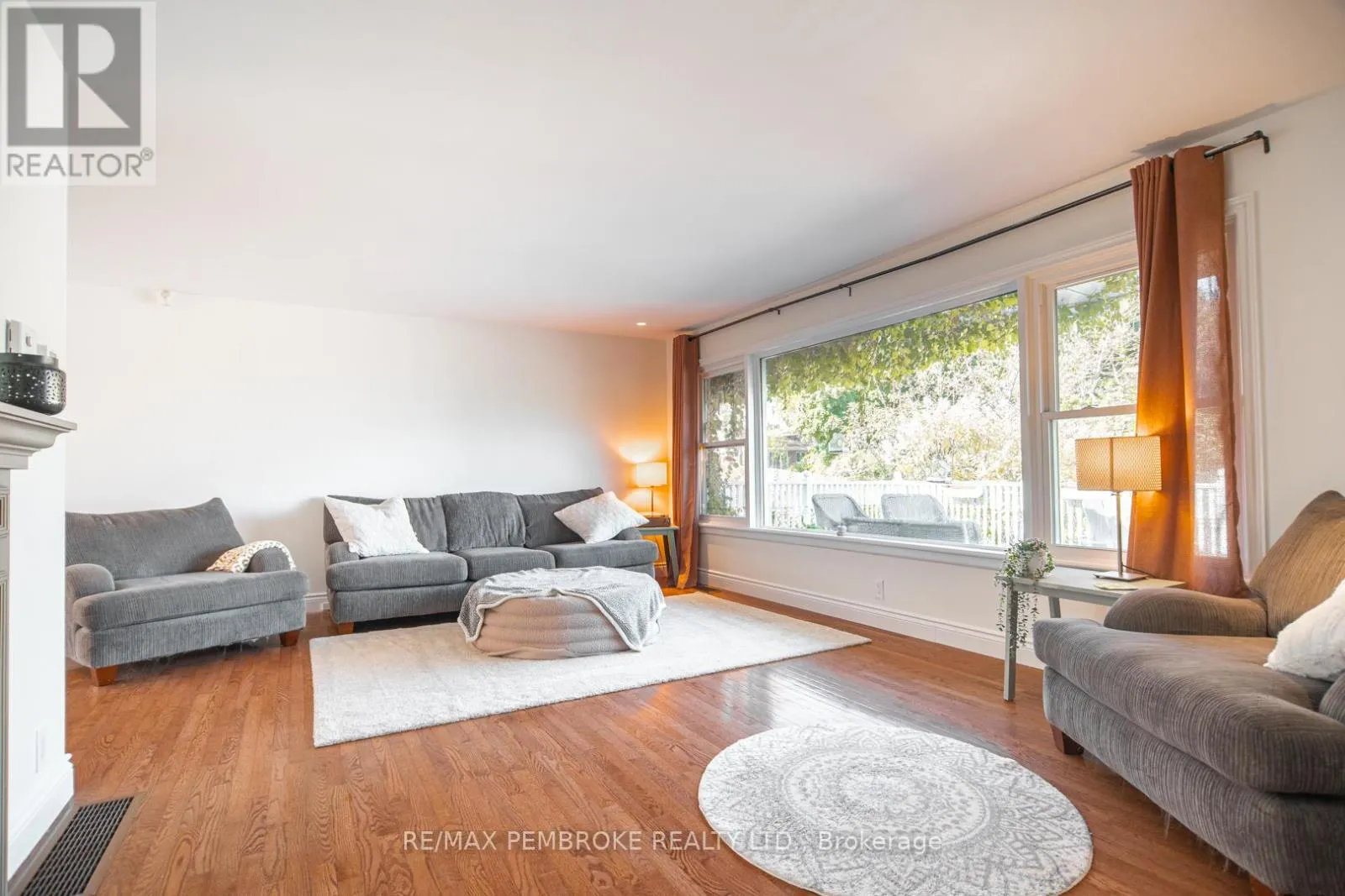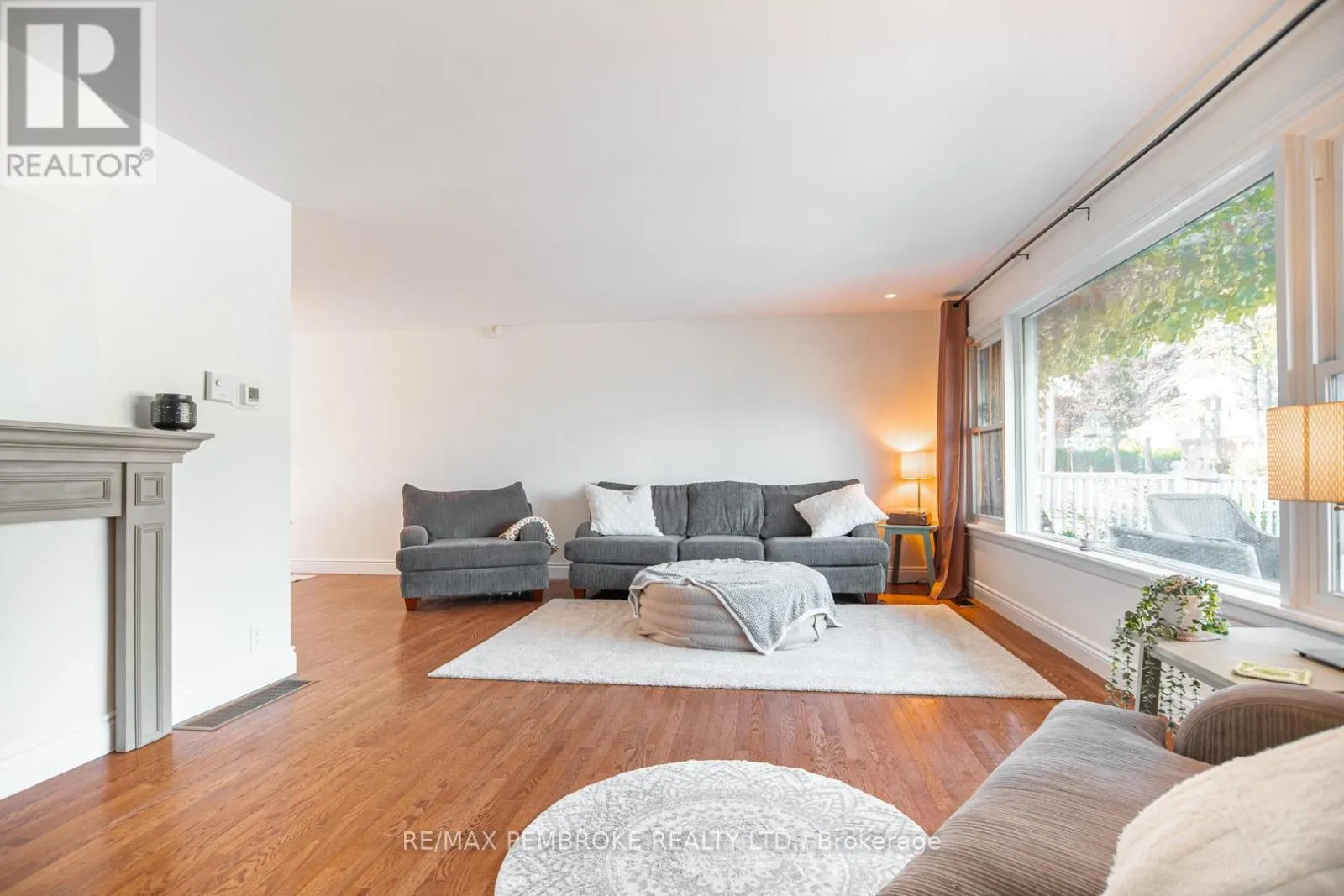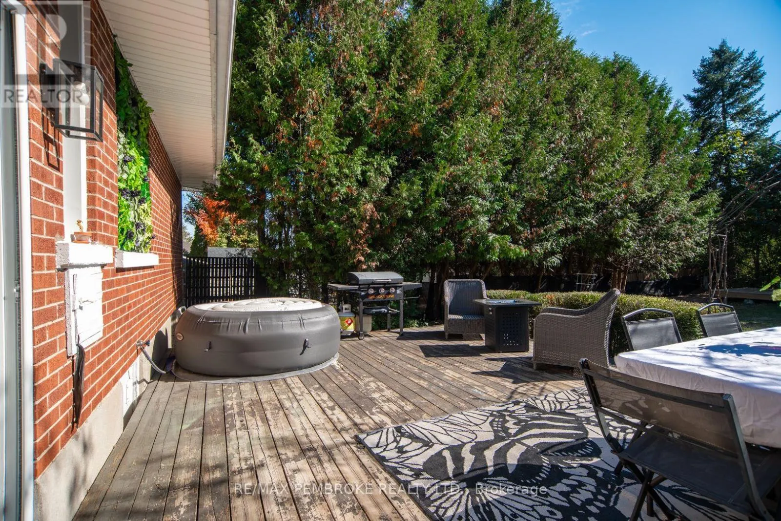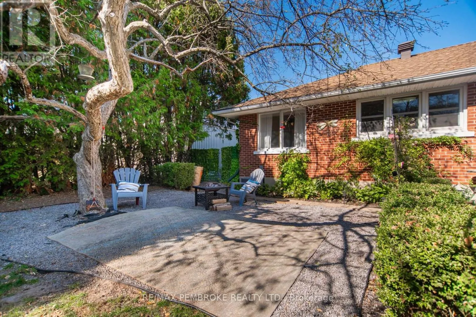 Cross Streets: Esther St/Broadview Dr. ** Directions: Esther St-between Broadview Dr and Clemow Ave. Perched high on a spacious east-end Pembroke lot, this home offers incredible privacy and distant views of the Ottawa River. The large backyard features a generous deck, perfect for relaxing or entertaining, along with a substantial shed that could easily be converted into a home office or studio. Inside, the main floor showcases beautiful hardwood flooring and an abundance of large windows that flood the space with natural light while capturing scenic views. The fully finished lower level extends the living space with a cozy family room, den, and 4-piece bath, plus a workshop/storage area with convenient direct access to the outdoors. Recent updates include a new furnace in 2025, adding comfort and peace of mind. A unique property combining privacy, functionality, and charm ready for its next chapter. (id:27476)