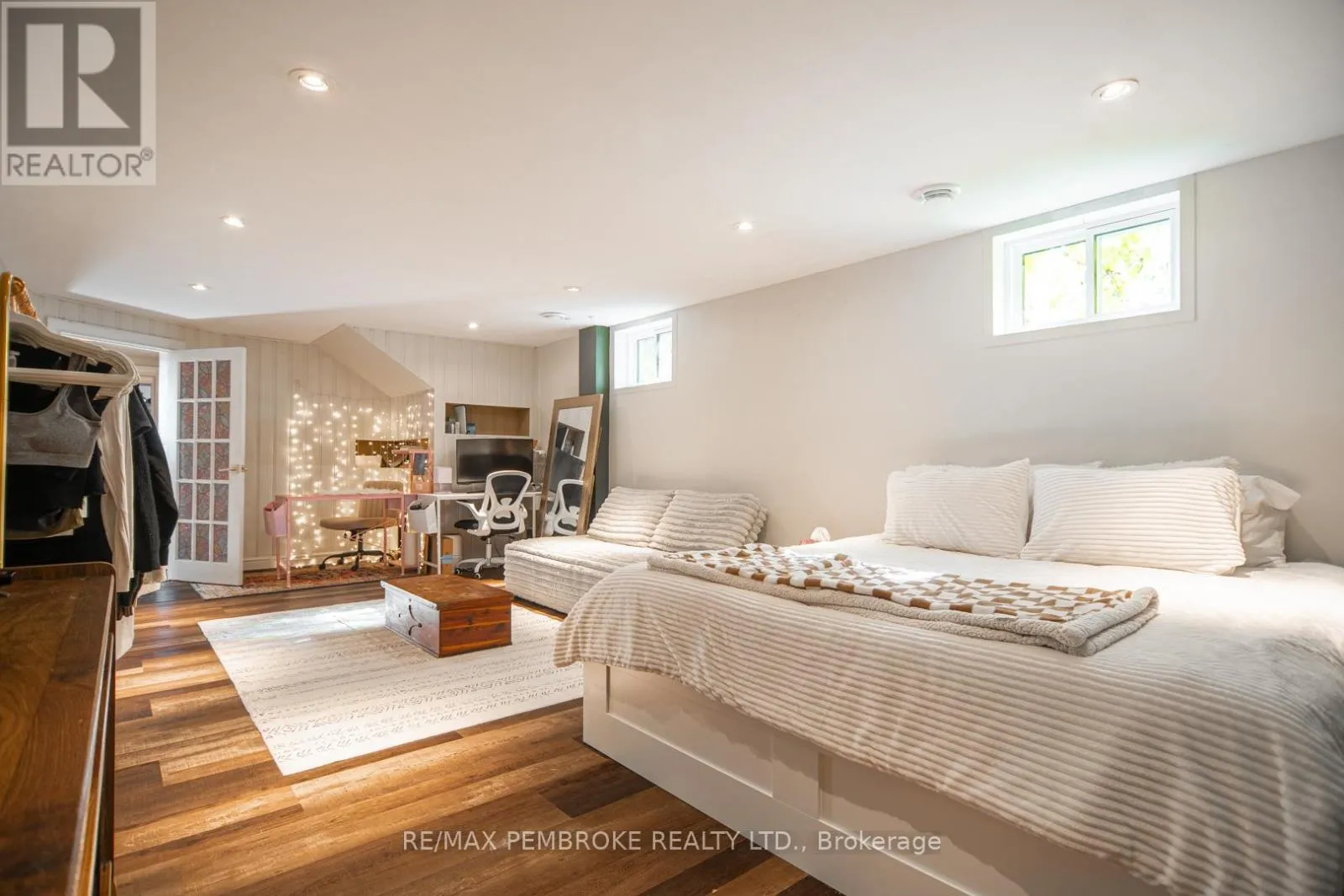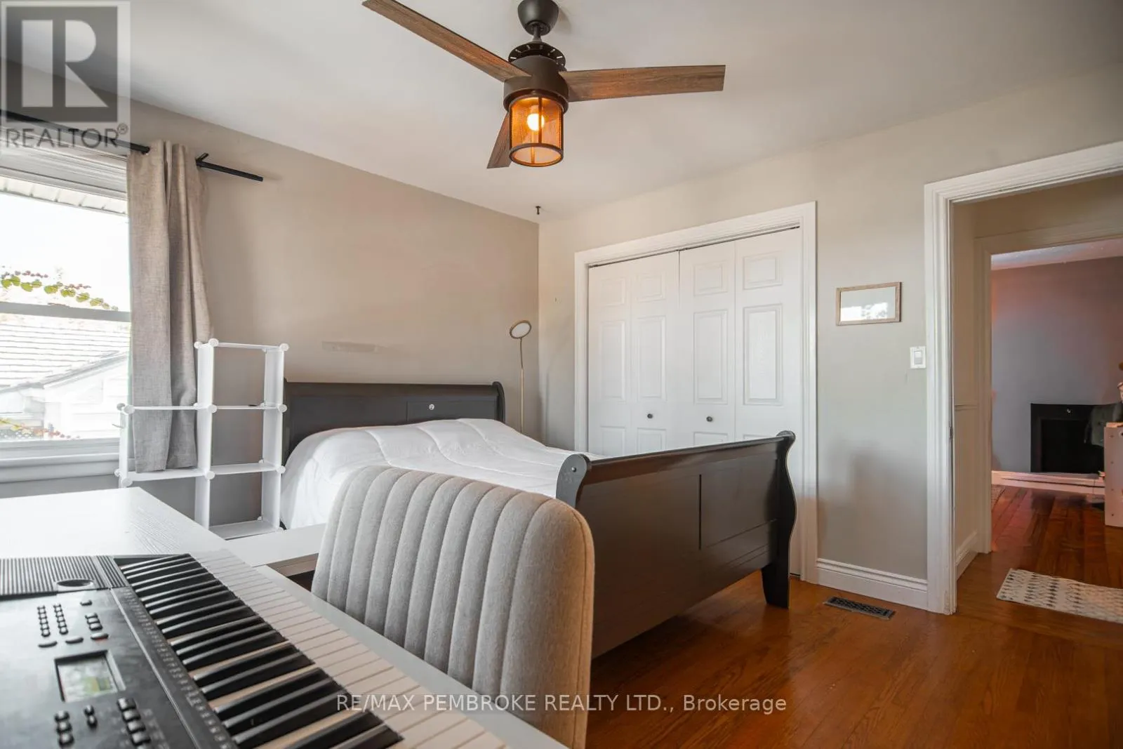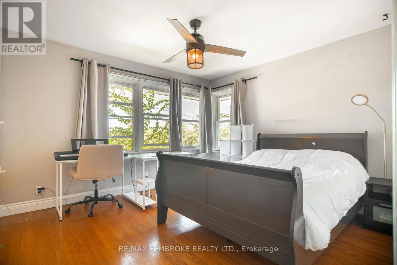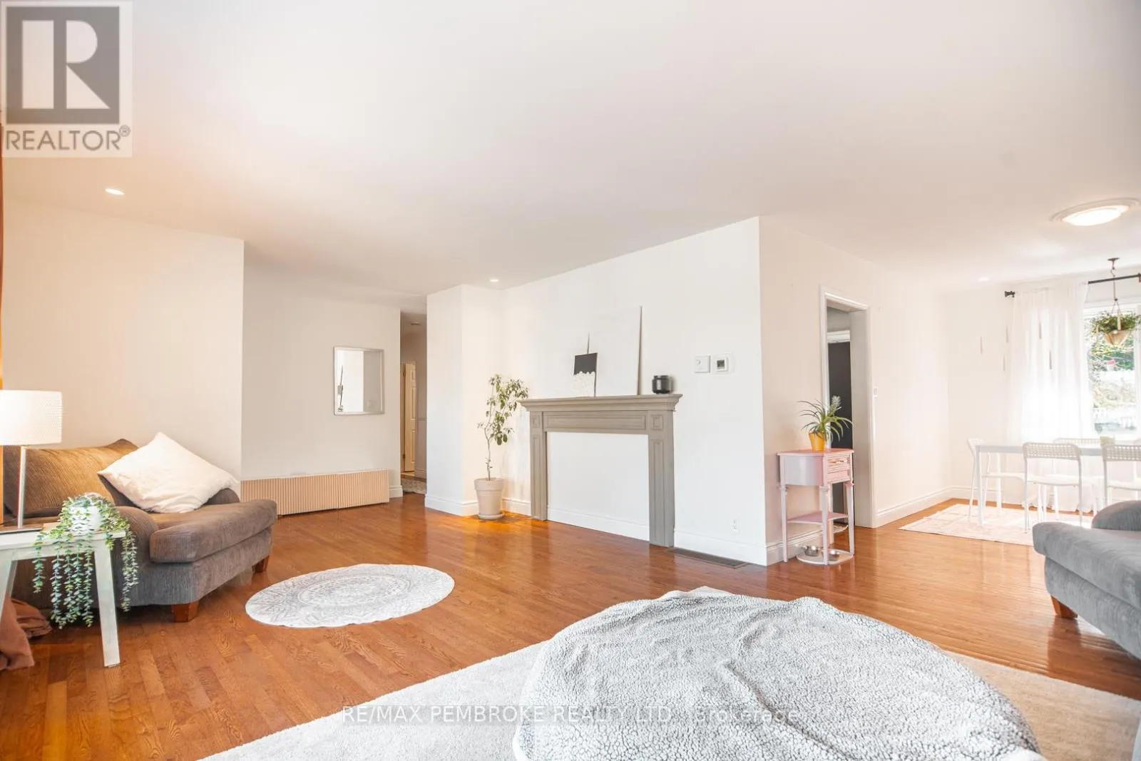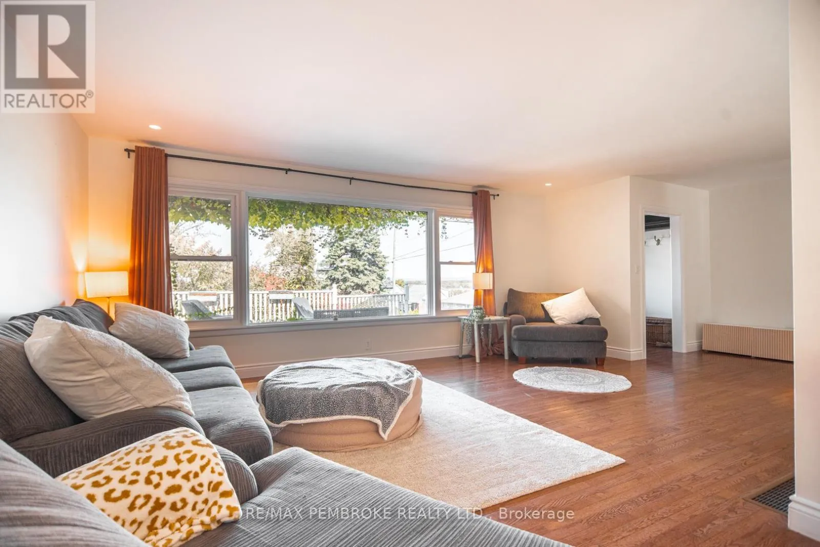 Cross Streets: Esther St/Broadview Dr. ** Directions: Esther St-between Broadview Dr and Clemow Ave. Perched high on a spacious east-end Pembroke lot, this home offers incredible privacy and distant views of the Ottawa River. The large backyard features a generous deck, perfect for relaxing or entertaining, along with a substantial shed that could easily be converted into a home office or studio. Inside, the main floor showcases beautiful hardwood flooring and an abundance of large windows that flood the space with natural light while capturing scenic views. The fully finished lower level extends the living space with a cozy family room, den, and 4-piece bath, plus a workshop/storage area with convenient direct access to the outdoors. Recent updates include a new furnace in 2025, adding comfort and peace of mind. A unique property combining privacy, functionality, and charm ready for its next chapter. (id:27476)