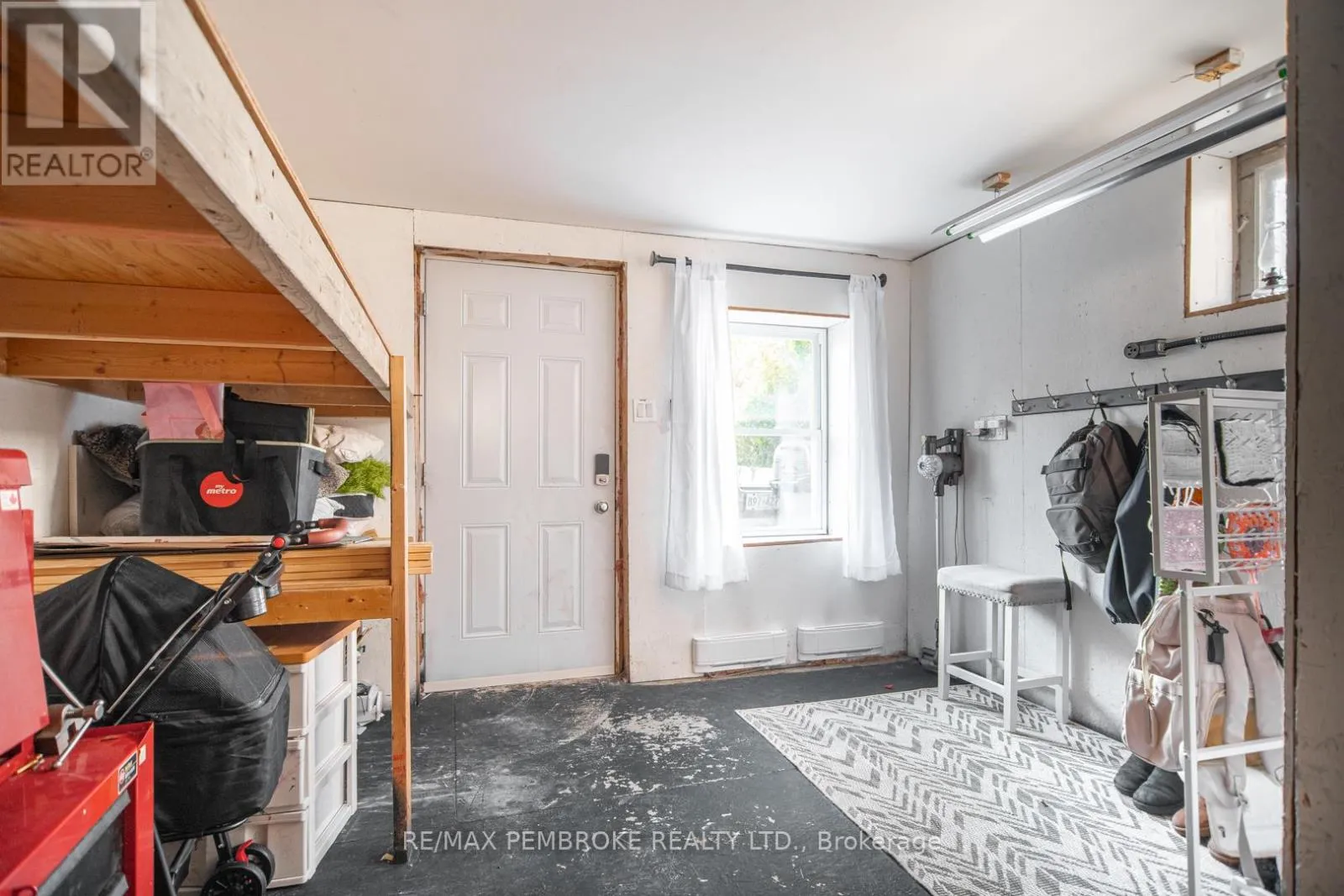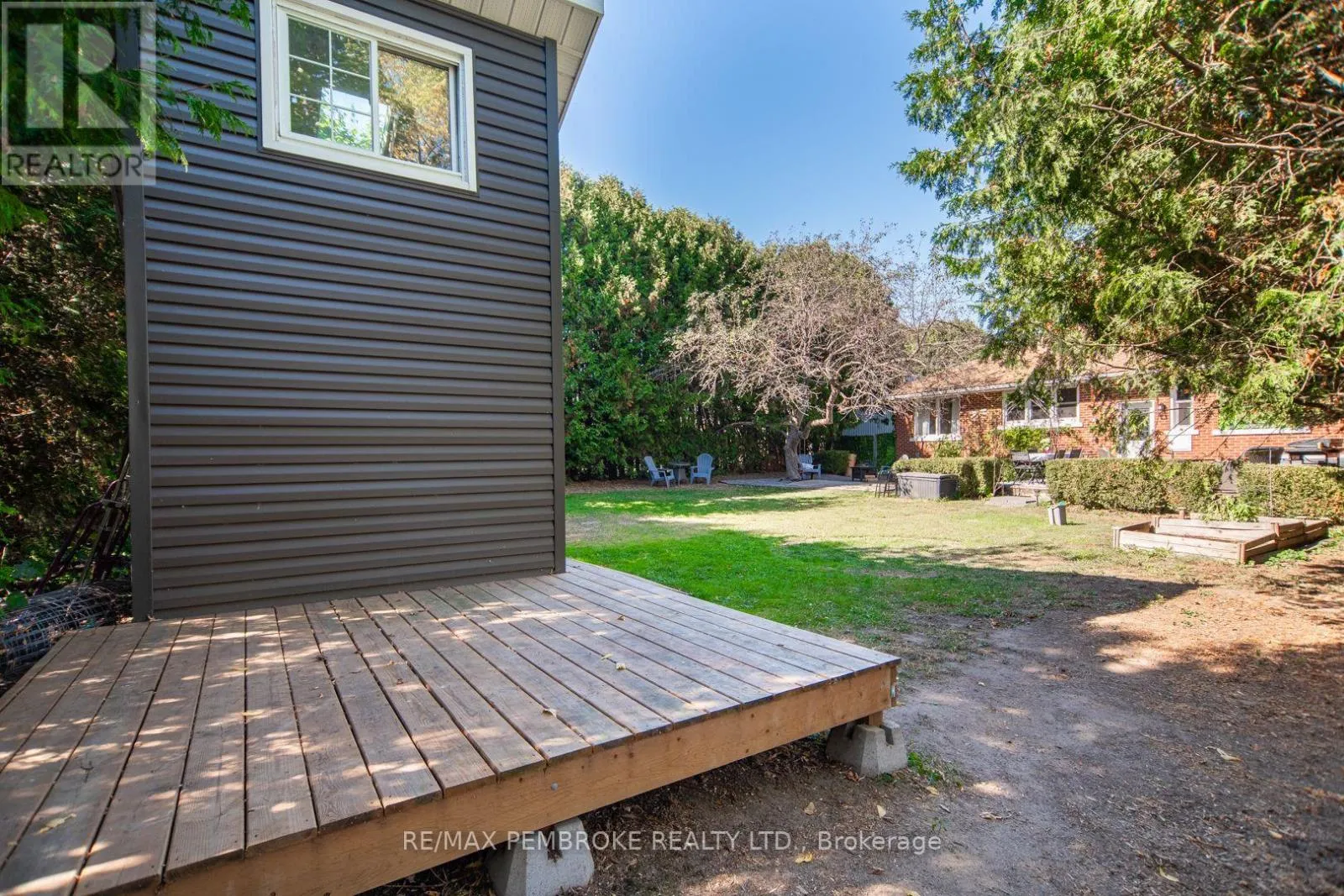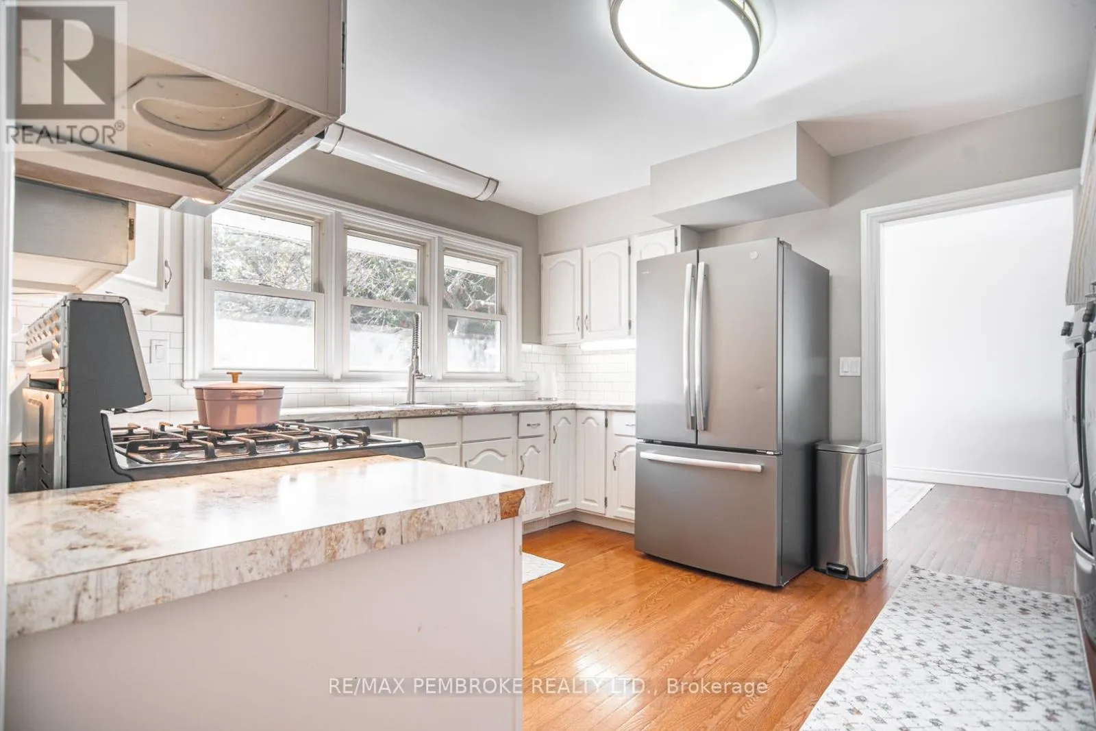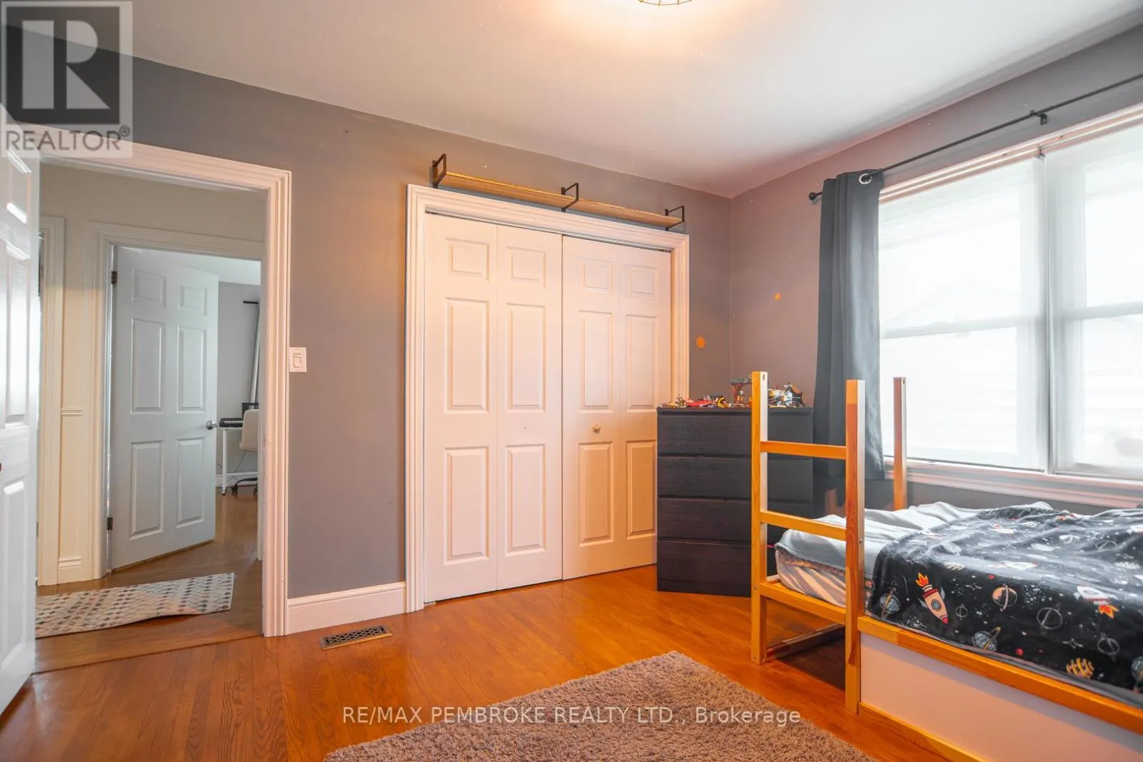 Cross Streets: Esther St/Broadview Dr. ** Directions: Esther St-between Broadview Dr and Clemow Ave. Perched high on a spacious east-end Pembroke lot, this home offers incredible privacy and distant views of the Ottawa River. The large backyard features a generous deck, perfect for relaxing or entertaining, along with a substantial shed that could easily be converted into a home office or studio. Inside, the main floor showcases beautiful hardwood flooring and an abundance of large windows that flood the space with natural light while capturing scenic views. The fully finished lower level extends the living space with a cozy family room, den, and 4-piece bath, plus a workshop/storage area with convenient direct access to the outdoors. Recent updates include a new furnace in 2025, adding comfort and peace of mind. A unique property combining privacy, functionality, and charm ready for its next chapter. (id:27476)