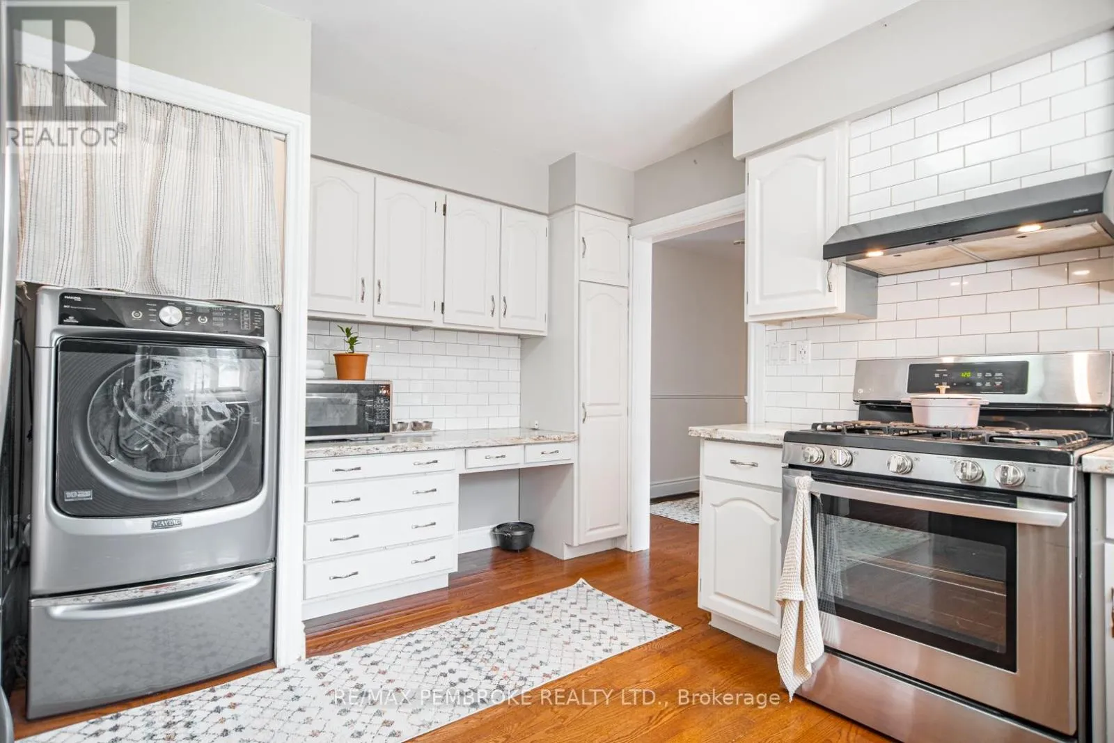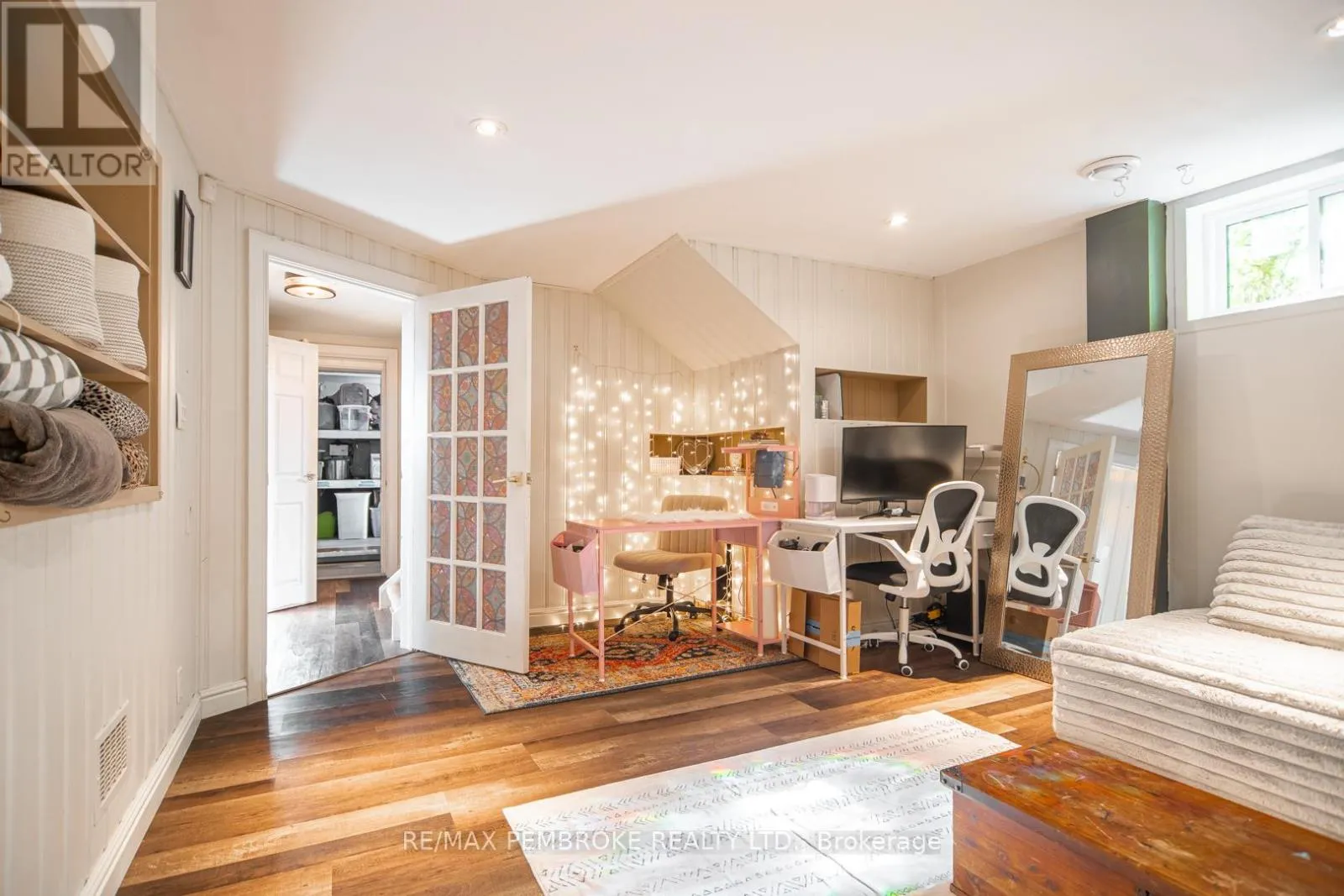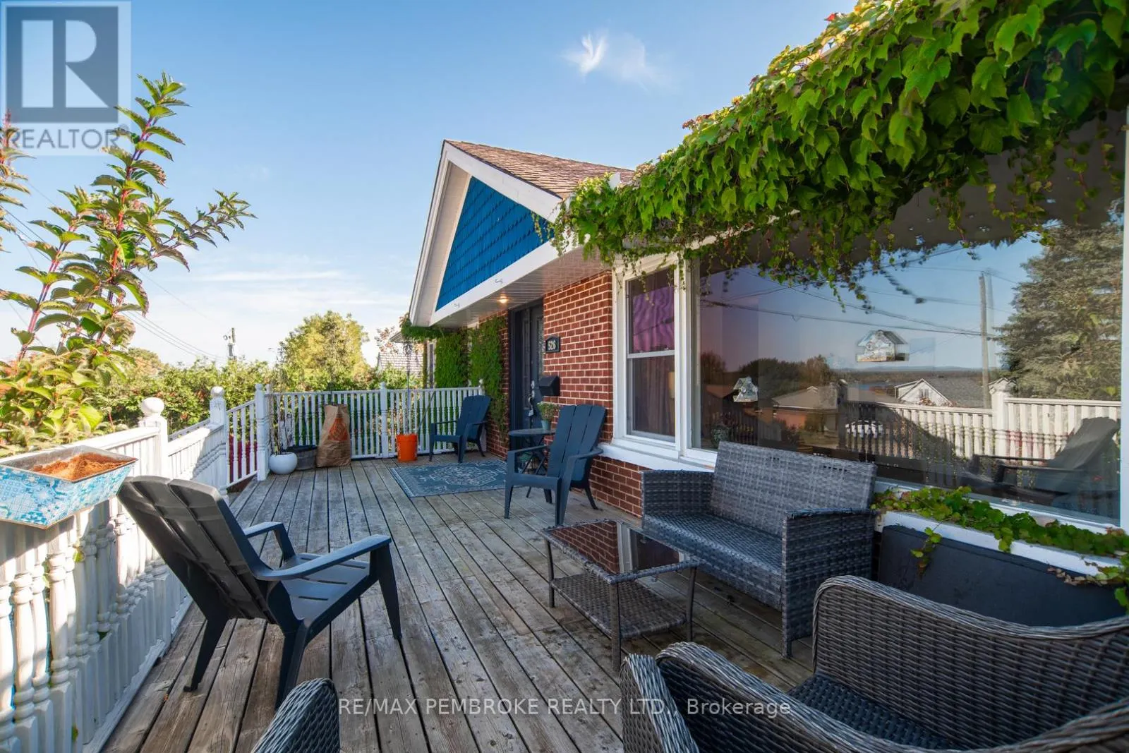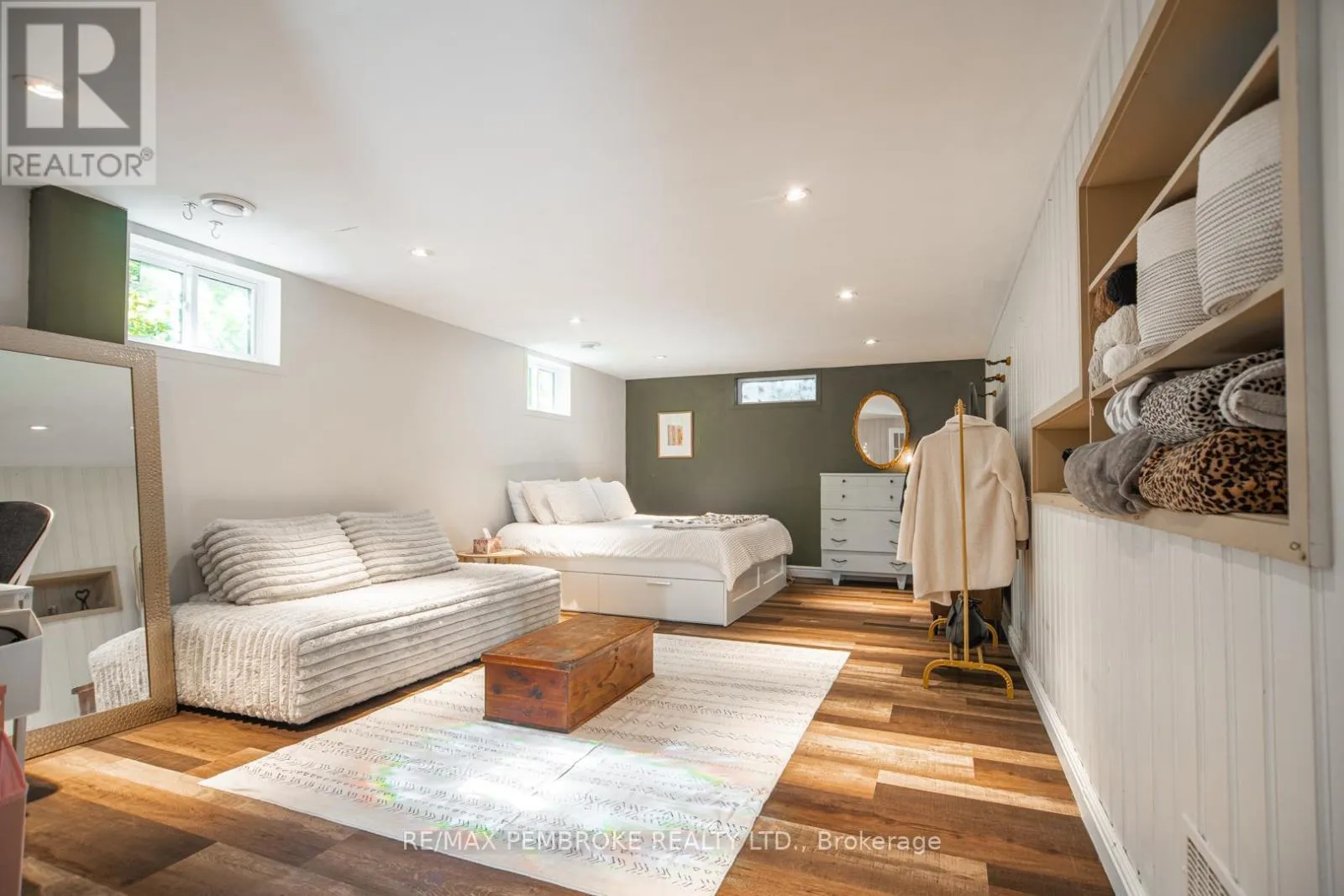 Cross Streets: Esther St/Broadview Dr. ** Directions: Esther St-between Broadview Dr and Clemow Ave. Perched high on a spacious east-end Pembroke lot, this home offers incredible privacy and distant views of the Ottawa River. The large backyard features a generous deck, perfect for relaxing or entertaining, along with a substantial shed that could easily be converted into a home office or studio. Inside, the main floor showcases beautiful hardwood flooring and an abundance of large windows that flood the space with natural light while capturing scenic views. The fully finished lower level extends the living space with a cozy family room, den, and 4-piece bath, plus a workshop/storage area with convenient direct access to the outdoors. Recent updates include a new furnace in 2025, adding comfort and peace of mind. A unique property combining privacy, functionality, and charm ready for its next chapter. (id:27476)