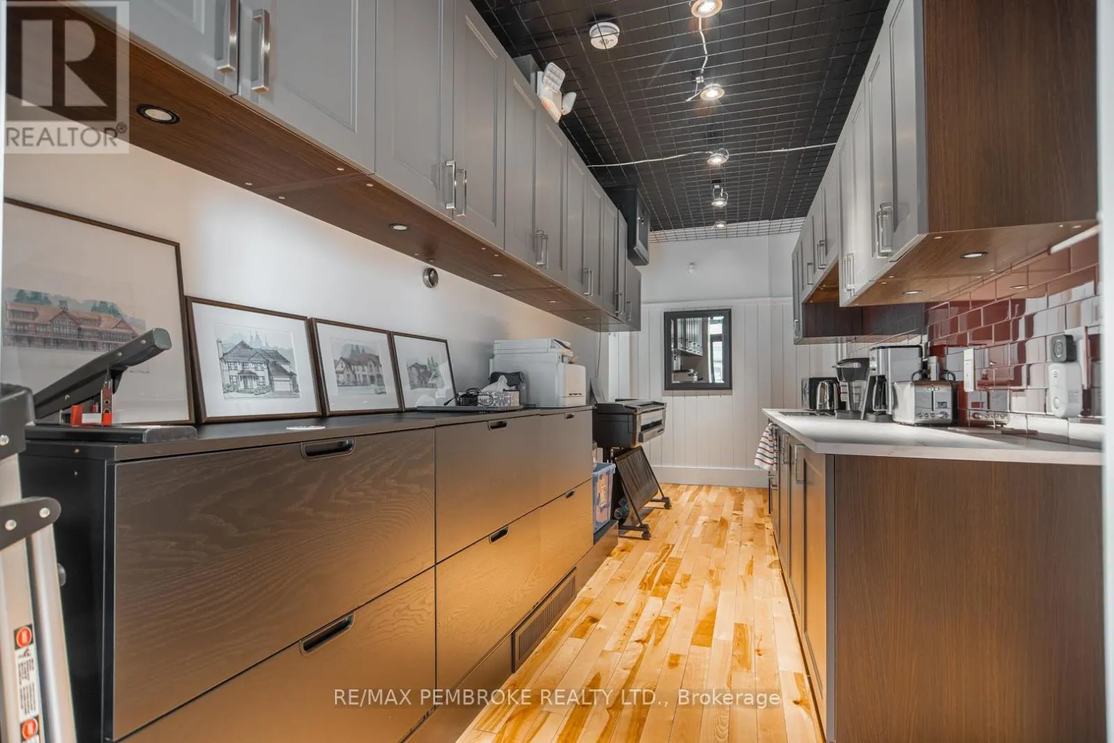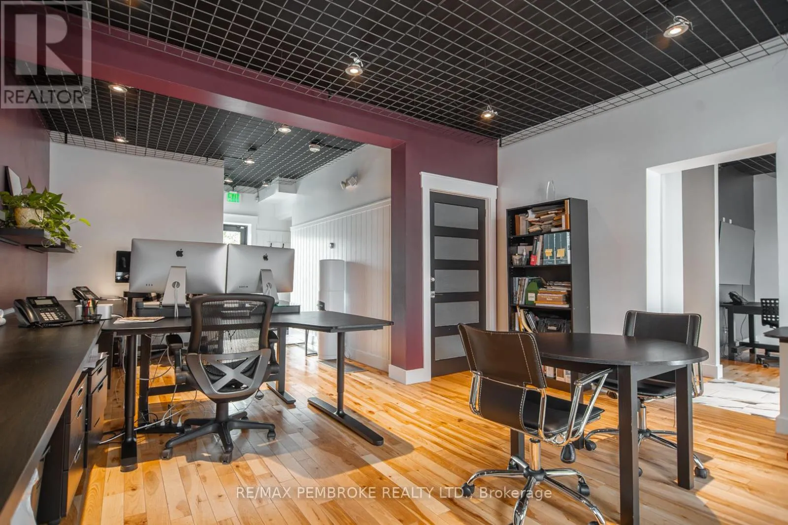 Cross Streets: Pembroke St. E/Mackay St. ** Directions: Pembroke St. E-between Mackay St and Maple Ave. Prime Commercial Building for Sale - Turn-Key and Fully Renovated! Ideally located on Pembroke St. E, just steps from downtown, this beautifully updated commercial property offers exceptional visibility and convenience surrounded by long-established neighbouring businesses. The main level has been fully modernized within the past three years and features a professional layout with multiple private offices, a bright open bull pen, a large conference room, kitchen/staff area, and additional storage space in the basement. Adding excellent value and income potential, the upper level features a fully renovated2-bedroom apartment with its own private entrance, currently rented for $2,380/month. The property also includes 10 dedicated parking spaces-a rare advantage for a central Pembroke location. This turn-key investment offers flexibility for both owner-occupiers and investors seeking a modern, low-maintenance commercial building with a strong residential component and steady rental income. (id:27476)