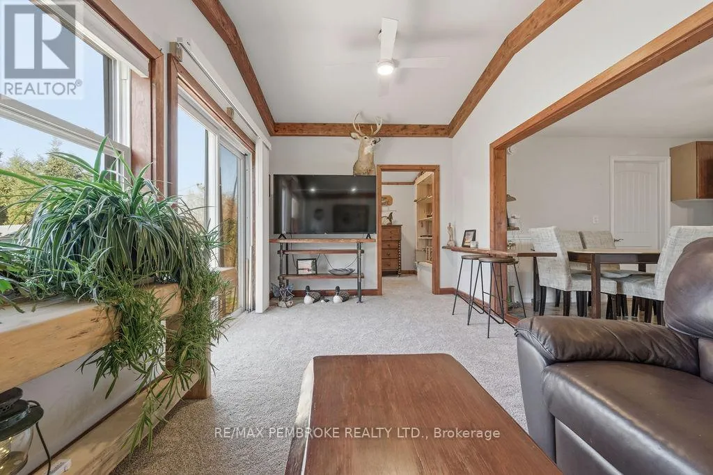Cross Streets: Boundary Rd and Eganville Rd. ** Directions: Boundary Road East onto Giroux Street and continue left onto Thompson. This newly renovated, affordable home has an attached apartment or in-law suite. All bedrooms and bathrooms are on the main floor of this 1200 approx. Sq Ft bungalow. Each side by side unit has its own separate driveway, covered entrances and laundry facilities. All the appliances are included with flexible closing for vacant possession to enjoy the upcoming holidays. A tranquil, non-through street is the ideal setting for this large lot overlooking the river. Bonus 3 season, insulated sunroom with hydro, a separate screened gazebo, patio deck, and a firepit area to relax or entertain friends. Not to mention fishing right at your back door! Economical, shared natural gas furnace new in 2024. Shingles new in 2020. Updated electrical. Plus a large basement with a workshop. So many possibilities to discover here at this unique property in the heart of the city yet feels like a private country oasis. A quick commute to CNL or Garrison Petawawa. (id:27476)