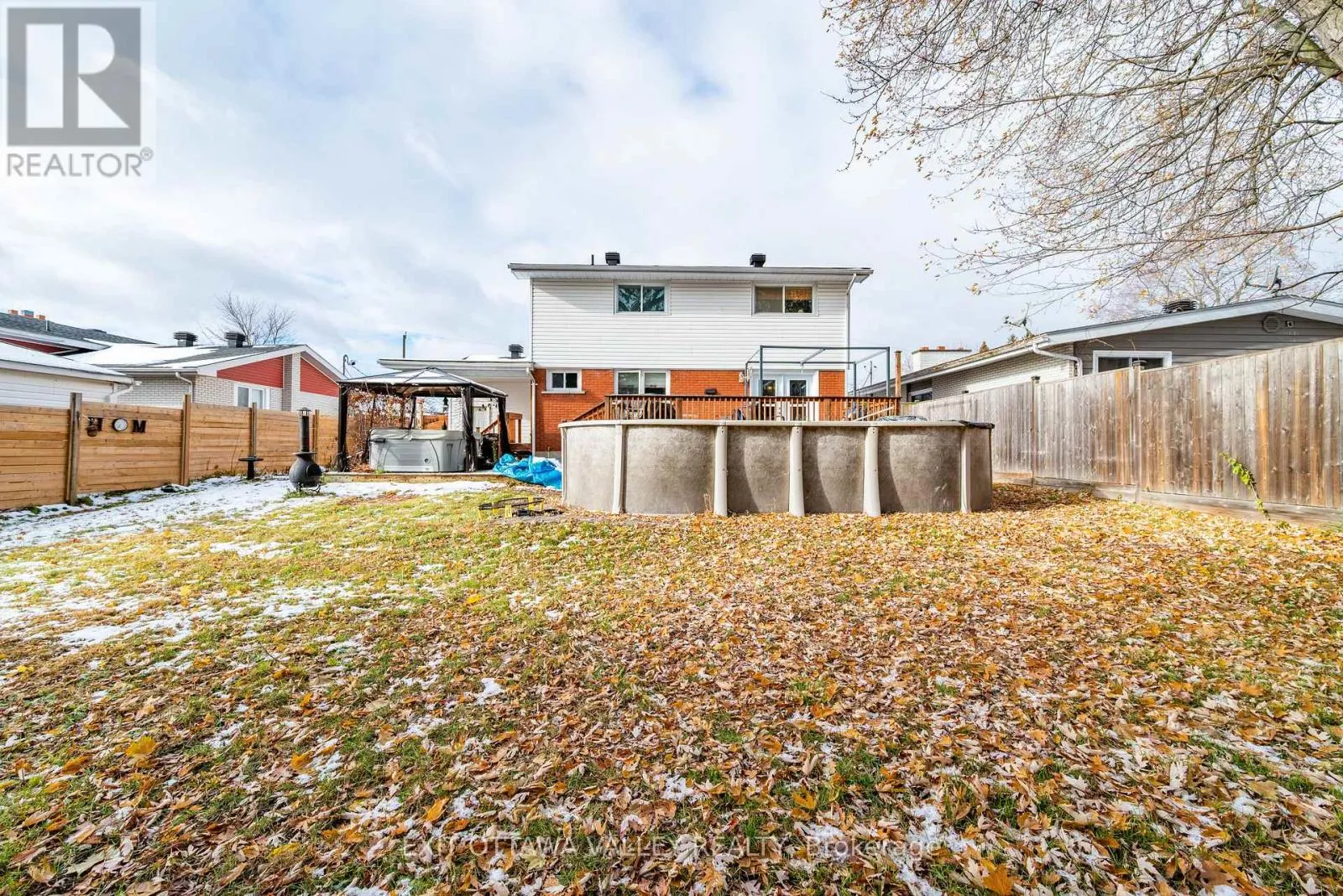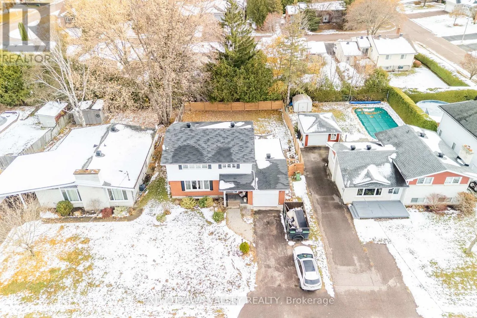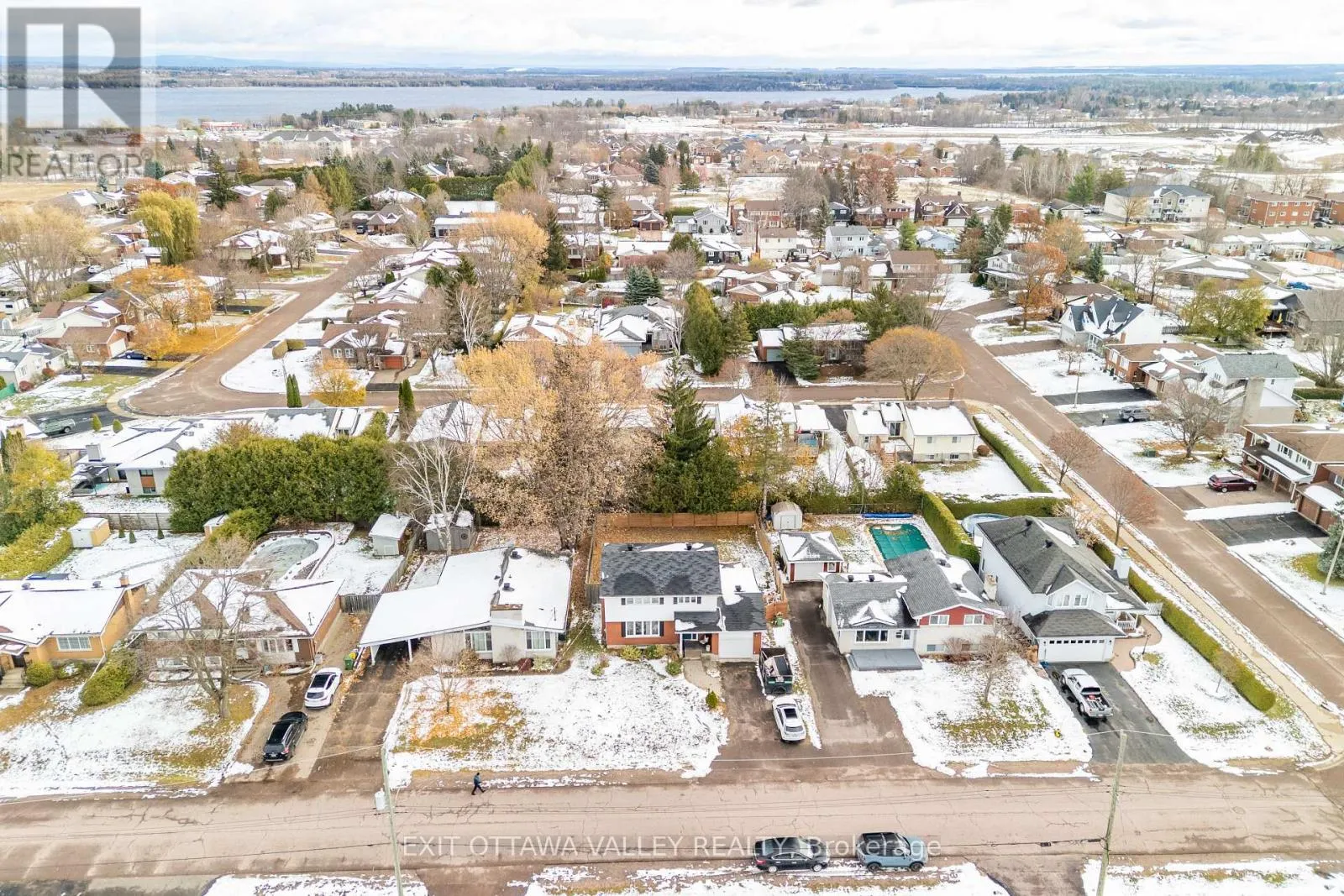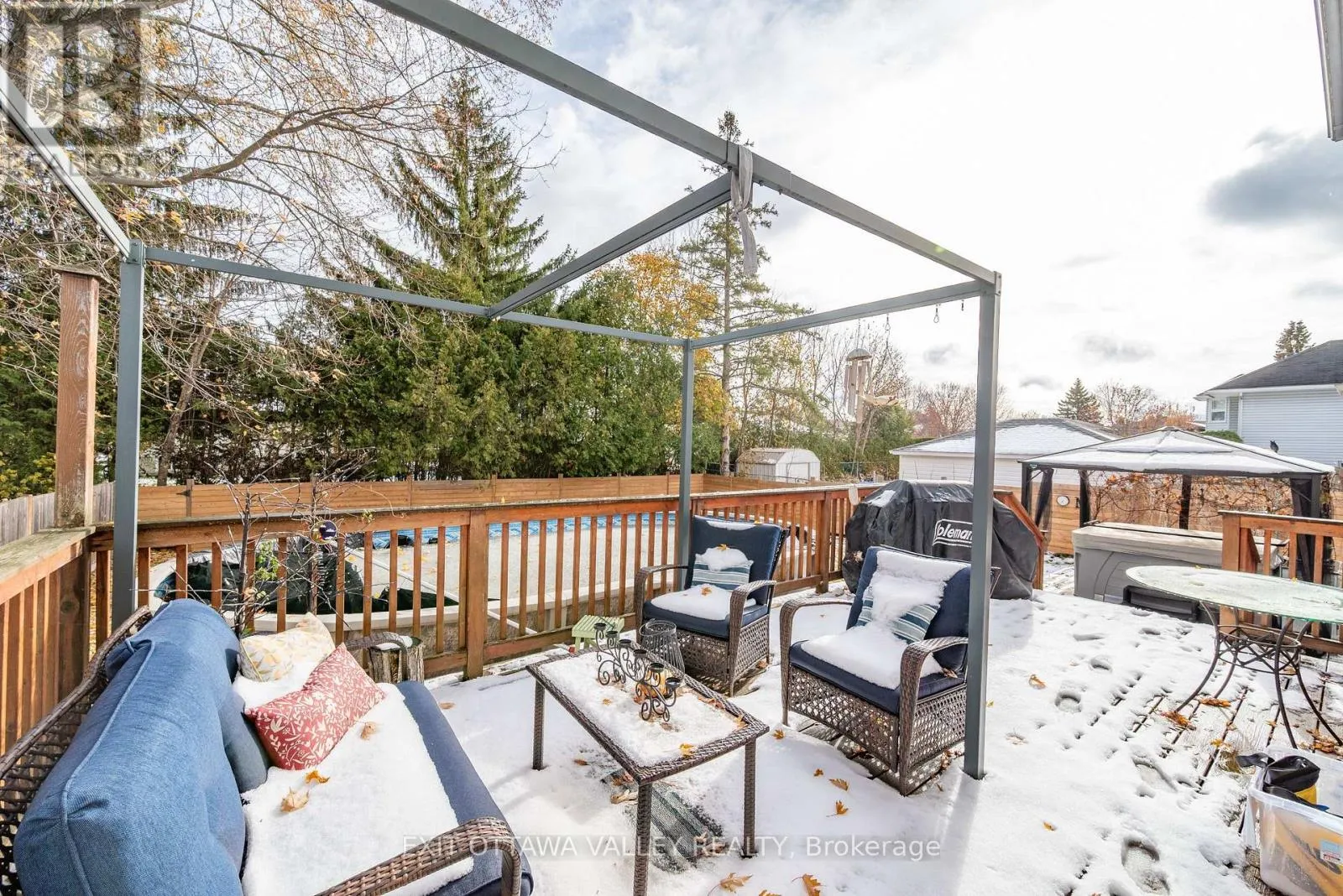 Cross Streets: Patricia and Chamberlain. ** Directions: Pembroke Street to Angus Campbell to Bell, right on Patricia, house on right. Welcome to this inviting 4-bedroom, 1.5-bathroom two-storey home located in one of Pembroke's most desirable, well-established neighbourhoods. Warm, welcoming, and designed for family living, this property blends classic charm with thoughtful modern updates. The spacious tiled foyer sets the tone, offering a bright and practical entrance with excellent storage options. Original hardwood flooring extends throughout both the main and second levels, adding character and timeless appeal. The large eat-in kitchen provides plenty of room for meal prep and gathering, while the separate dining area features a patio door that opens to the deck - perfect for summer barbecues and taking in the view of the fully fenced yard. Step outside to enjoy your own private retreat complete with a 12' x 24' above-ground oval pool with gas heater (2021), and a relaxing Hydropool hot tub (2021) tucked beneath a gazebo for year-round relaxation. Extra deck boards will remain for future improvements, appliances to stay. Upstairs, four comfortable bedrooms offer room for everyone. The main level includes an electric fireplace for added ambiance, while the lower-level recreation room showcases a beautiful fieldstone fireplace-stunning in appearance and currently used for decorative purposes only. Important updates include roof shingles replaced approximately 3 years ago and a forced-air natural gas furnace installed in 2019, providing peace of mind and energy efficiency. The attached garage adds convenience, while the interlock walkway, covered front entrance, and asphalt driveway enhance curb appeal. With brick and vinyl siding, this home is as durable as it is charming. Located close to schools, shopping, and amenities, this is an ideal choice for families seeking space, comfort, and a fantastic neighbourhood to call home. (id:27476)