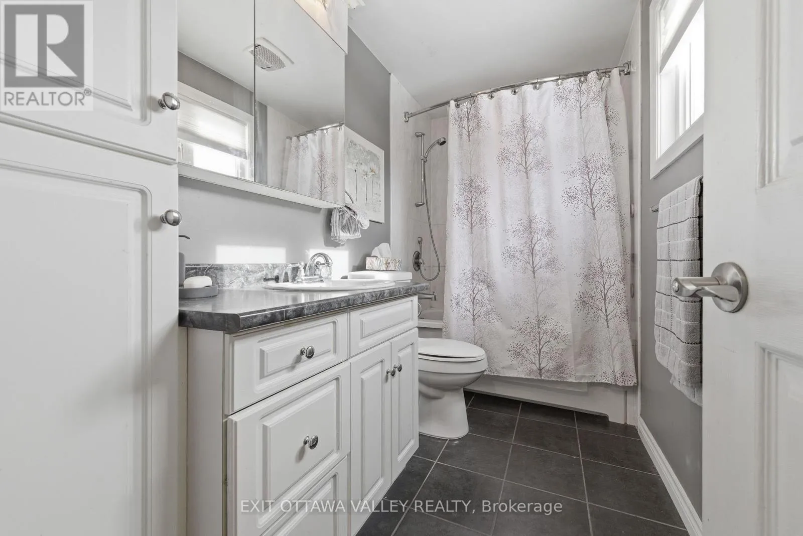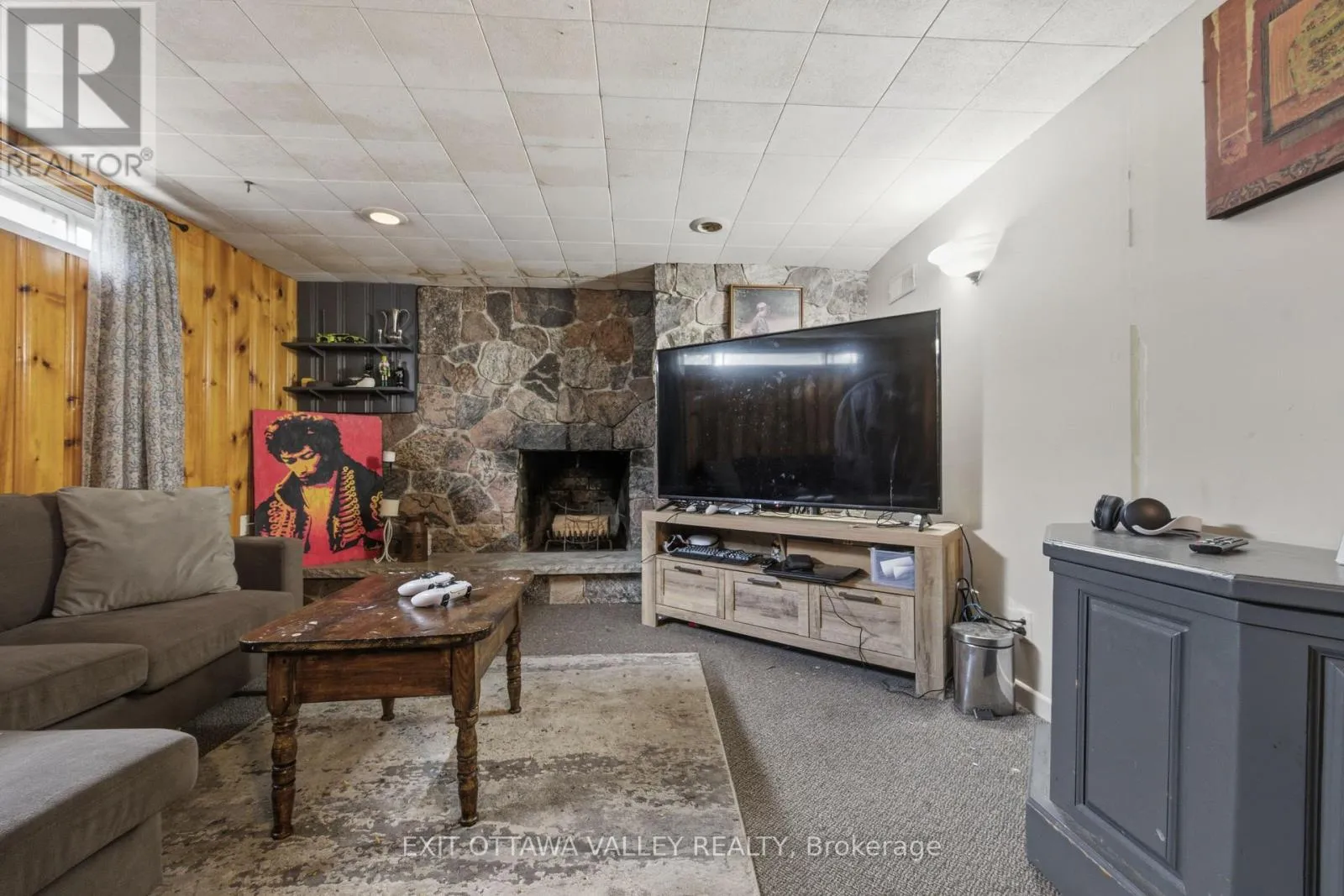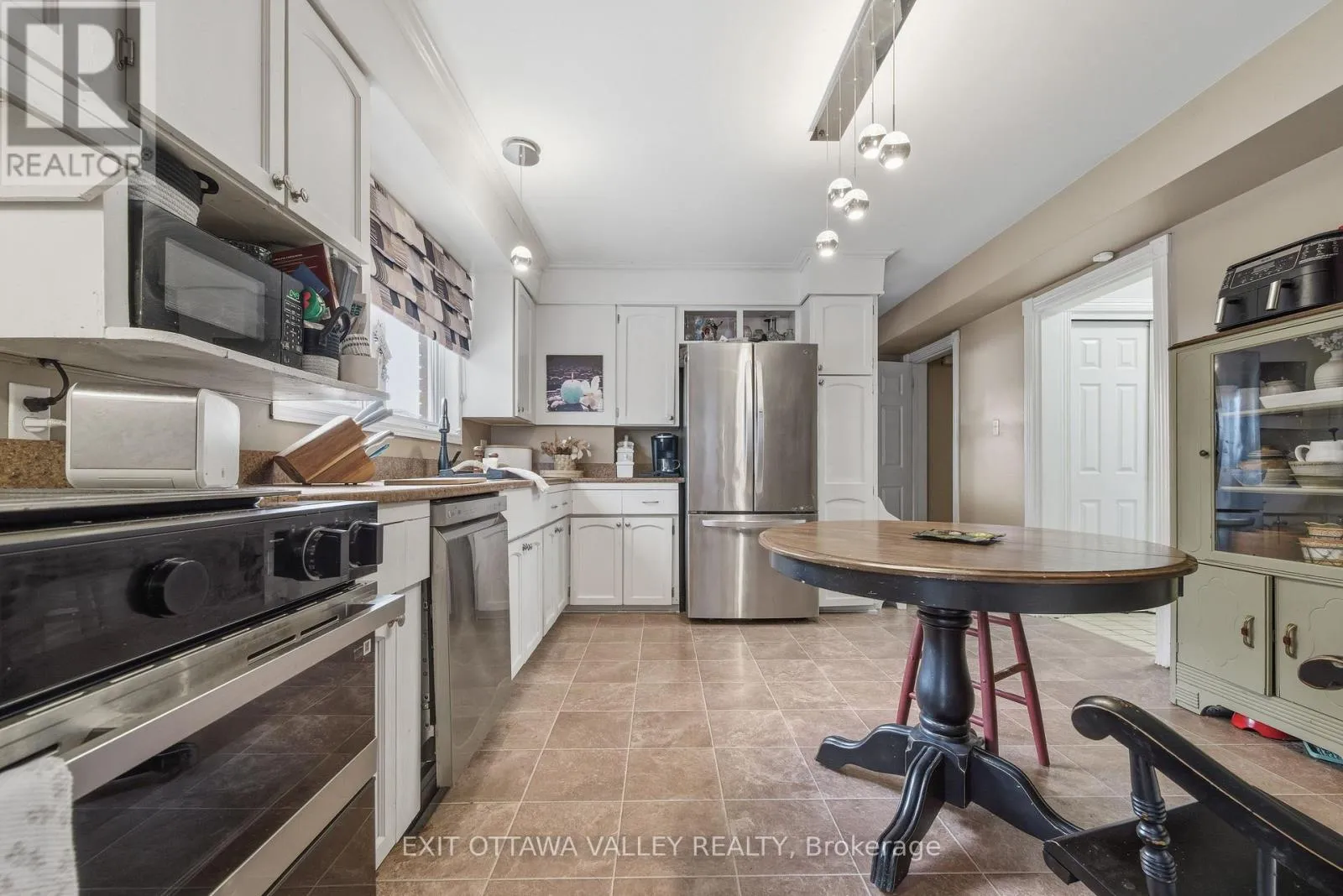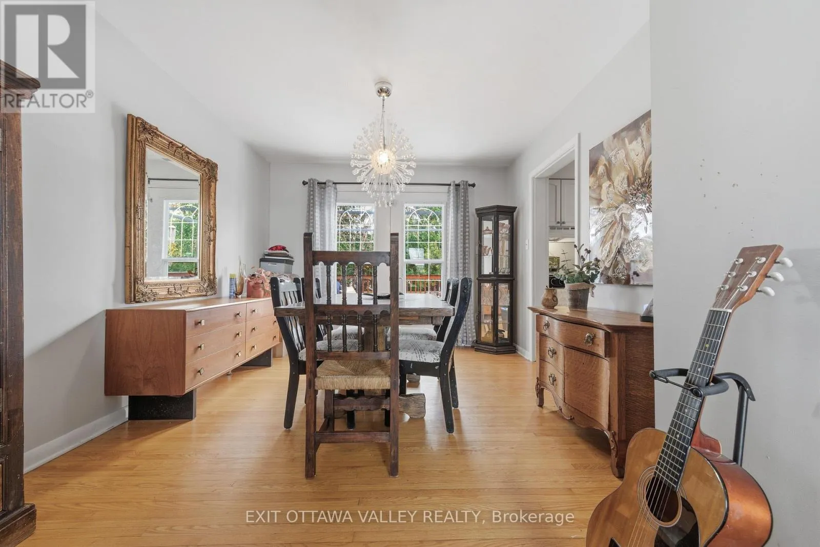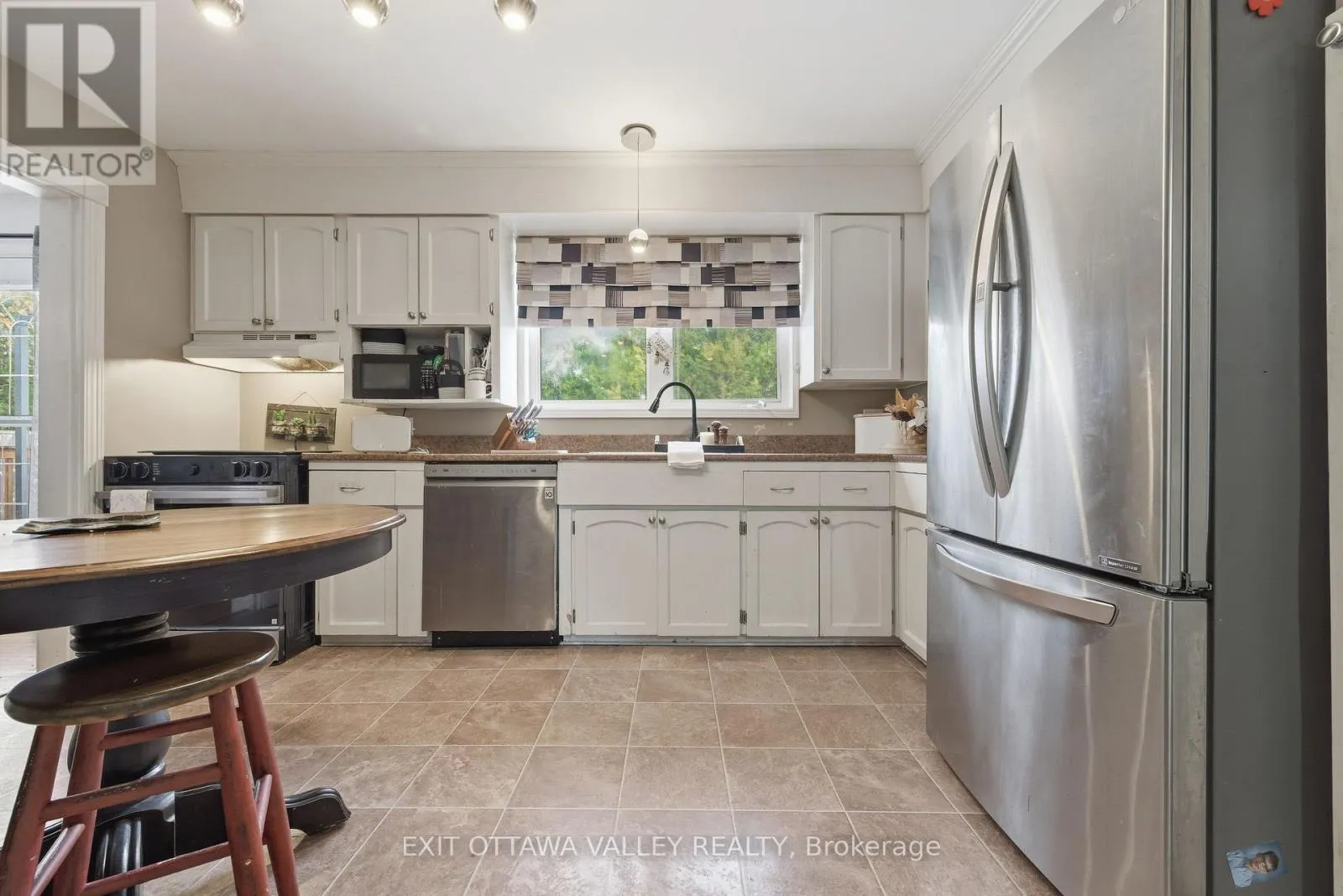 Cross Streets: Patricia and Chamberlain. ** Directions: Pembroke Street to Angus Campbell to Bell, right on Patricia, house on right. Welcome to this inviting 4-bedroom, 1.5-bathroom two-storey home located in one of Pembroke's most desirable, well-established neighbourhoods. Warm, welcoming, and designed for family living, this property blends classic charm with thoughtful modern updates. The spacious tiled foyer sets the tone, offering a bright and practical entrance with excellent storage options. Original hardwood flooring extends throughout both the main and second levels, adding character and timeless appeal. The large eat-in kitchen provides plenty of room for meal prep and gathering, while the separate dining area features a patio door that opens to the deck - perfect for summer barbecues and taking in the view of the fully fenced yard. Step outside to enjoy your own private retreat complete with a 12' x 24' above-ground oval pool with gas heater (2021), and a relaxing Hydropool hot tub (2021) tucked beneath a gazebo for year-round relaxation. Extra deck boards will remain for future improvements, appliances to stay. Upstairs, four comfortable bedrooms offer room for everyone. The main level includes an electric fireplace for added ambiance, while the lower-level recreation room showcases a beautiful fieldstone fireplace-stunning in appearance and currently used for decorative purposes only. Important updates include roof shingles replaced approximately 3 years ago and a forced-air natural gas furnace installed in 2019, providing peace of mind and energy efficiency. The attached garage adds convenience, while the interlock walkway, covered front entrance, and asphalt driveway enhance curb appeal. With brick and vinyl siding, this home is as durable as it is charming. Located close to schools, shopping, and amenities, this is an ideal choice for families seeking space, comfort, and a fantastic neighbourhood to call home. (id:27476)