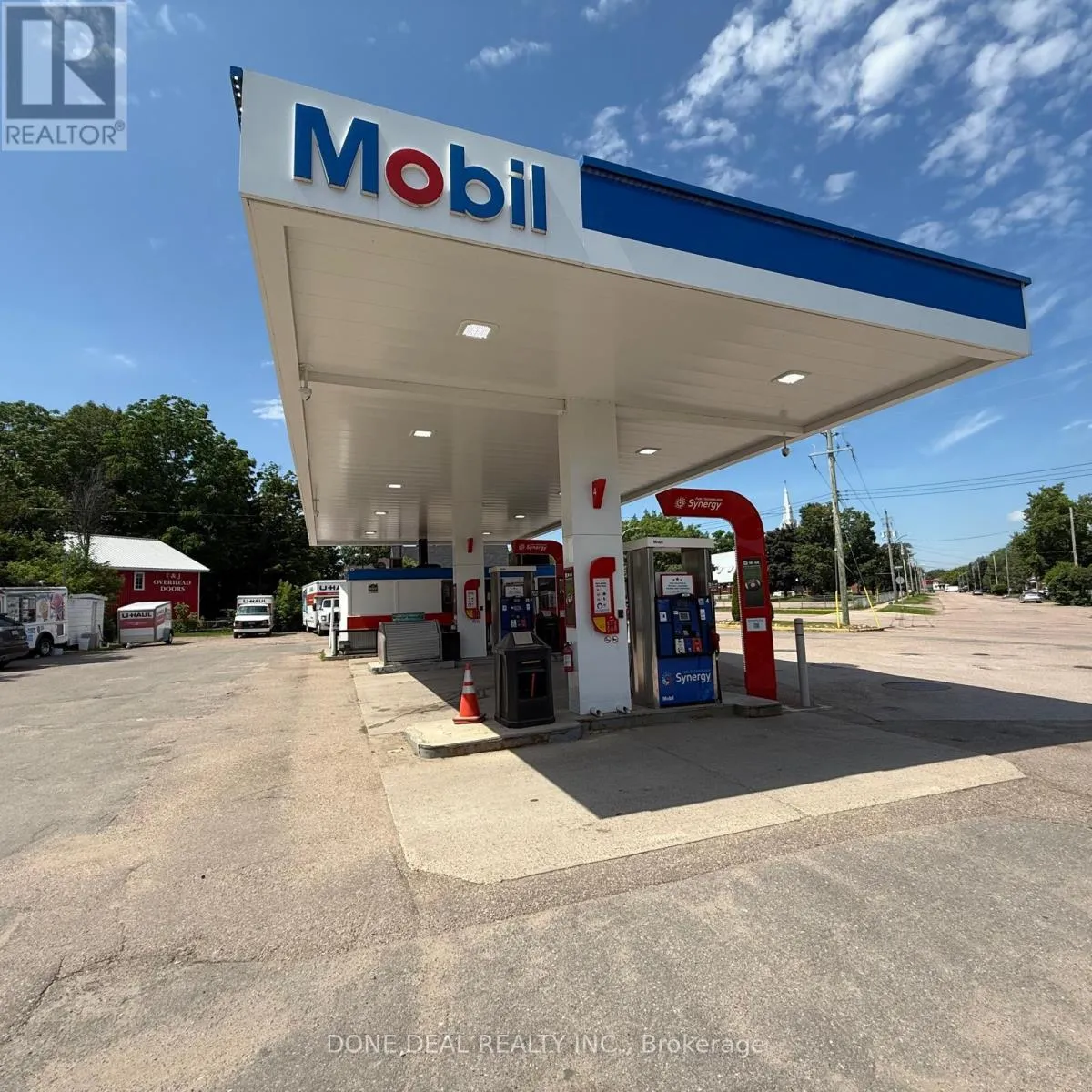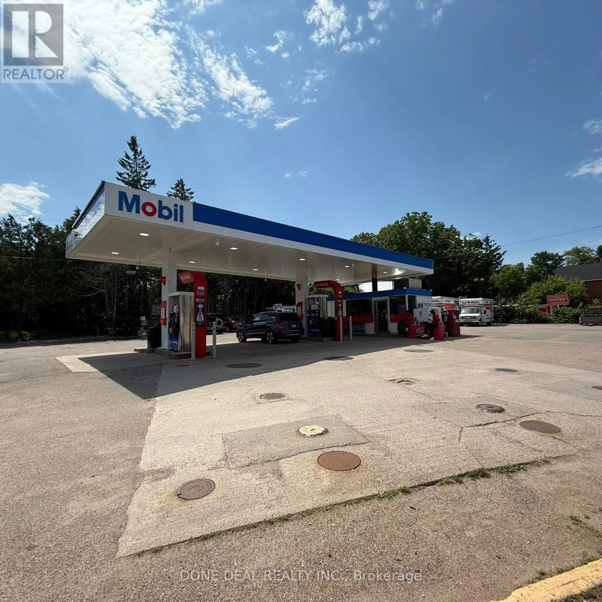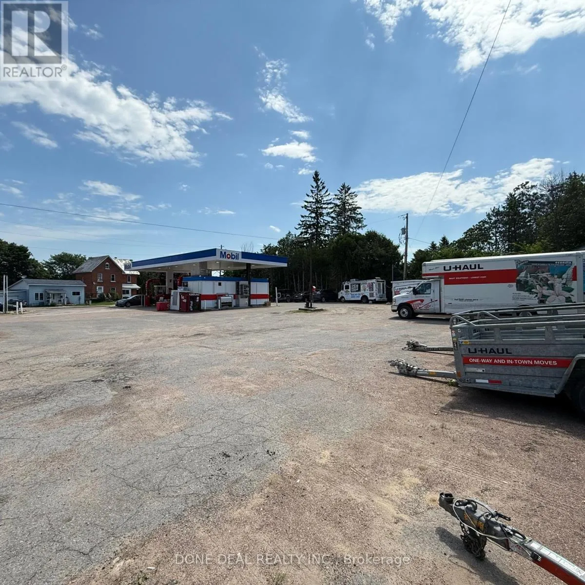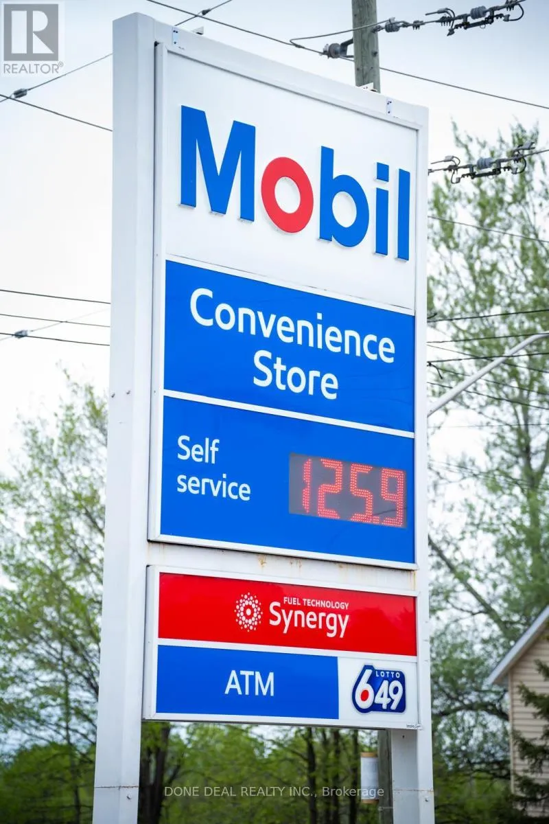 Pembroke St W & Trafalgar Rd Fantastic opportunity to own a well-established Mobil Gas Station prominently located on a high-exposure corner lot along Pembroke Street West in the heart of Pembroke, Ontario. This self-serve gas station features a full canopy, modern pump infrastructure, and outstanding street visibility, ideally positioned for heavy daily traffic and easy access from multiple directions. A unique highlight is the drive-through window dedicated to cigarette sales, offering added convenience and strong customer retention. It is also the only authorized U-Haul rental location serving the entire Pembroke area, providing steady daily traffic and additional revenue. The property sits on a large parcel of land with excellent potential for future expansion-perfect for adding a car wash, retail kiosk, or EV charging stations. Currently operating with an on-site ice cream truck and zoning that allows food trucks, this station offers great opportunities for creative business add-ons. With strong exposure, multiple income streams, and a prime location in a growing community, this is a rare investment opportunity that combines stability and future growth potential. The seller is highly motivated and willing to work with any reasonable offer, making this a must-see opportunity for serious buyers. (id:27476)