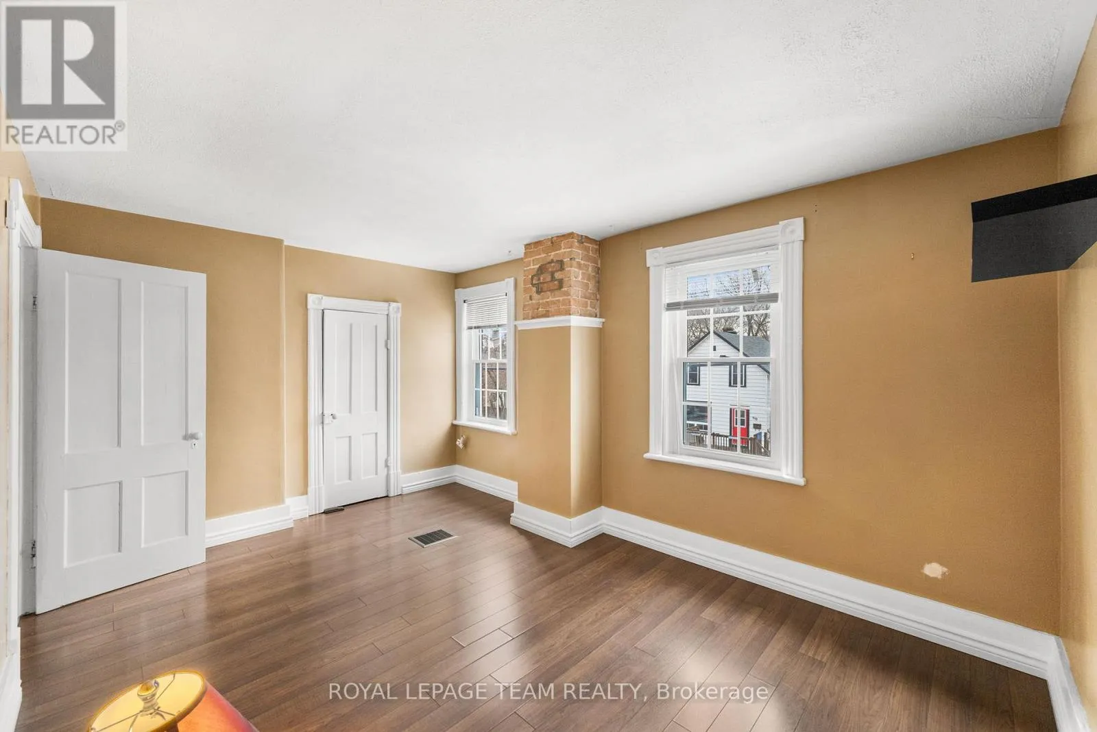 Cross Streets: Mary Street. ** Directions: Mary Street to Moffat. Beautiful, well-maintained century home on a quiet, central Pembroke street. All brick with classic character, this home offers 4 bedrooms and 1 bathroom and R2 zoning. With its generous square footage, two separate entrances, and two staircases, the layout could accommodate a duplex conversion. Enjoy privacy with no rear neighbors, a generous fenced yard, and a stunning view backing onto a River. Inside, the home features high ceilings, generously sized rooms, and plenty of large windows that create a bright, airy atmosphere throughout. The open main-floor kitchen showcases a unique backsplash. The convenience of main-floor laundry adds to the home's functional layout. Well kept and clean, it is move-in ready and has been pre-inspected for peace of mind. Located within walking distance to Bishop Smith Catholic High School and close to parks, shopping, and everyday amenities, this home blends heritage charm with modern convenience in a central location. Listing Realtor is spouse of POA. Some photos virtually staged. Furnace. A/C and roof all completed since 2020. (id:27476)