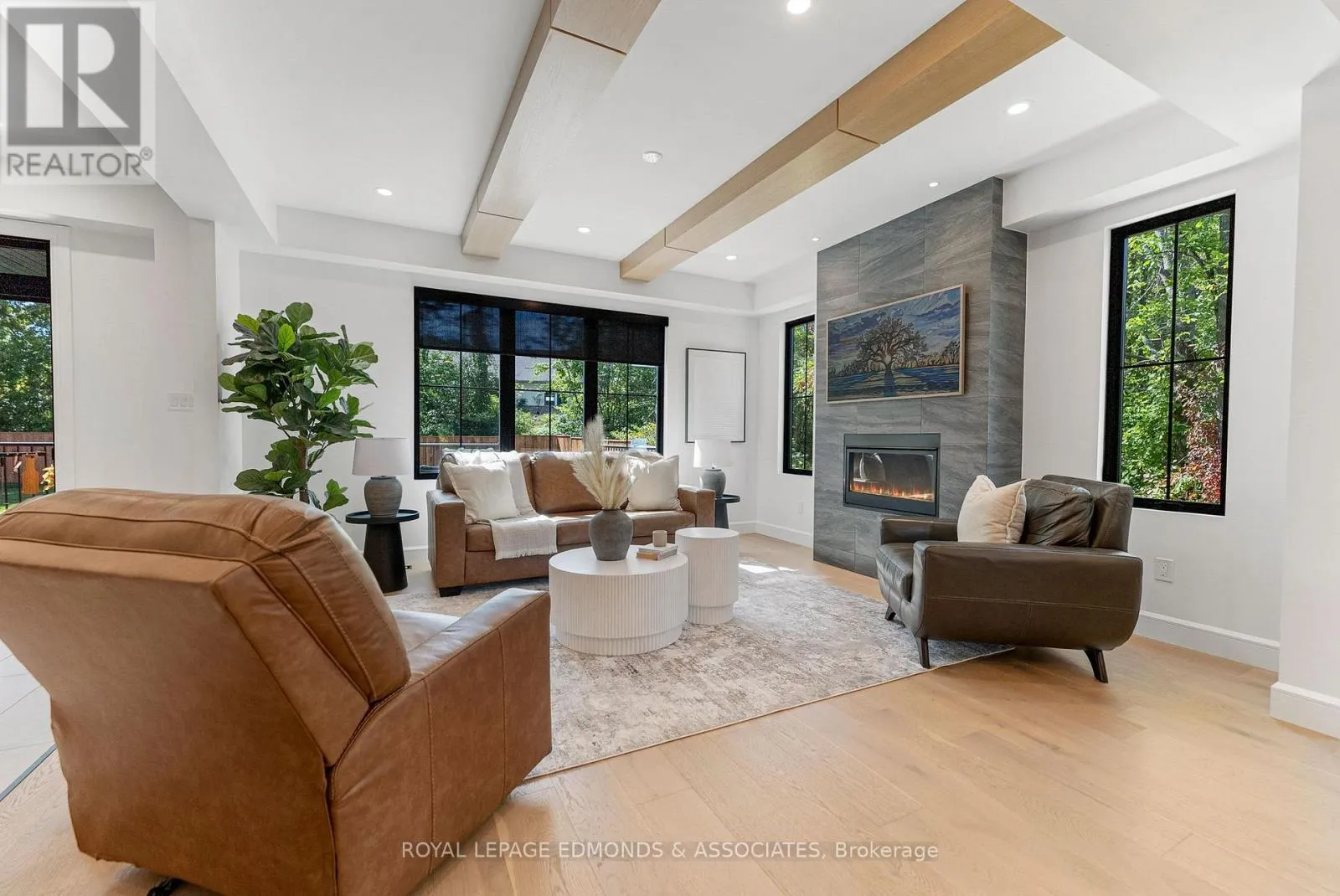 Cross Streets: Melton St / Angus Campbell Dr. ** Directions: From Pembroke St, turn onto Angus Campbell Dr, then turn right onto Melton St. The property is on the left. Welcome to 578 Melton Street, a beautifully custom-built 5-bedroom, 4-bathroom home by Done-Right Construction & Renovations Inc., Pembroke's leading design-build firm. Located in one of Pembroke's most desirable neighborhoods, this home redefines modern living with airy interiors, timeless finishes, and a layout designed as much for connection as it is for retreat. From the moment you step inside, the home impresses with its scale and sophistication. Expansive main-floor living and dining areas flow into a chef's kitchen that opens seamlessly to a covered outdoor space, creating an effortless extension for entertaining or quiet evenings at home. On the second floor, a sunlit living room with an elegant focal fireplace offers stunning views, while further upstairs, the private bedroom level culminates in a luxurious primary suite that boasts a spa-inspired ensuite and double walk-in closets. The fully finished lower level with 9-foot ceilings offers endless versatility while the attached double garage adds everyday convenience. Built with precision craftsmanship and elevated design, 578 Melton Street offers a rare opportunity to own a home that combines style, comfort, and substance at the highest level. (id:27476)