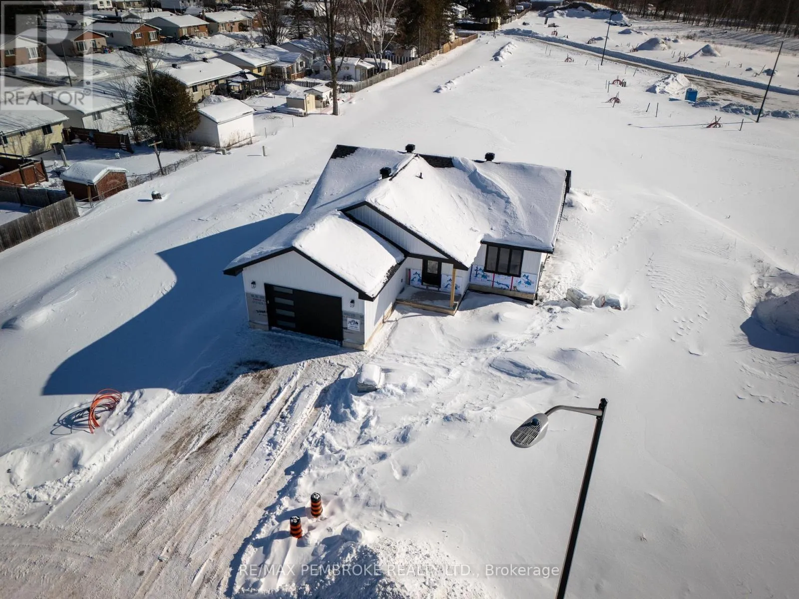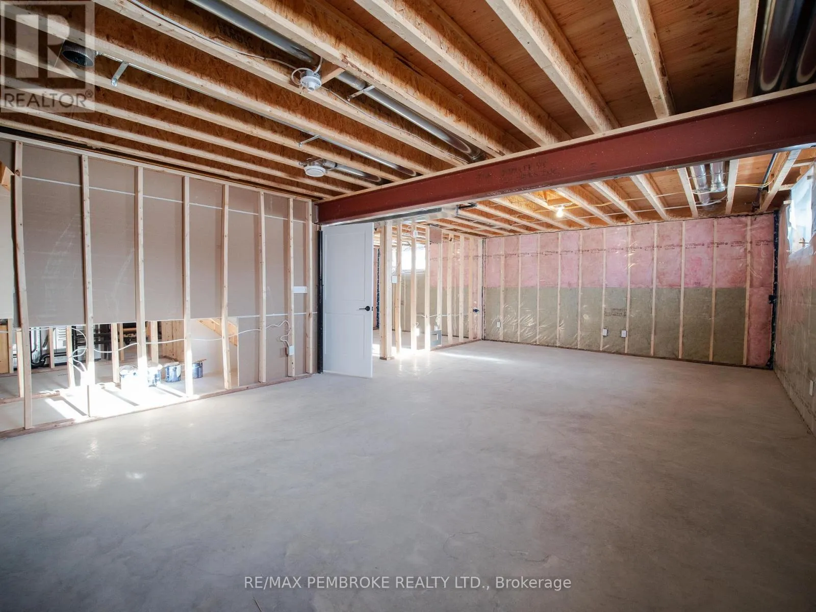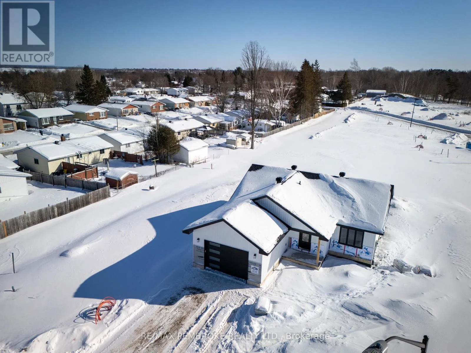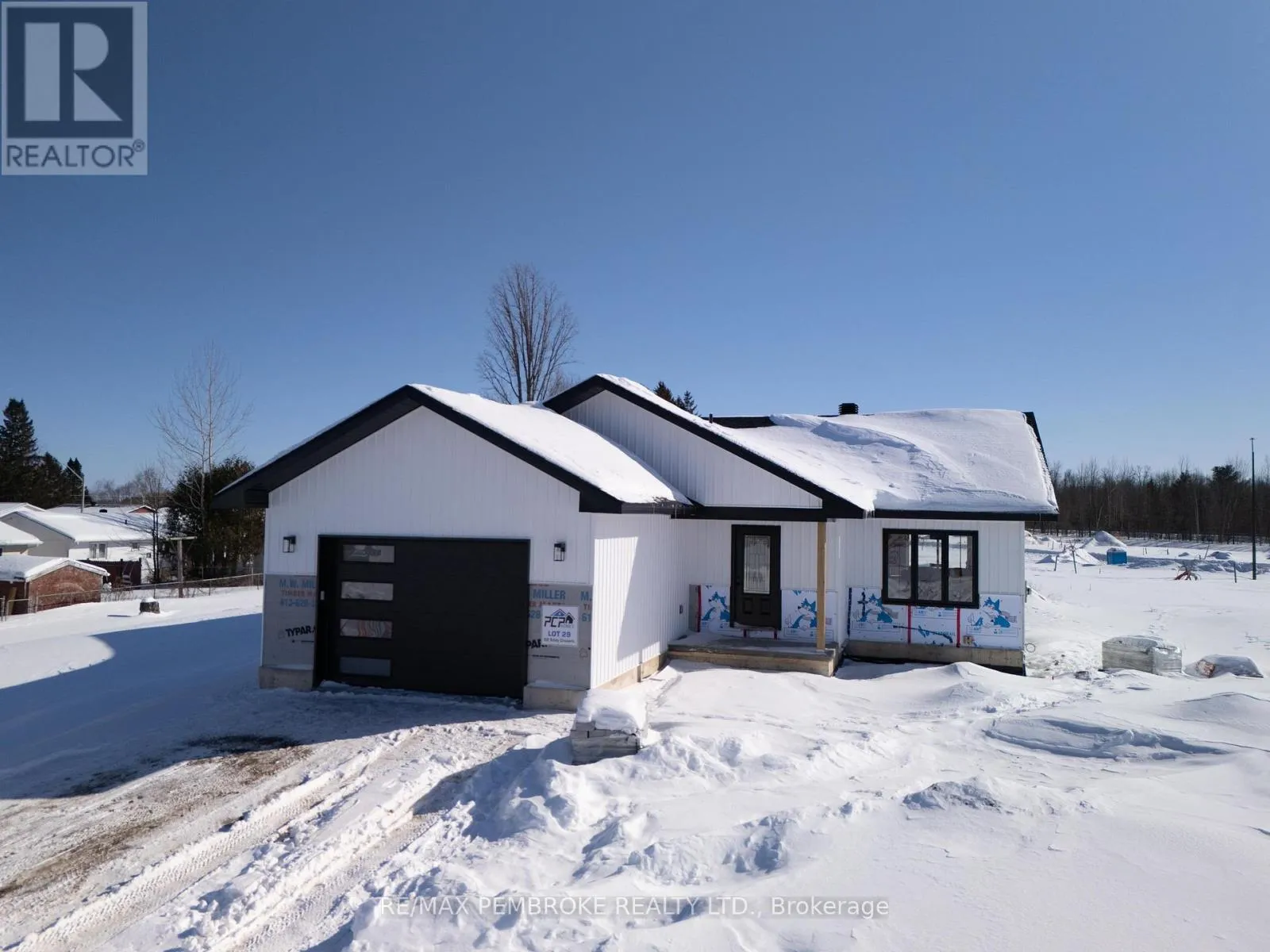 Cross Streets: Boundary rd west/eddy. ** Directions: Boudary St West to Eddy Cr. Welcome to " The Teddy" at 62 Eddy Crescent in Pembroke's desirable west end, a beautifully built brand new bungalow located in a brand new subdivision, offering the perfect blend of modern living and outdoor lifestyle. This thoughtfully designed home offers approximately 1,232 sq. ft. of bright open-concept main floor living space featuring a modern kitchen with a large center island and a spacious dining area with patio door access. The inviting living room is filled with natural light, creating a warm and welcoming atmosphere. The main level includes three bedrooms and a full bathroom, including a spacious primary bedroom, along with the convenience of an attached oversized garage. The full basement has already been framed, rough wired, and rough plumbed for a future bathroom and is laid out for a large rec room, additional bedroom, office, and storage area which can be completed prior to closing at the Buyer's option for an additional cost, offering excellent potential to expand living space and add value. Built with quality construction including an engineered truss roof system, 8-foot poured concrete foundation, HRV system, radon rough-in, R-60 attic insulation, and R-20 wall insulation, this home offers efficiency and peace of mind. Located close to schools, parks, shopping, and amenities, this move-in ready property is ideal for families, downsizers, or buyers seeking a new home with future development potential in Pembroke's newest subdivision. Purchase price includes HST with rebates signed back to the Builder. Full Tarion Warranty (id:27476)