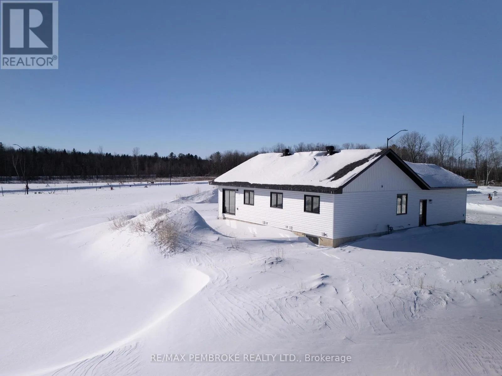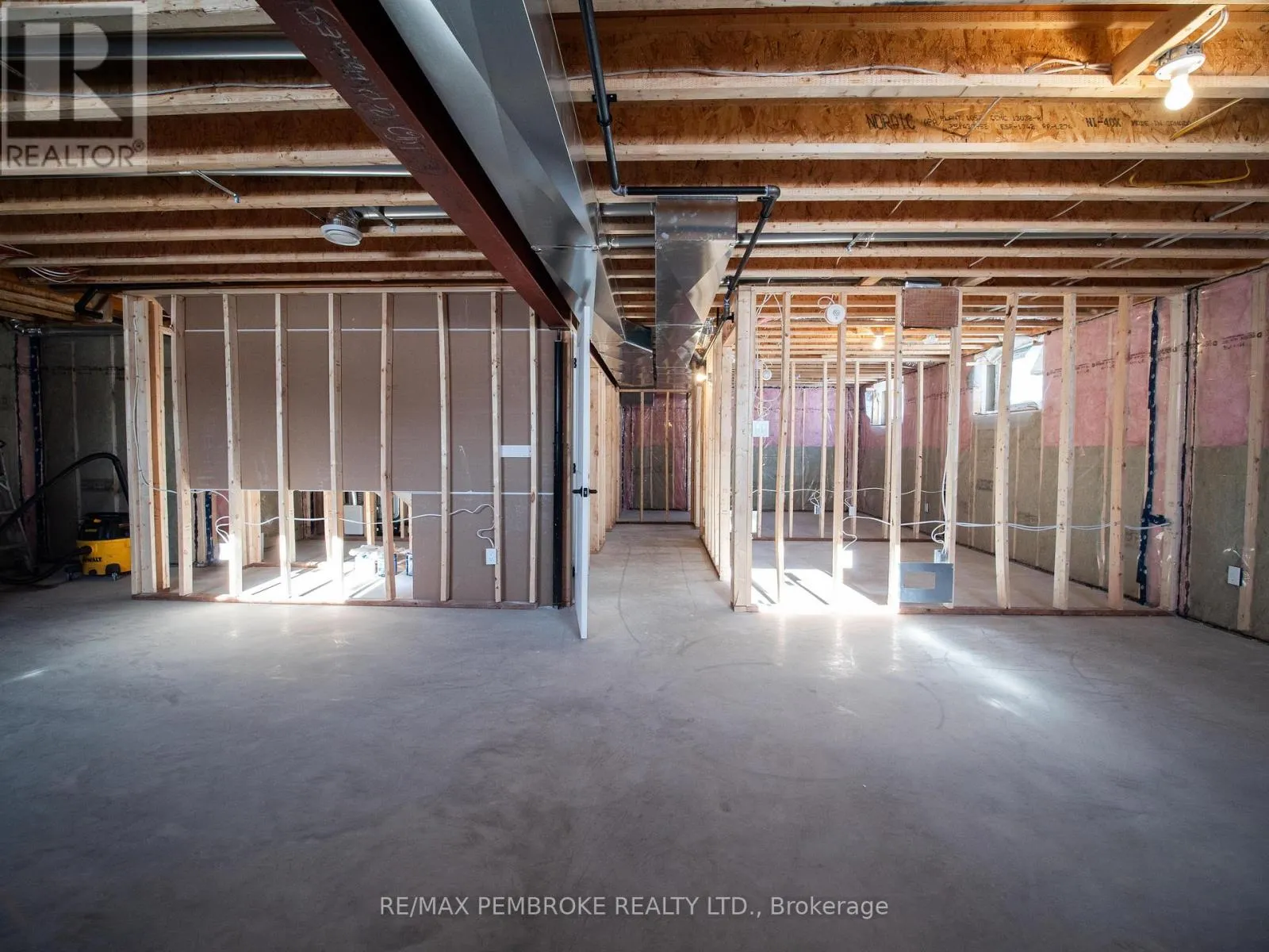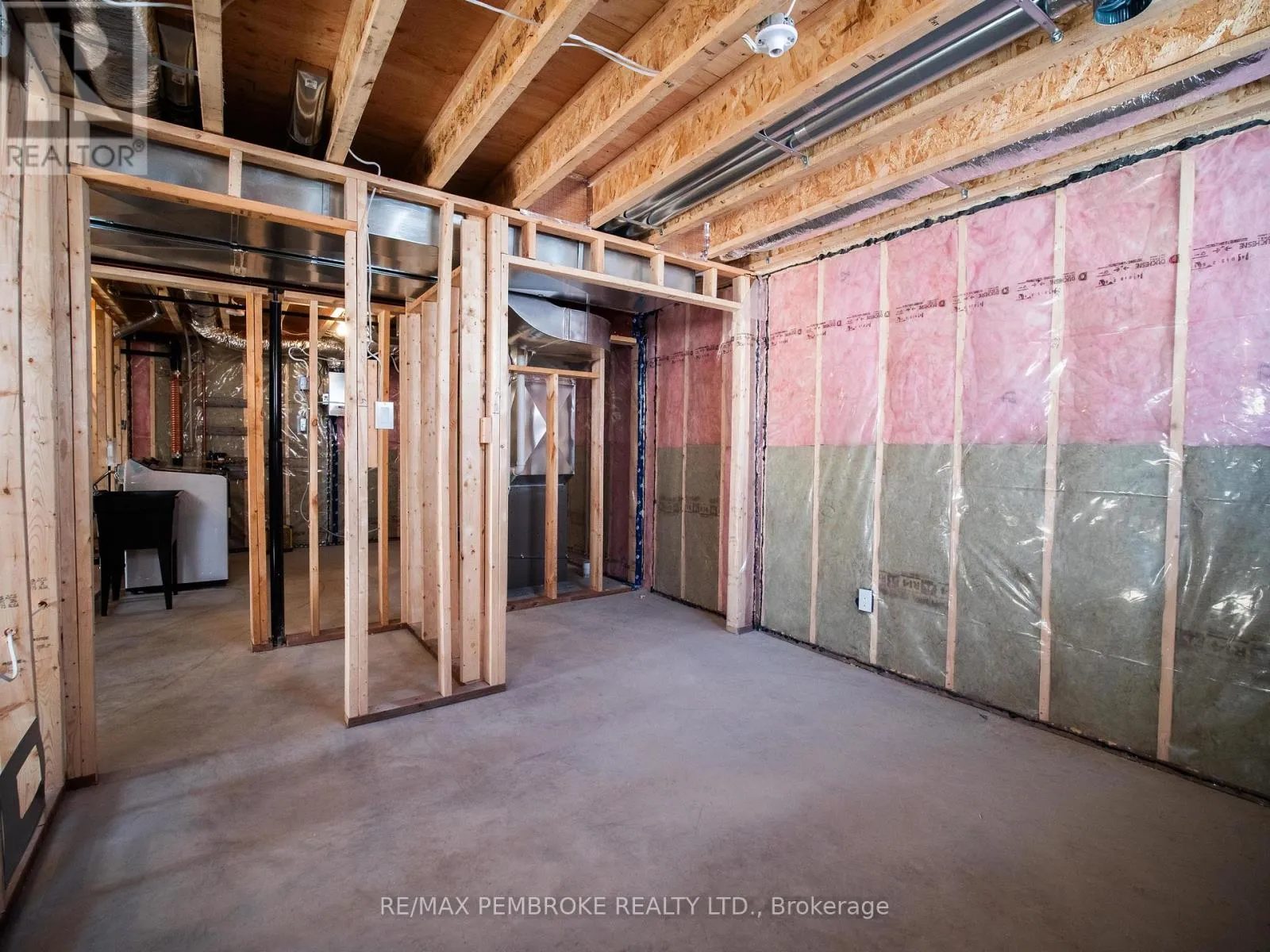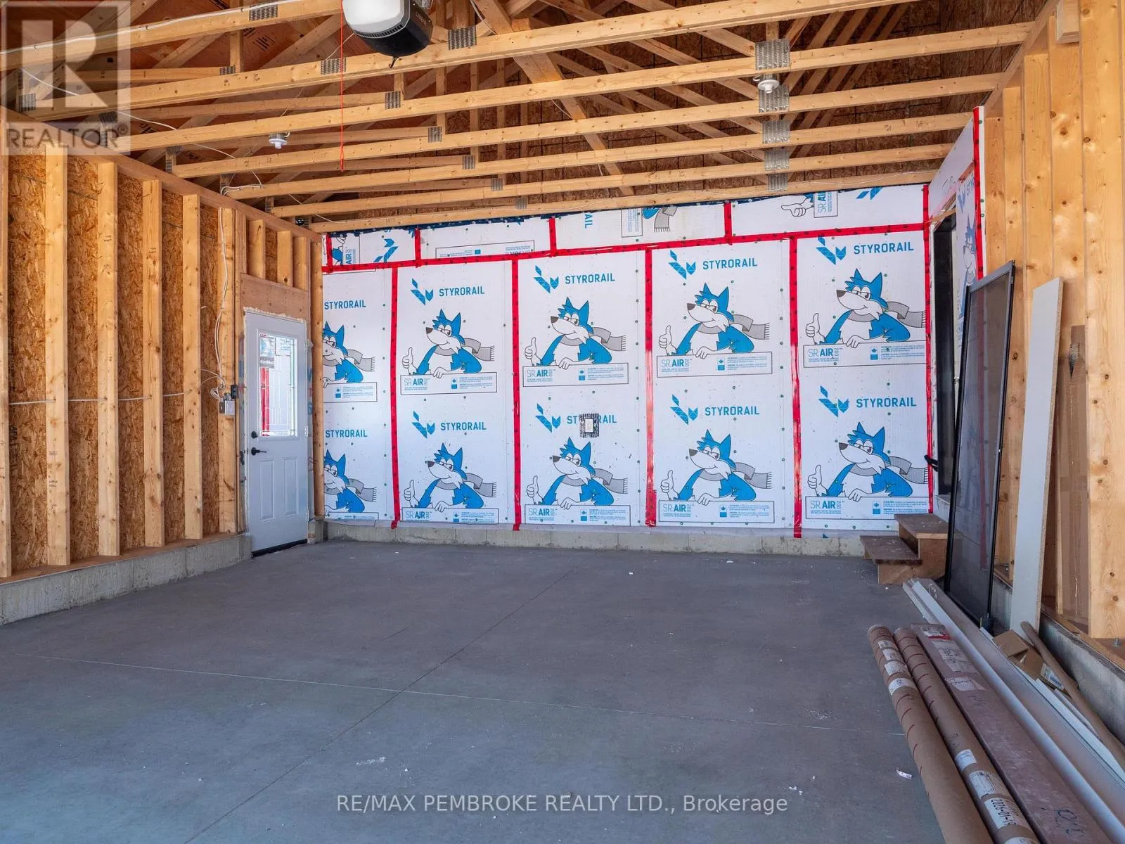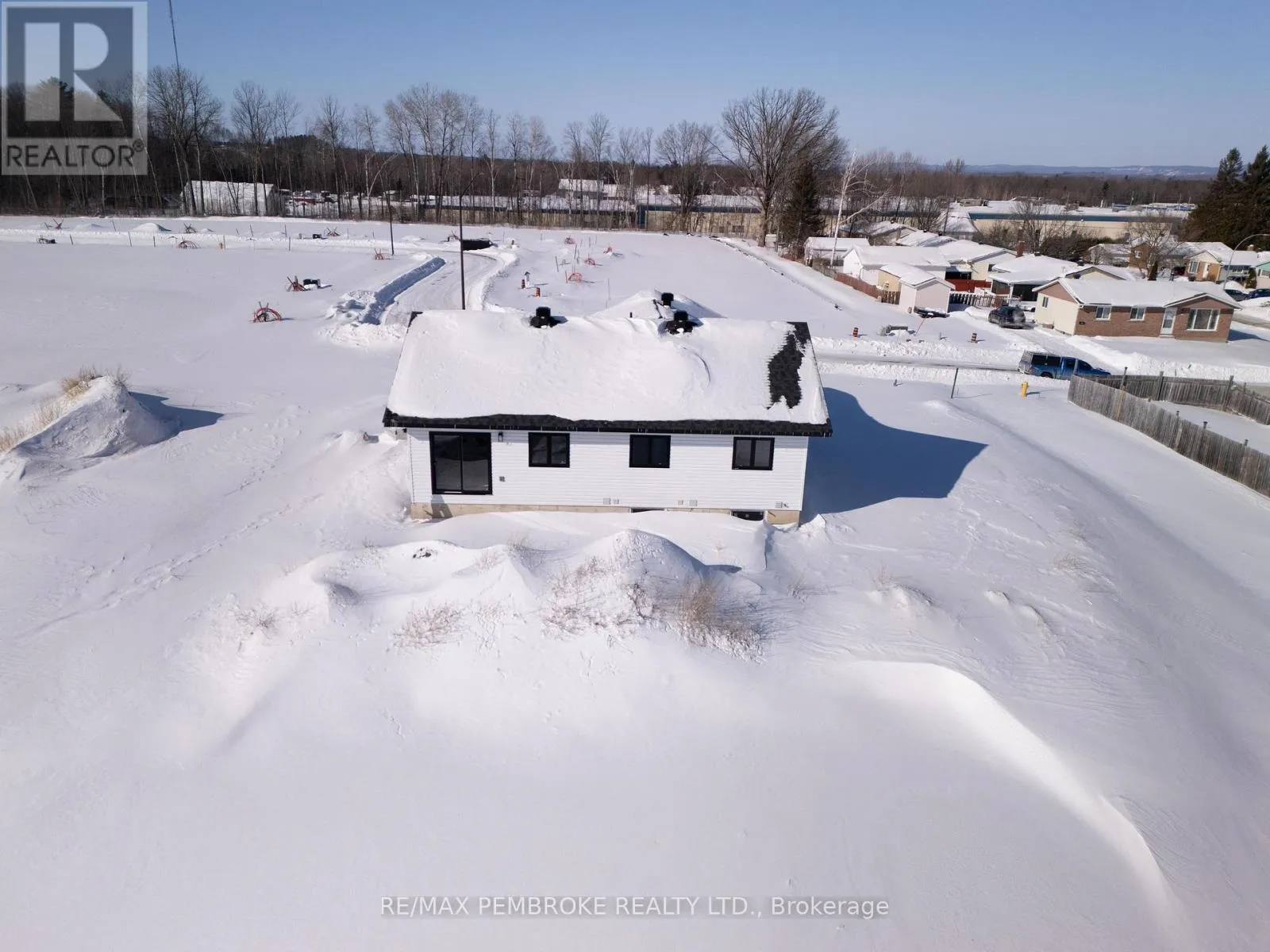 Cross Streets: Boundary rd west/eddy. ** Directions: Boudary St West to Eddy Cr. Welcome to " The Teddy" at 62 Eddy Crescent in Pembroke's desirable west end, a beautifully built brand new bungalow located in a brand new subdivision, offering the perfect blend of modern living and outdoor lifestyle. This thoughtfully designed home offers approximately 1,232 sq. ft. of bright open-concept main floor living space featuring a modern kitchen with a large center island and a spacious dining area with patio door access. The inviting living room is filled with natural light, creating a warm and welcoming atmosphere. The main level includes three bedrooms and a full bathroom, including a spacious primary bedroom, along with the convenience of an attached oversized garage. The full basement has already been framed, rough wired, and rough plumbed for a future bathroom and is laid out for a large rec room, additional bedroom, office, and storage area which can be completed prior to closing at the Buyer's option for an additional cost, offering excellent potential to expand living space and add value. Built with quality construction including an engineered truss roof system, 8-foot poured concrete foundation, HRV system, radon rough-in, R-60 attic insulation, and R-20 wall insulation, this home offers efficiency and peace of mind. Located close to schools, parks, shopping, and amenities, this move-in ready property is ideal for families, downsizers, or buyers seeking a new home with future development potential in Pembroke's newest subdivision. Purchase price includes HST with rebates signed back to the Builder. Full Tarion Warranty (id:27476)