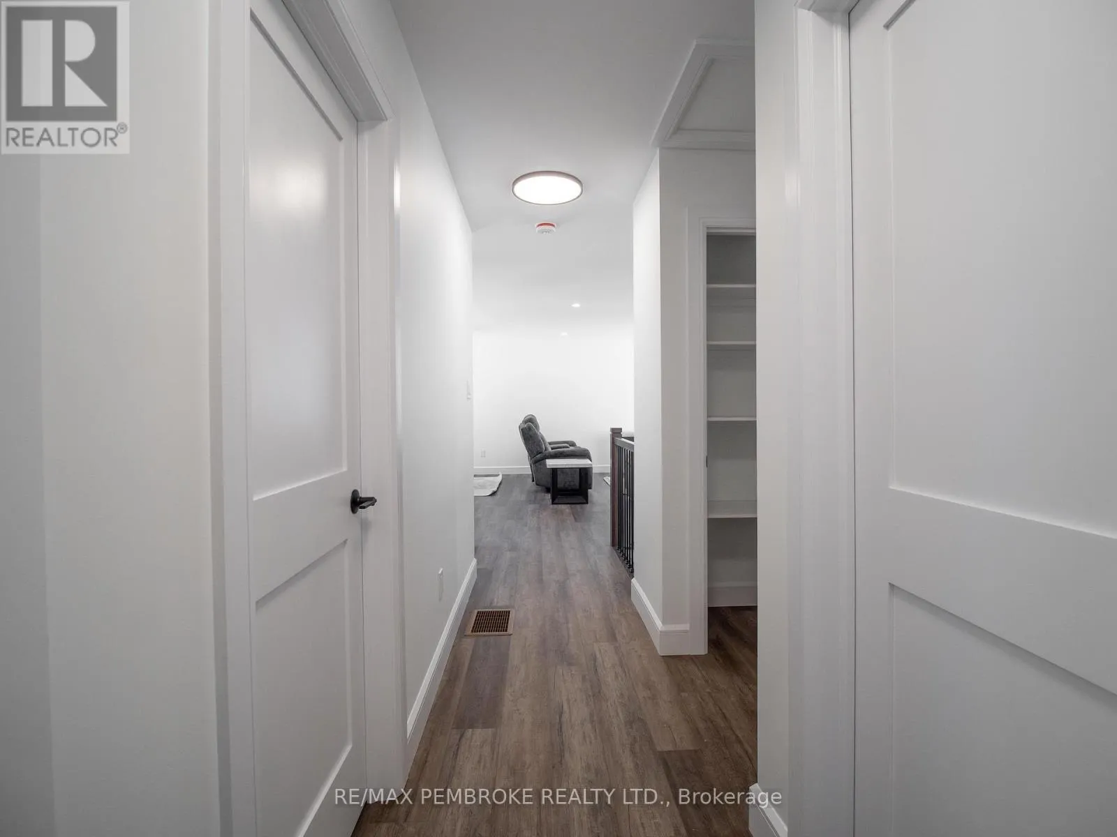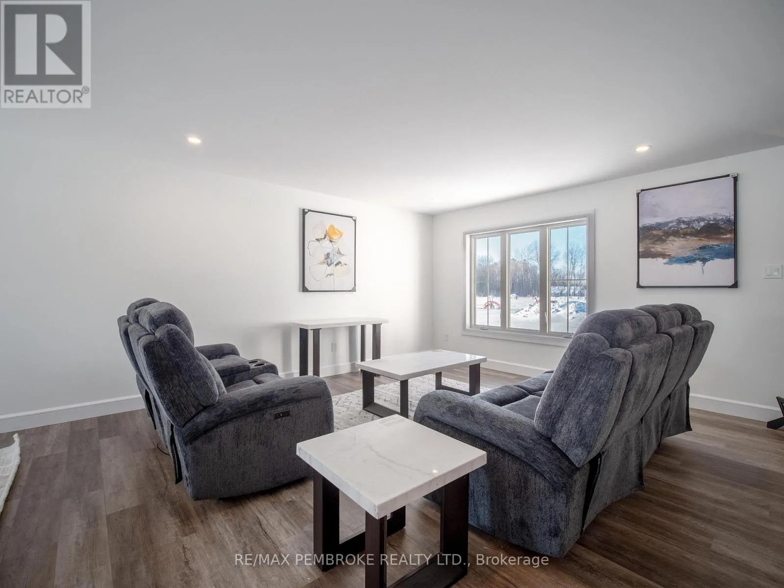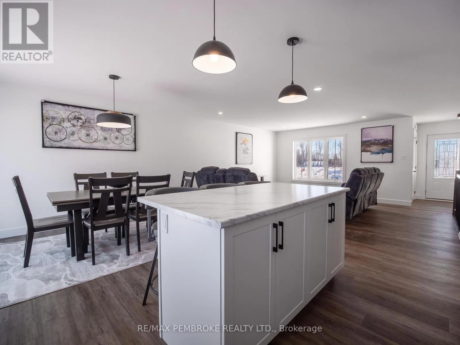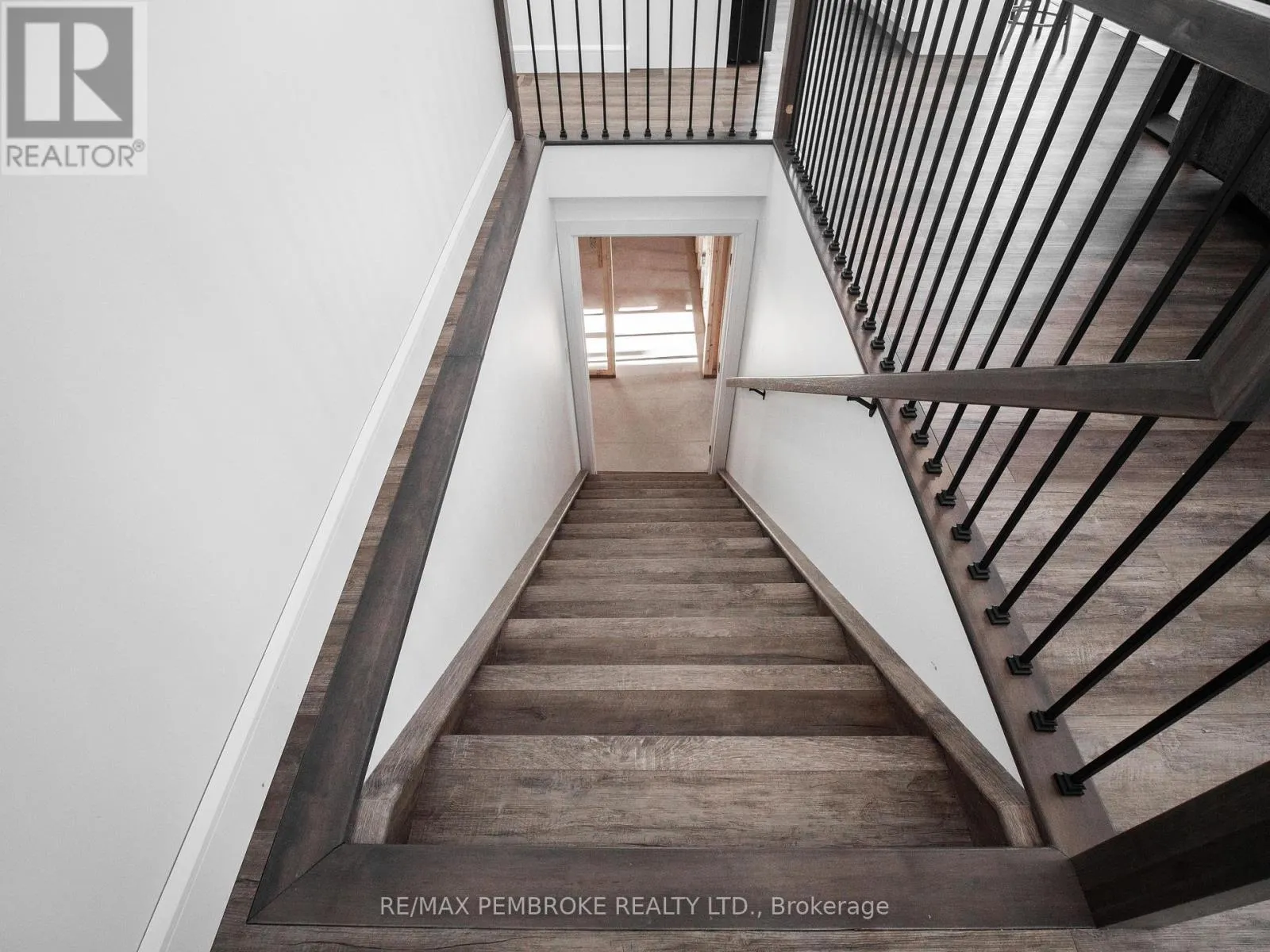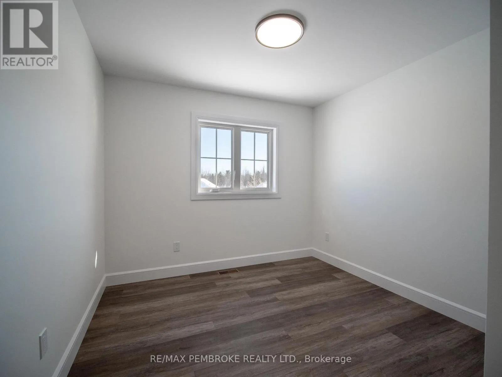 Cross Streets: Boundary rd west/eddy. ** Directions: Boudary St West to Eddy Cr. Welcome to " The Teddy" at 62 Eddy Crescent in Pembroke's desirable west end, a beautifully built brand new bungalow located in a brand new subdivision, offering the perfect blend of modern living and outdoor lifestyle. This thoughtfully designed home offers approximately 1,232 sq. ft. of bright open-concept main floor living space featuring a modern kitchen with a large center island and a spacious dining area with patio door access. The inviting living room is filled with natural light, creating a warm and welcoming atmosphere. The main level includes three bedrooms and a full bathroom, including a spacious primary bedroom, along with the convenience of an attached oversized garage. The full basement has already been framed, rough wired, and rough plumbed for a future bathroom and is laid out for a large rec room, additional bedroom, office, and storage area which can be completed prior to closing at the Buyer's option for an additional cost, offering excellent potential to expand living space and add value. Built with quality construction including an engineered truss roof system, 8-foot poured concrete foundation, HRV system, radon rough-in, R-60 attic insulation, and R-20 wall insulation, this home offers efficiency and peace of mind. Located close to schools, parks, shopping, and amenities, this move-in ready property is ideal for families, downsizers, or buyers seeking a new home with future development potential in Pembroke's newest subdivision. Purchase price includes HST with rebates signed back to the Builder. Full Tarion Warranty (id:27476)